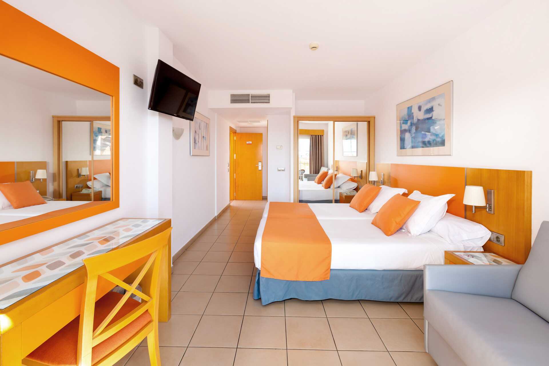 Perhehuone parvekkeella tai terassilla. Kaksi yhden hengen sänkyä. Lisävuodemahdollisuus vuodesohvalla. Maksuton wifi ja ilmastointi. Tallelokero lisämaksusta. Tv kansainvälisillä kanavilla. Television kaukosäätimen voi noutaa vastaanotosta panttia vastaan. Hiustenkuivain. Kylpyhuoneessa kylpyamme tai suihku ja wc. Siivous 5 krt/viikko.
