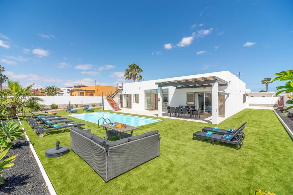 Pulahda veteen ja pulahda omaan yksityiseen uima-altaaseesi. Tekonurmen ympäröimä kirkkaan sininen vesi on jyrkkä kontrasti ja odottaa vain sinua pulahtamaan. Nauti kauniista aamuauringosta uimalla aamun tunteina tai vietä hauskempaa aikaa läheistesi kanssa pelaamalla pelejä ja käyttämällä pomppulinnaa iltapäivällä. Nauti auringosta aurinkotuoleilla ja rusketu milloin haluat – Fuerteventuran aurinko on valmiina sinua varten ympäri vuoden, milloin tahansa vierailetkin.