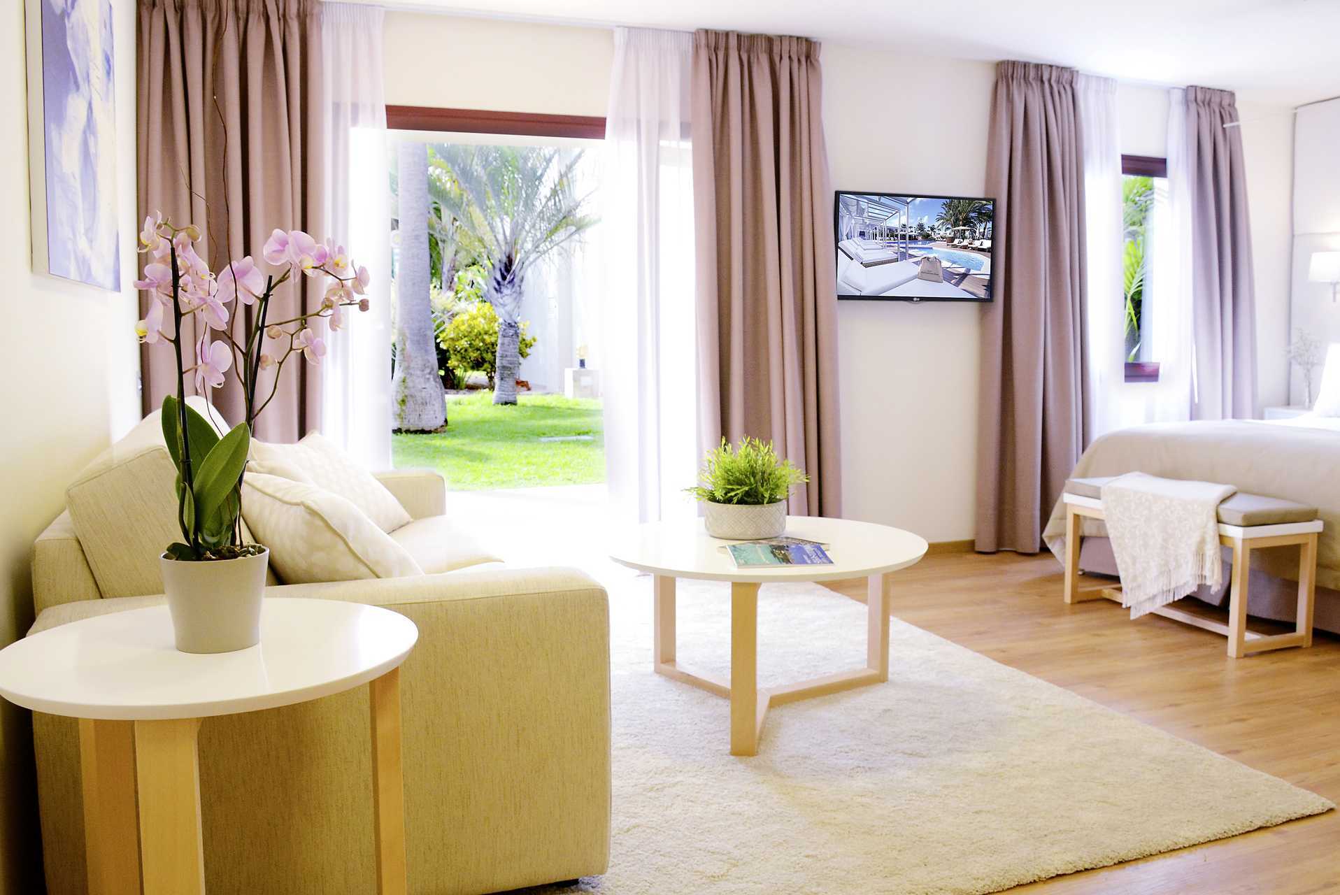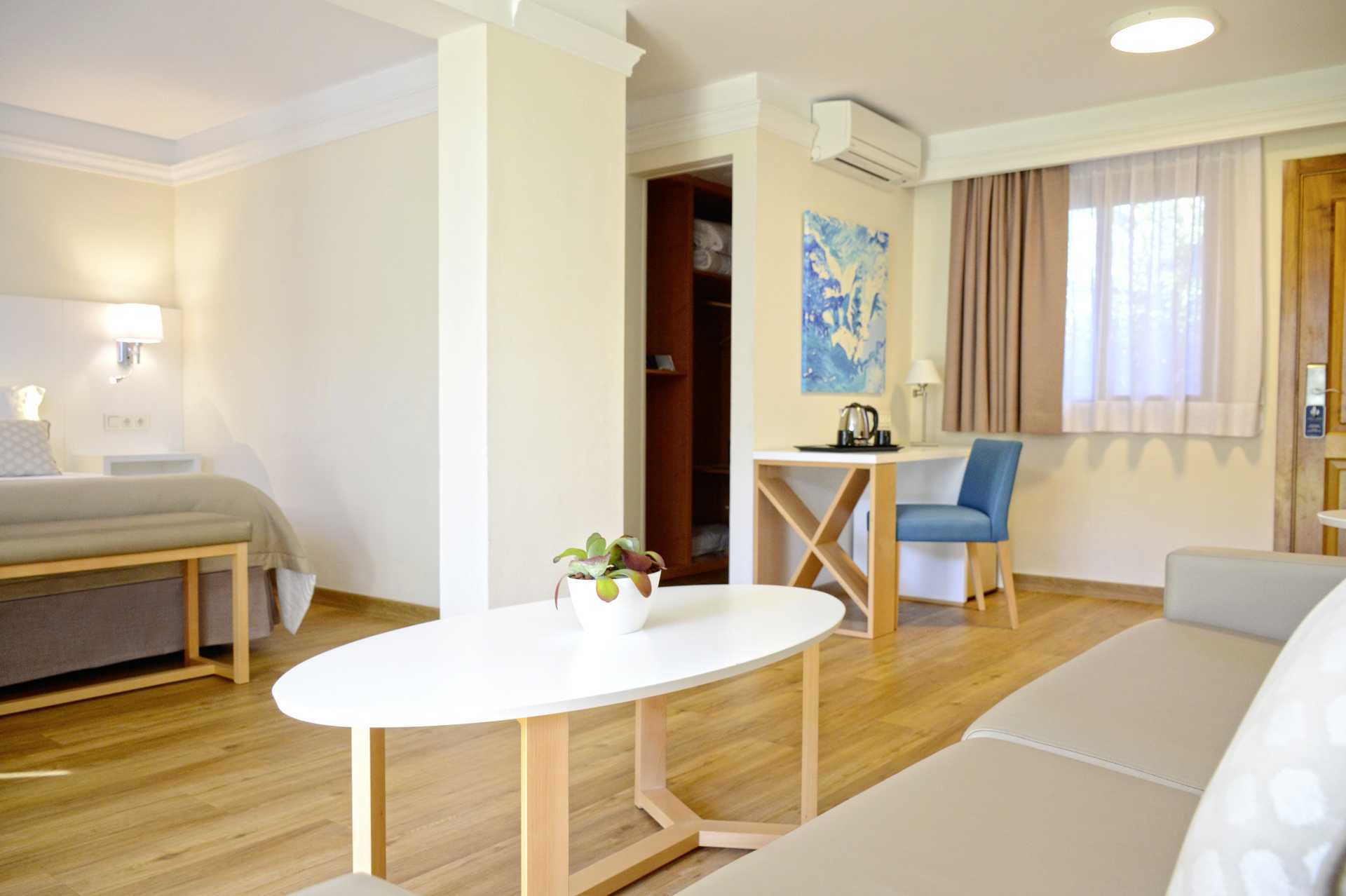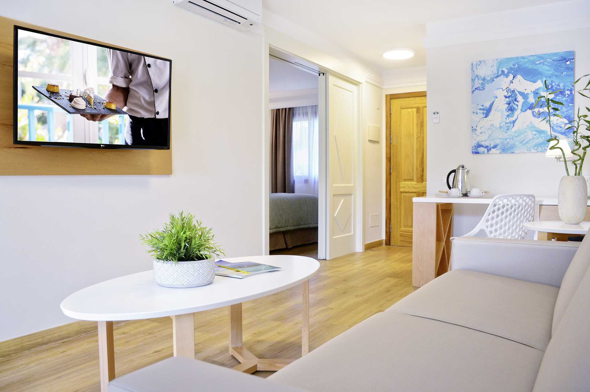 Juniorsviitissä on parveke tai terassi, osassa allasnäkymä. Kaksi yhden hengen sänkyä tai parivuode. Lisävuodemahdollisuus vuodesohvaan. Maksuton wifi, ilmastointi ja tallelokero. Jääkaappi. Vedenkeitin, kahvia ja teetä. Tv kansainvälisillä kanavilla. USB-portti elektronisten laitteiden lataamiseen. Hiustenkuivain. Kylpyhuoneessa amme/suihku ja wc. Siivous 7 krt/viikko.