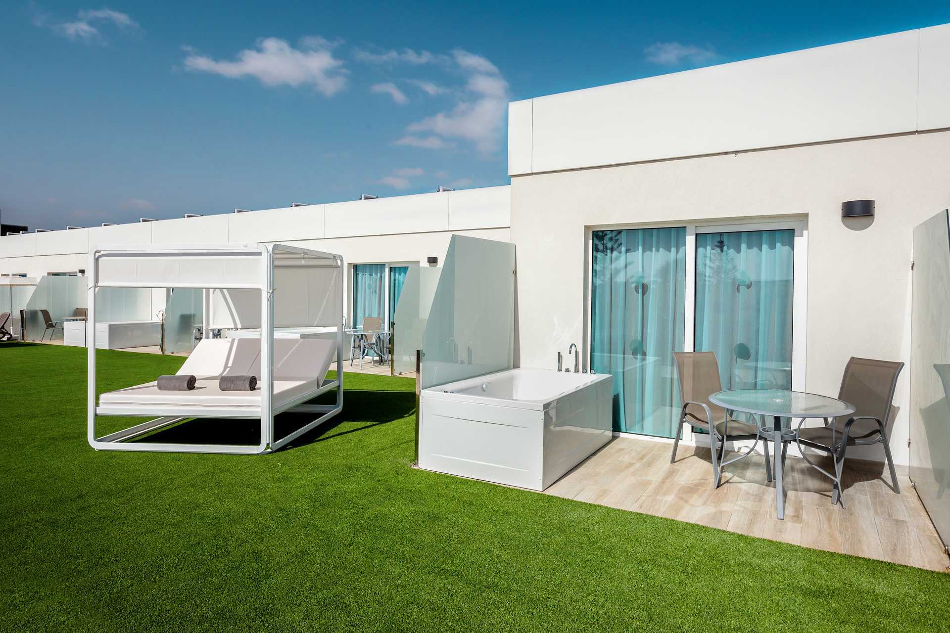 Sviitti maaterassilla tai parvekkeella tai terassilla, joistakin parvekkeilta tai terassilta on näkymät uima-altaalle. Perhehuone koostuu makuuhuoneesta ja olohuoneesta, jotka ovat erotettu toisistaan liukuovella. Kaksi yhden hengen sänkyä. Lisävuodemahdollisuus vuodesohvalla. Maksuton wifi ja ilmastointi. Tallelokero lisämaksusta. Jääkaappi. Vedenkeitin, kahvia ja teetä. Hiustenkuivain. Kylpyhuoneessa suihku ja wc. Siivous 7 krt/viikko. Alle 2-vuotiaat lapset lasketaan lisävuoteella majoittuviksi henkilöiksi. Hotellin ikäraja on 13-vuotta.