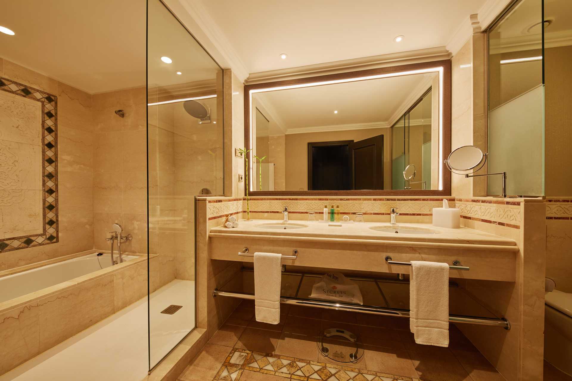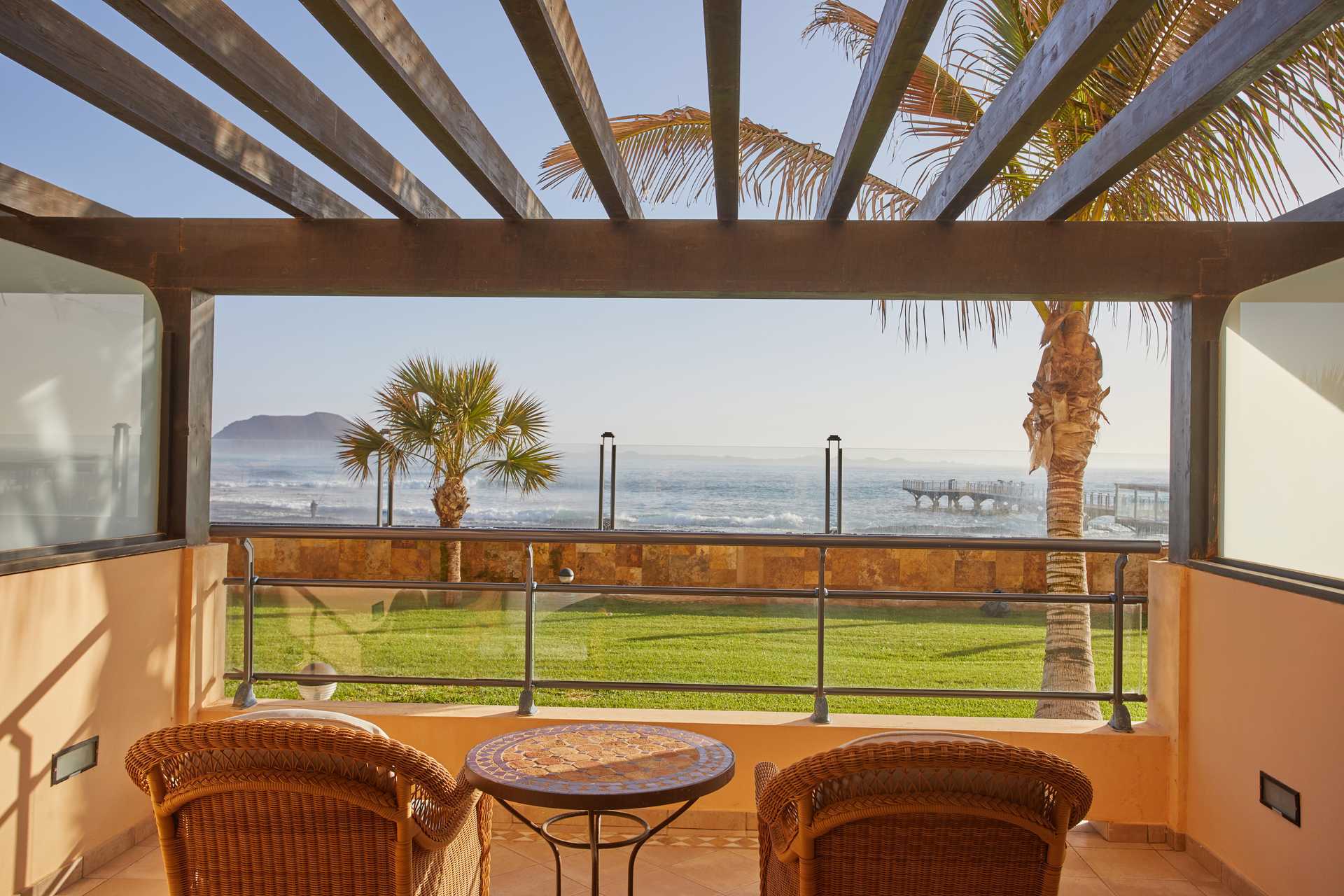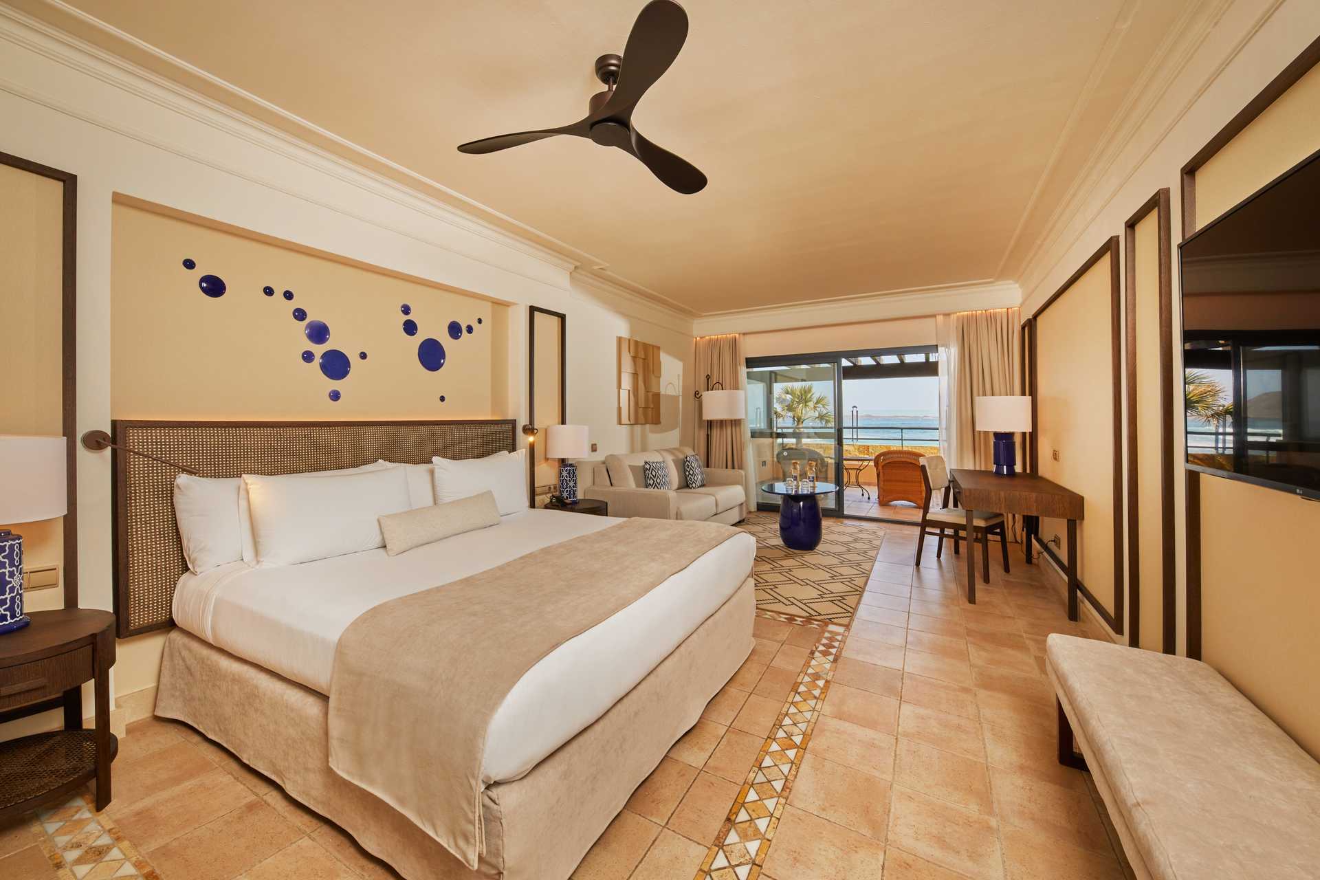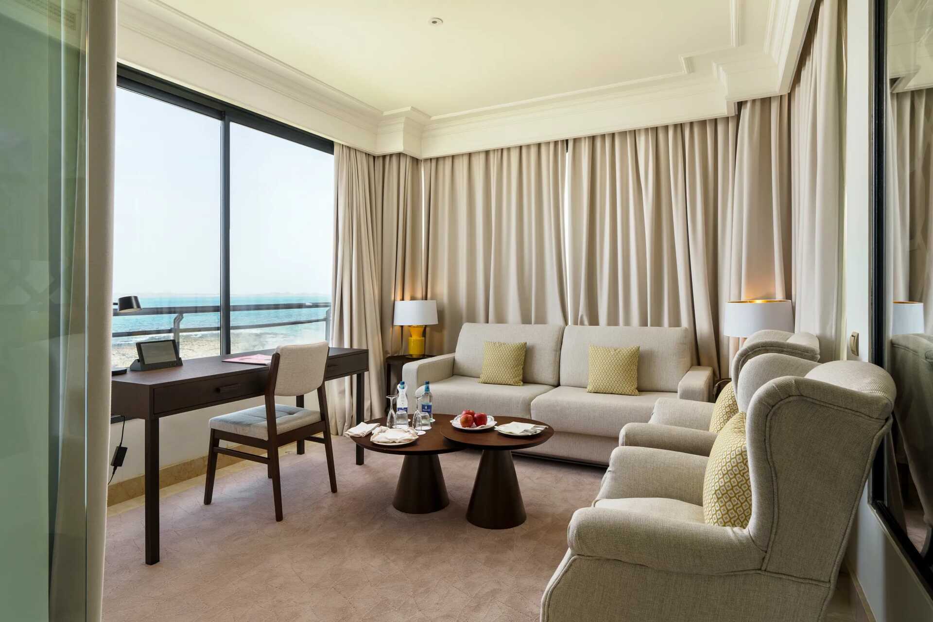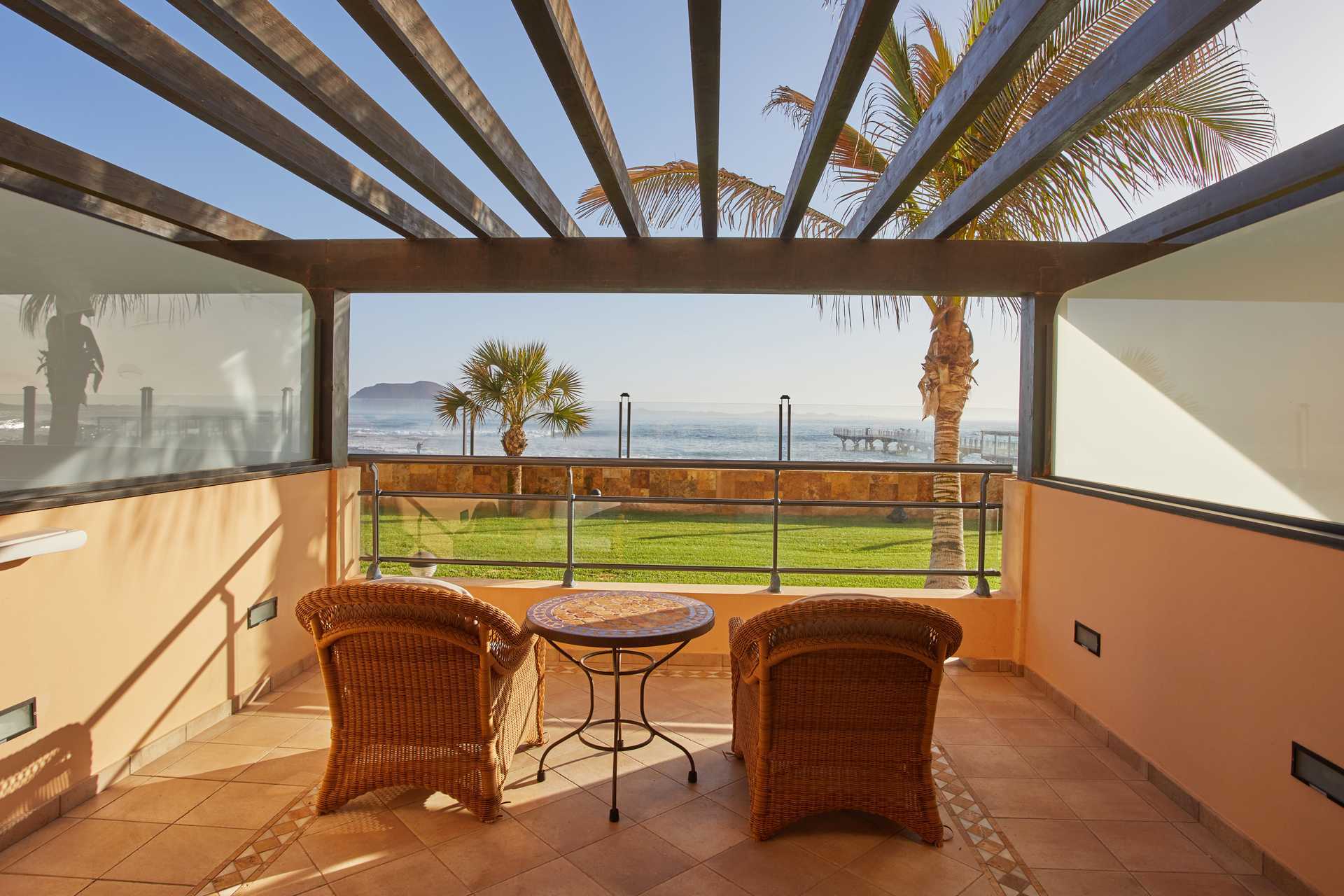 Sviitti parvekkeella ja merinäköalalla. Sviitissä on makuuhuone, jossa on parivuode tai kaksi erillistä vuodetta, sekä olohuone, jossa on nojatuoleja, sohva ja pöytä. Suuri parveke nojatuoleineen, pöytä ja aurinkotuolit. Wifi, keskusilmastointi (lämmitys talvella) ja tallelokero sisältyvät hintaan. Kattotuuletin. Tyynymenu. Minibaari sisältyy hintaan, ja se täytetään päivittäin vedellä, virvoitusjuomilla ja oluella. Vedenkeitin, kahvia ja teetä. Tv kansainvälisillä kanavilla. Kylpytakit ja tossut. Hiustenkuivain. Kylpyamme poreallasosiolla, erillinen suihku ja wc. Siivous 7 krt/viikko.