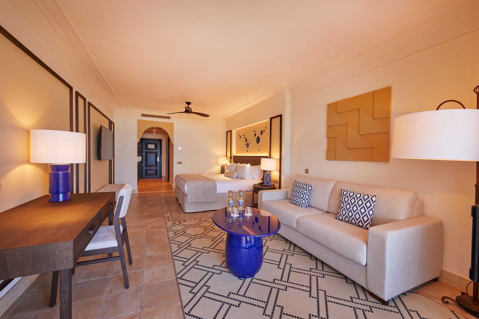 Junior-sviitissä on parveke, osasta on merinäköala, osasta on rajoitettu merinäköala tai näköala uima-altaalle. Parivuode tai kaksi yhden hengen sänkyä. Tyynymenu. Wifi, keskusilmastointi (lämmitys talvella) ja tallelokero sisältyvät hintaan. Minibaari lisämaksulla. Vedenkeitin, kahvia ja teetä. Tv kansainvälisillä kanavilla. Kylpytakit ja tossut. Hiustenkuivain. Kylpyamme tai suihku ja wc. Siivous 7 krt/viikko.