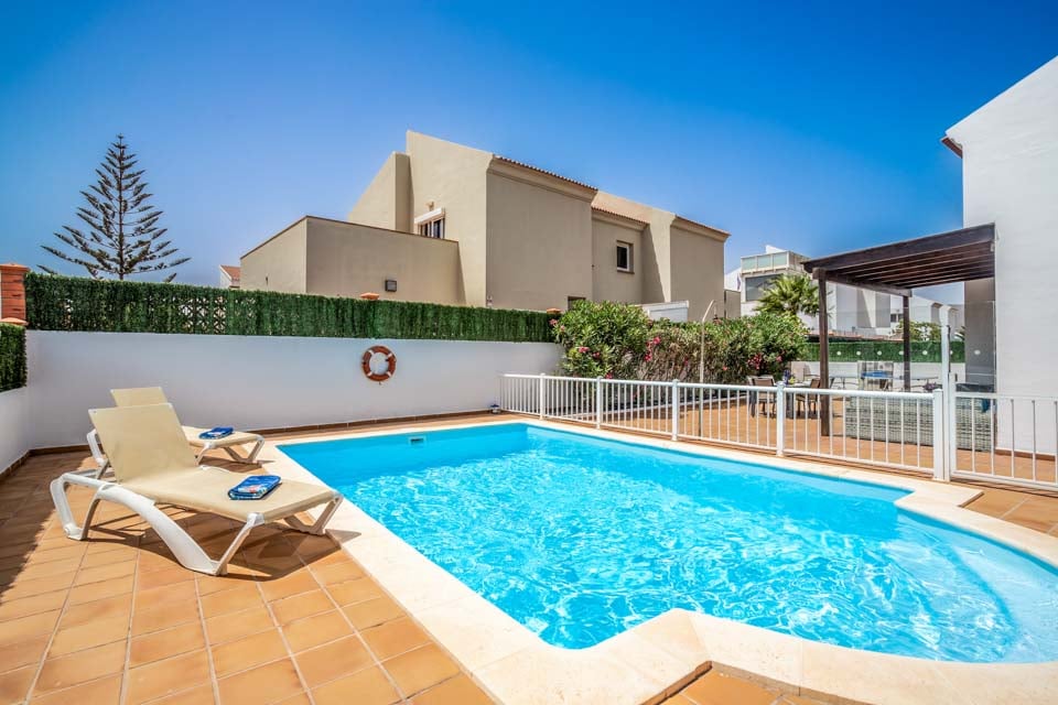 Jos etsit lomakohdetta vilkkaasta Corralejon lomakohteesta, Villa Bonnie on oikea valinta. Kivenheiton päässä paikallisista ravintoloista, kaupoista ja rannoista, sinun ei tarvitse huolehtia auton vuokraamisesta loman aikana. Vaihtoehtoisesti tähän huvilaan kuuluu pieni ajotie ja yksityinen pysäköintipaikka huvilan tontilla. Terrakottalaatoilla ympäröity uima-allas ja valkoinen julkisivu tekevät tästä huvilasta espanjalaisen viehätysvoiman. Uima-altaan reuna on epäilemättä paikka, jossa vietät suurimman osan ajastasi, kun taas aidattu uima-allas antaa pienten lasten kanssa matkustaville lisämielenrauhaa. 4 x 6 metrin kokoinen lämmitetty* uima-allas sopii erinomaisesti polskutteluun lasten kanssa tai muutaman mittaisen uima-altaan uimiseen liikunnan vauhdissa pysyäksesi mukana.