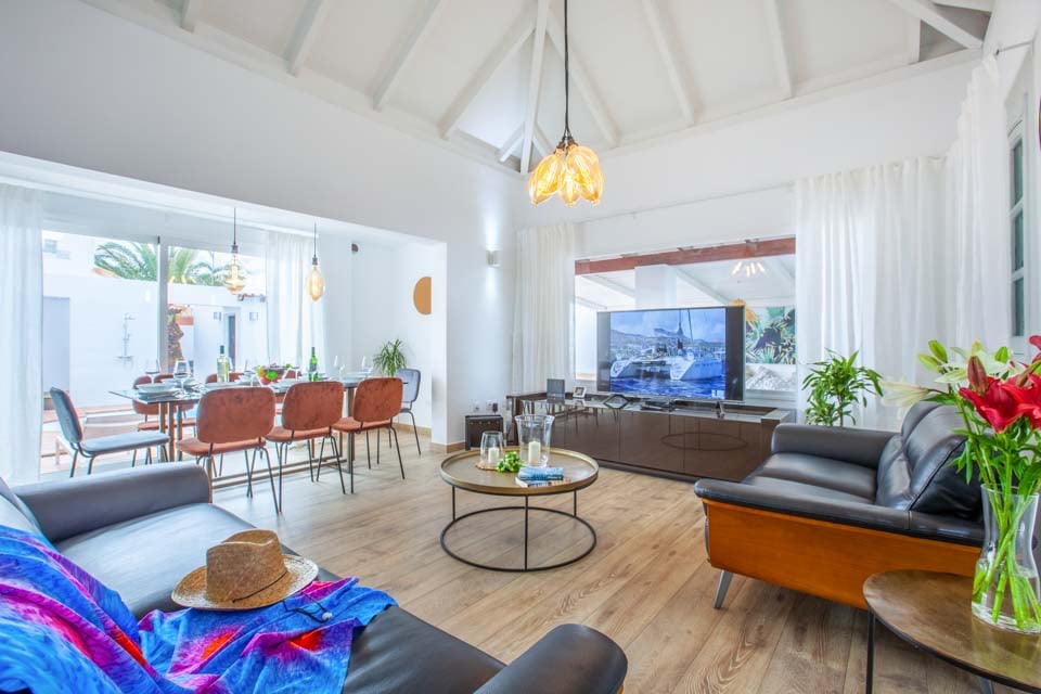 Loma-asumiseen suunniteltu huvila keskittyy valoisaan ja avaraan, avoimeen oleskelutilaan, jossa yhdistyvät saumattomasti olohuone, ruokailutila ja täysin varusteltu keittiö – loistava paikka kokoontua ystävien tai perheen kanssa aurinkoisen päivän jälkeen.