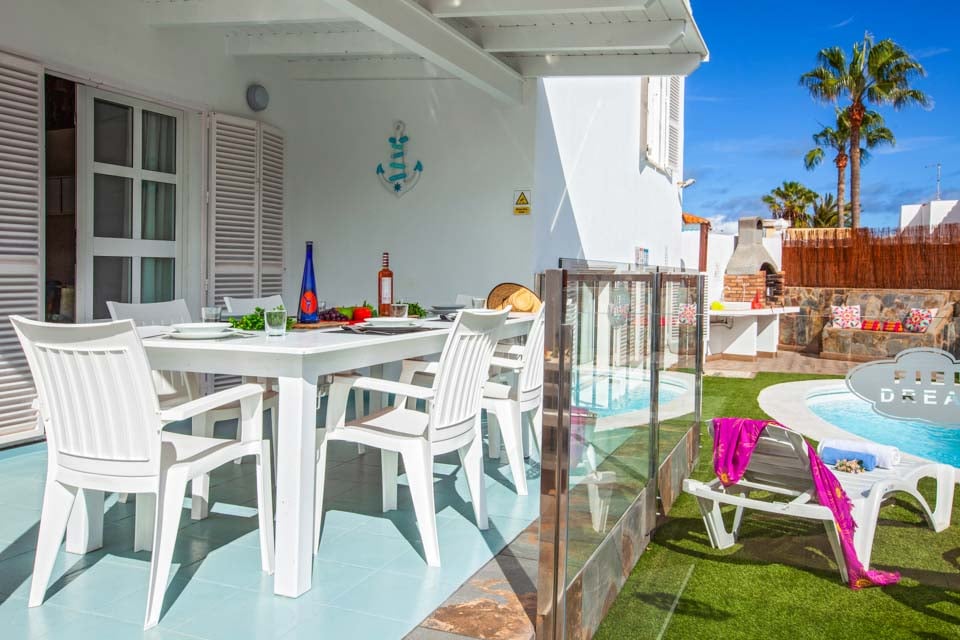 Solmar-villa ei ole täydellinen ilman omaa uima-allasta, ja Villa Field Dreamsin uima-allas on täydellinen paikka vilvoitella lämpimän Espanjan auringon paahteessa. Ulkoalue sopii erinomaisesti ulkoilmaruokailuun tiilestä rakennetulla grillillä, jossa on sekä katettu terassi ruokailutilalla että ranch-tyylinen pöytä ihanan auringon alla. Jos rakastat auringonottoa, tarjolla on runsaasti aurinkotuoleja, joissa voit rentoutua hyvän kirjan parissa.
