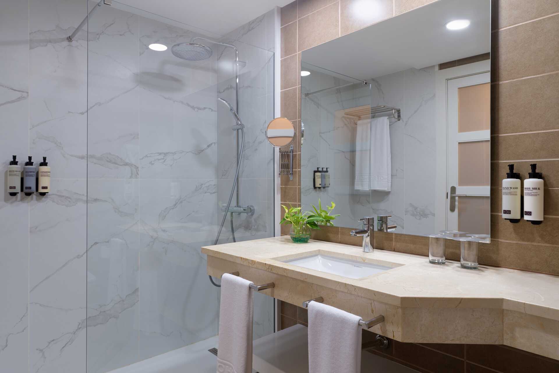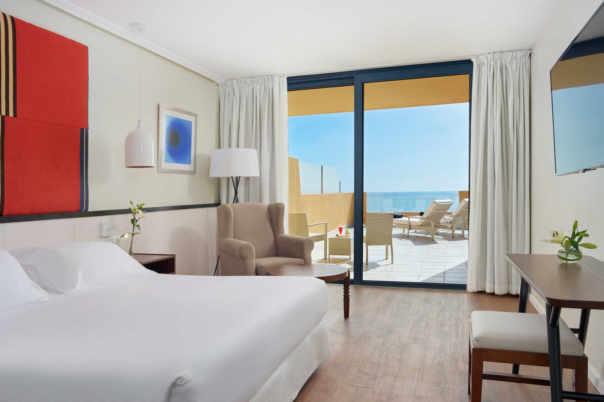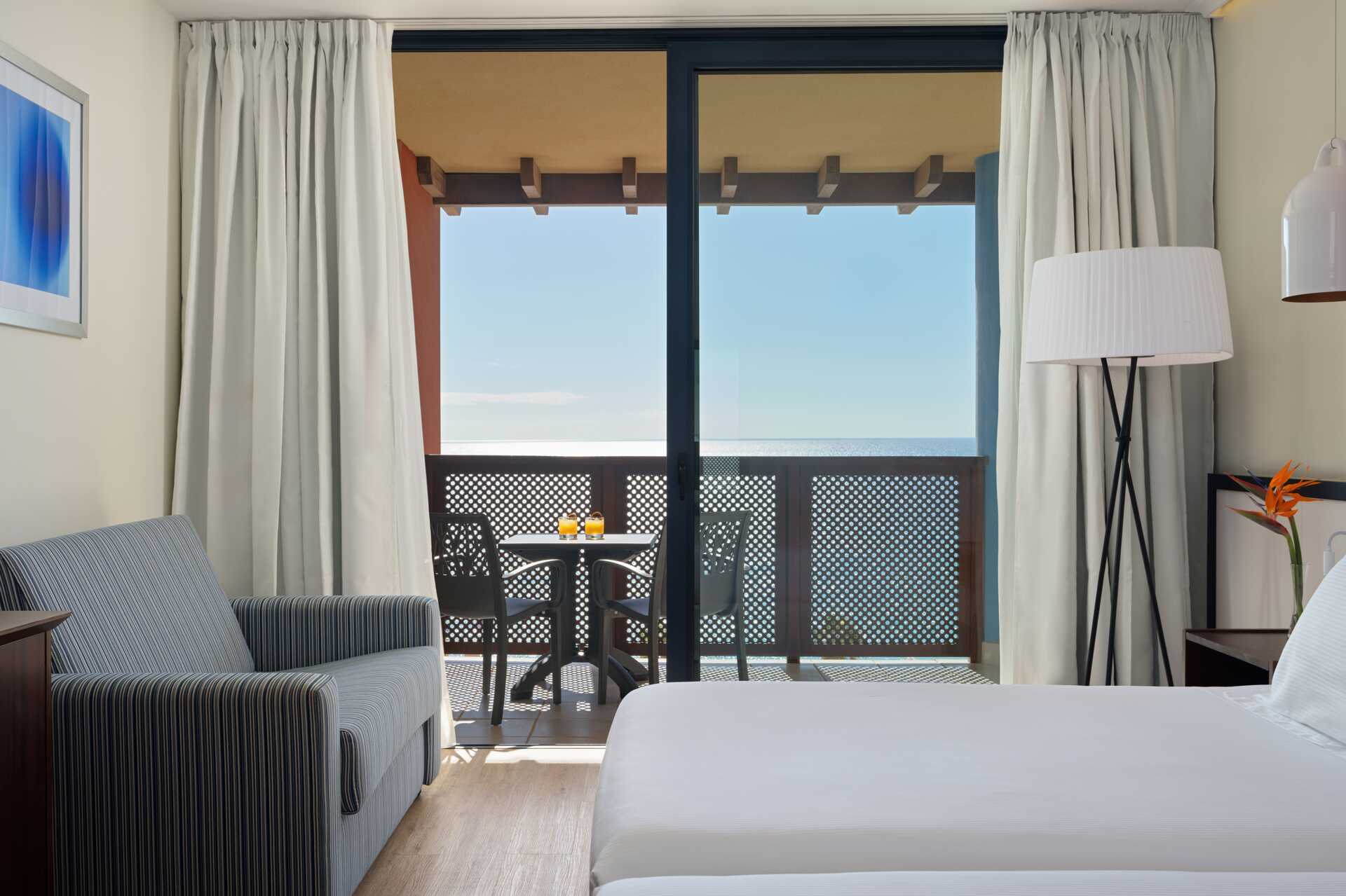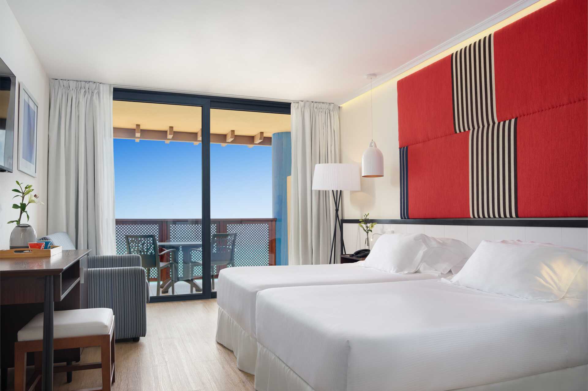Deluxe-huone parvekkeella tai terassilla ja merinäköalalla. Kaksi yhden hengen sänkyä. Lisävuodemahdollisuus vuodesohvasta. Maksuton wifi, ilmastointi ja tallelokero. Minibaari lisämaksulla. Vedenkeitin. Tv kansainvälisillä kanavilla. Hiustenkuivain. Kylpytakit ja tossut Kylpyhuoneessa kylpyamme tai suihku ja wc. Siivous 5 krt/viikko.