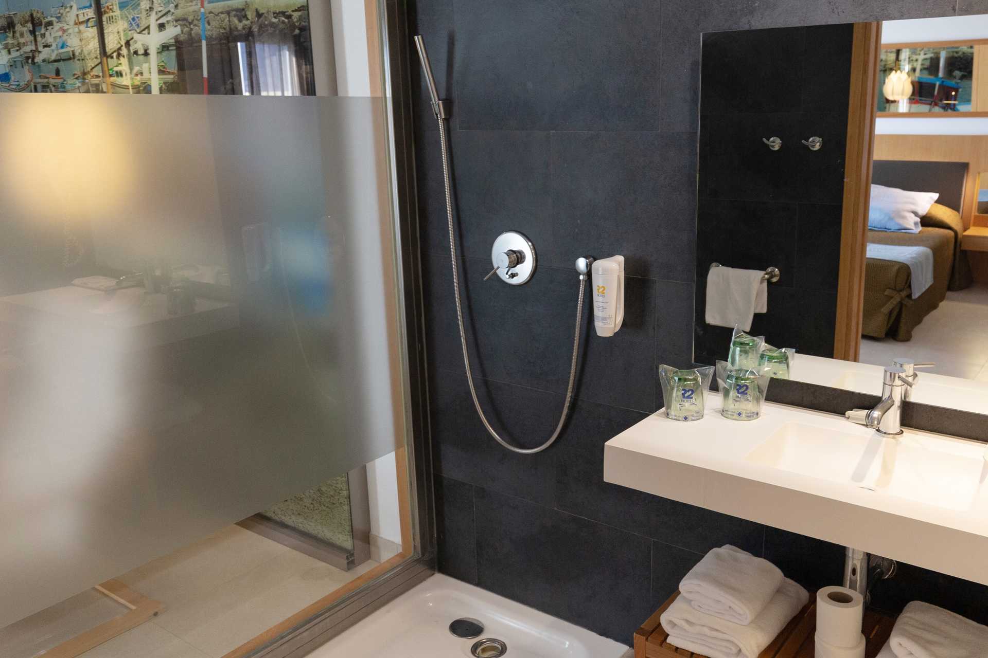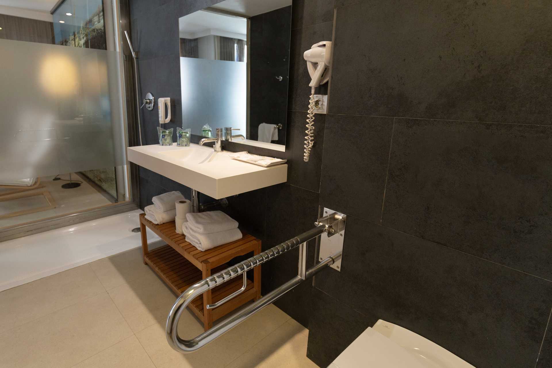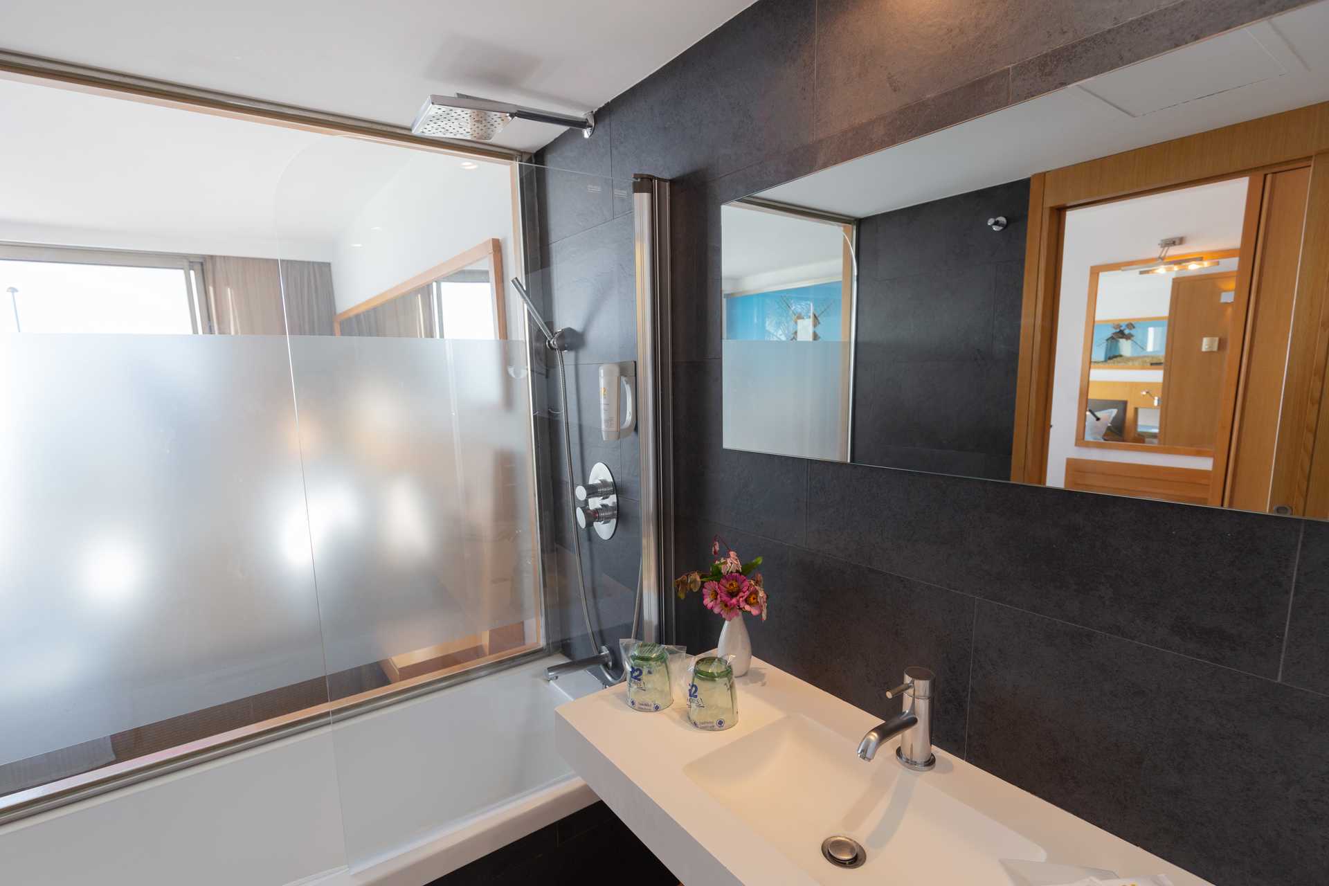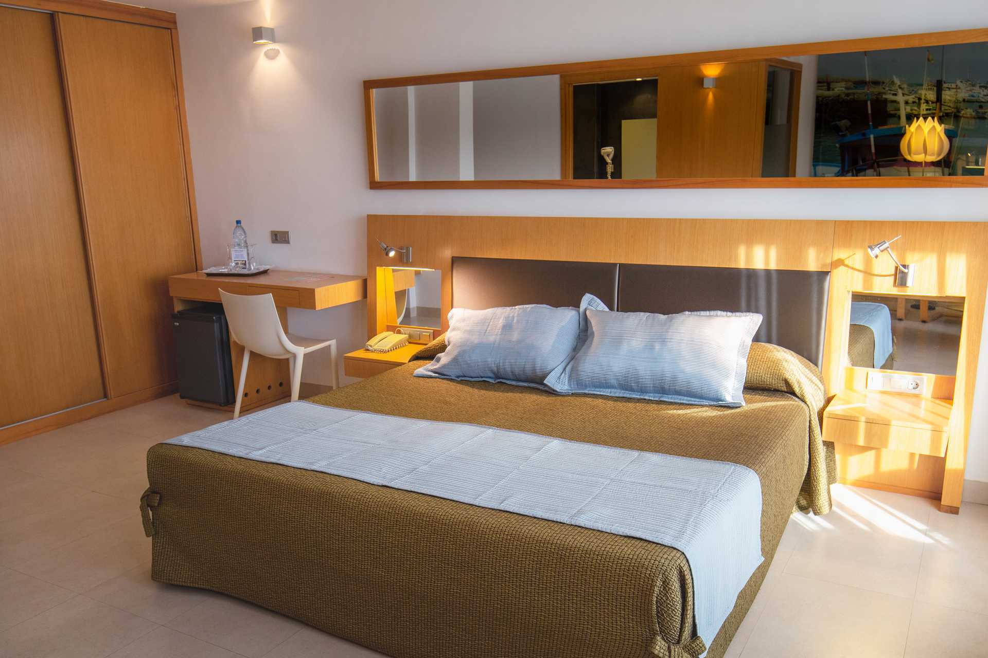 Juniorsviitti parvekkeella tai terassilla ja näkymä uima-altaalle tai merinäköala. Merinäköalalla varustetussa junior-sviitissä on parvekkeella kaksi aurinkotuolia. Istuinryhmä. Wifi ja keskusohjattu ilmastointi sisältyvät hintaan. Tallelokero lisämaksusta. Kaksi yhden hengen sänkyä. Minibaari. Tv kansainvälisillä kanavilla. Hiustenkuivain. Kylpyamme tai suihku ja wc. Huurrelasiseinä kylpyhuoneen ja makuuhuoneen välissä. Siivous 7 krt/viikko.