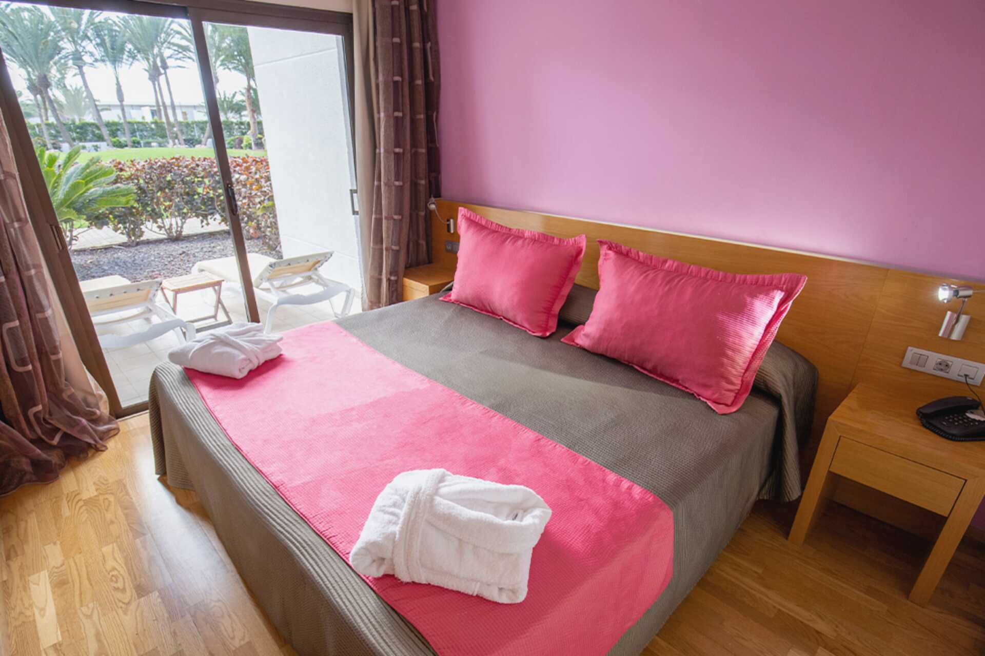 Kahden hengen huone parvekkeella. Parivuode. Maksuton wifi ja ilmastointi. Tallelokero lisämaksusta. Minibaari. Vedenkeitin, kahvia ja teetä. Tv kansainvälisillä kanavilla. Allas- ja rantapyyhkeet. Hiustenkuivain. Amme ja wc. Huurrelasiseinä kylpyhuoneen ja makuuhuoneen välissä. Siivous 7 krt/viikko. Kahden hengen huoneisiin pääsee vain portaita pitkin.