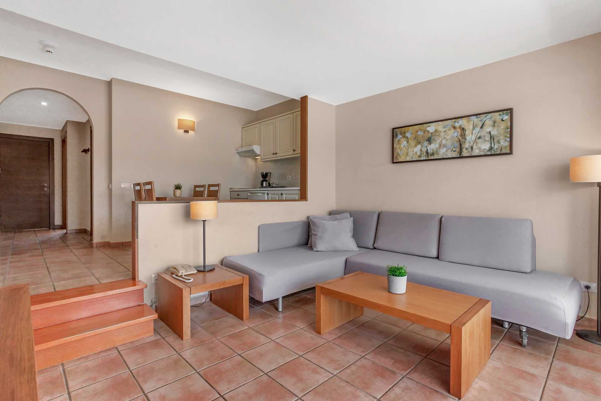 Kaksio parvekkeella tai terassilla. Makuuhuone sekä yhdistetty olohuone ja minikeittiö. Parivuode, lisävuodemahdollisuus vuodesohvasta. Minikeittiö, jossa jääkaappi, keittolevyt, kahvinkeitin ja peruskeittiövälineet. Maksuton wifi. Tallelokero lisämaksusta. Tv kansainvälisillä kanavilla. Hiustenkuivain. Kylpyhuoneessa kylpyamme tai suihku ja wc. Siivous 5 krt/viikko. Asunnoissa saattaa olla muutamia portaita. Alle 2-vuotiaat lapset lasketaan lisävuoteella majoittuviksi henkilöiksi.