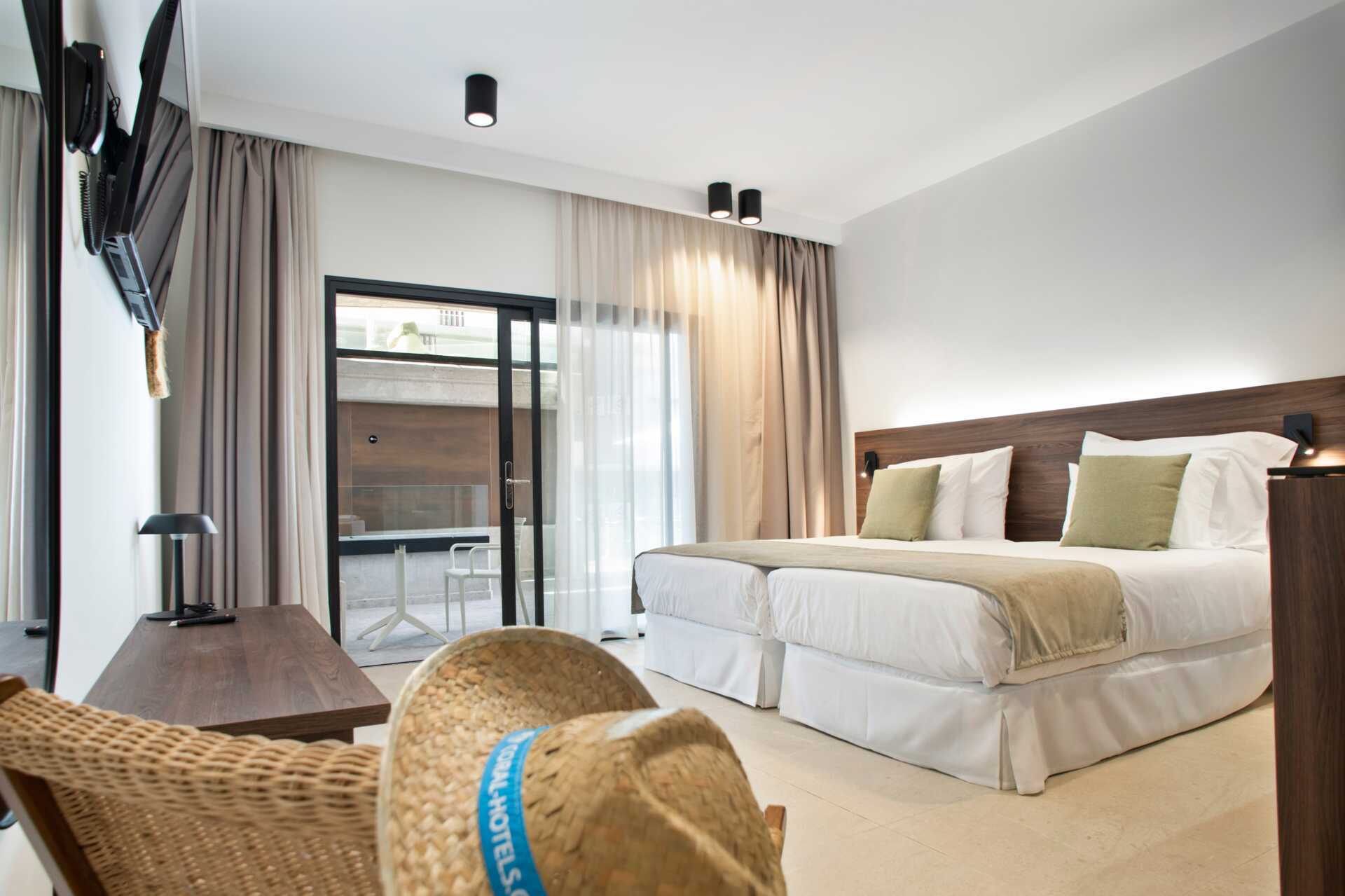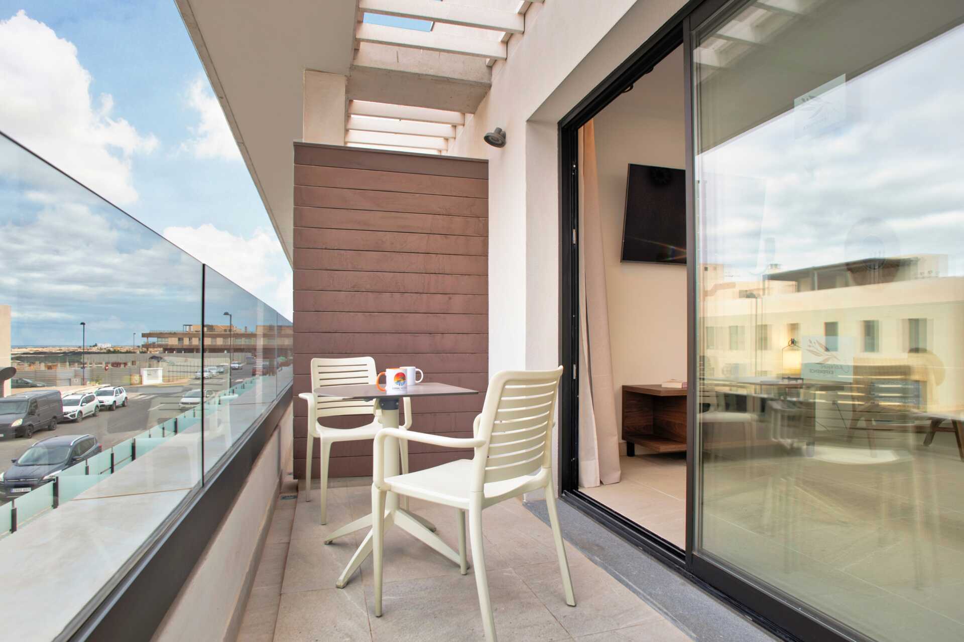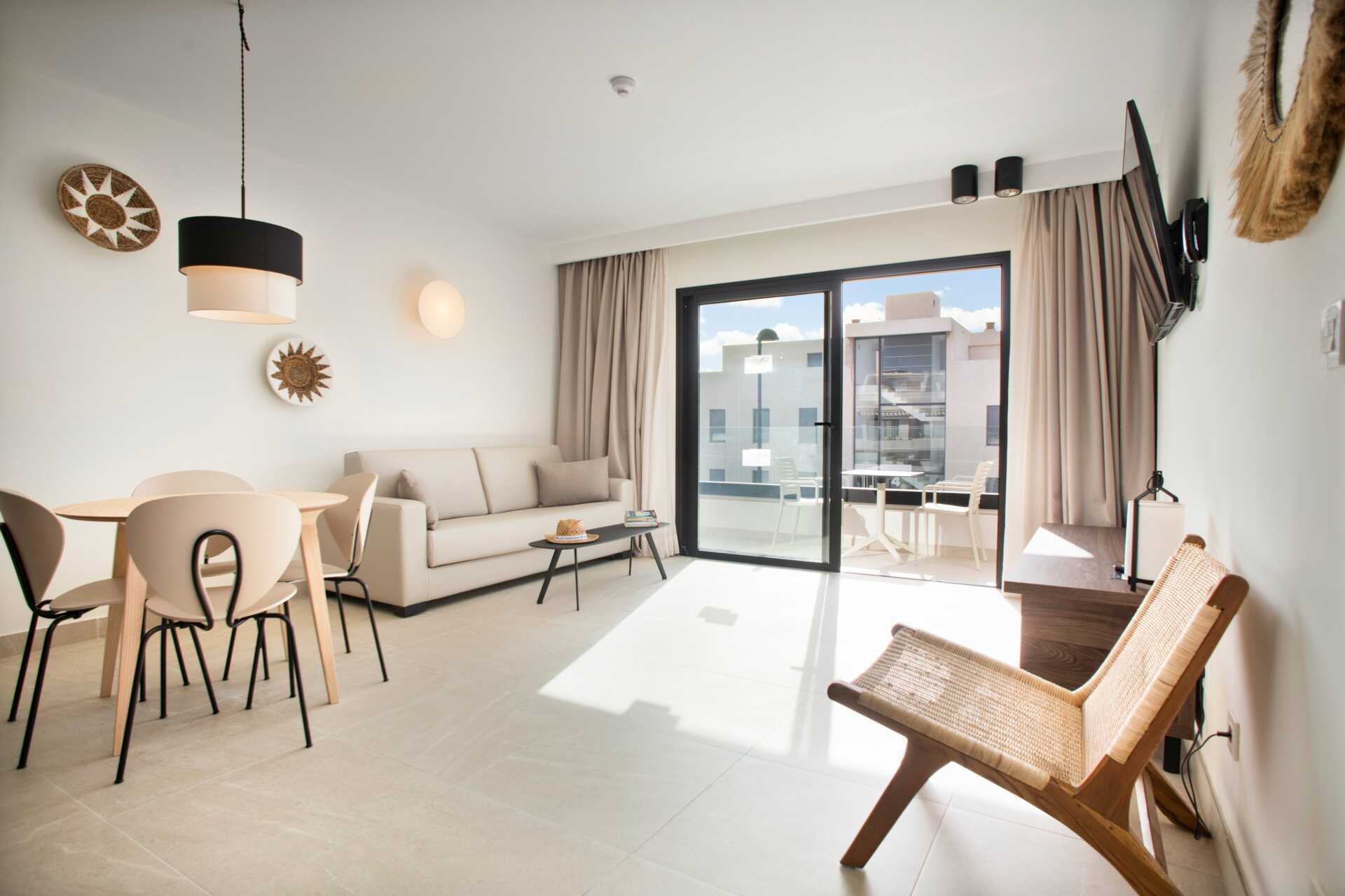 Kolmio parvekkeella tai terassilla. Kaksi makuuhuonetta sekä yhdistetty olohuone/minikeittiö. Minikeittiössä keittolevyt, jääkaappi, kahvinkeitin, vedenkeitin ja yksinkertainen keittiövarustus. Maksuton wifi, ilmastointi ja tallelokero. Tv kansainvälisillä kanavilla. Hiustenkuivain. Suihku ja wc. Siivous 7 krt/viikko.