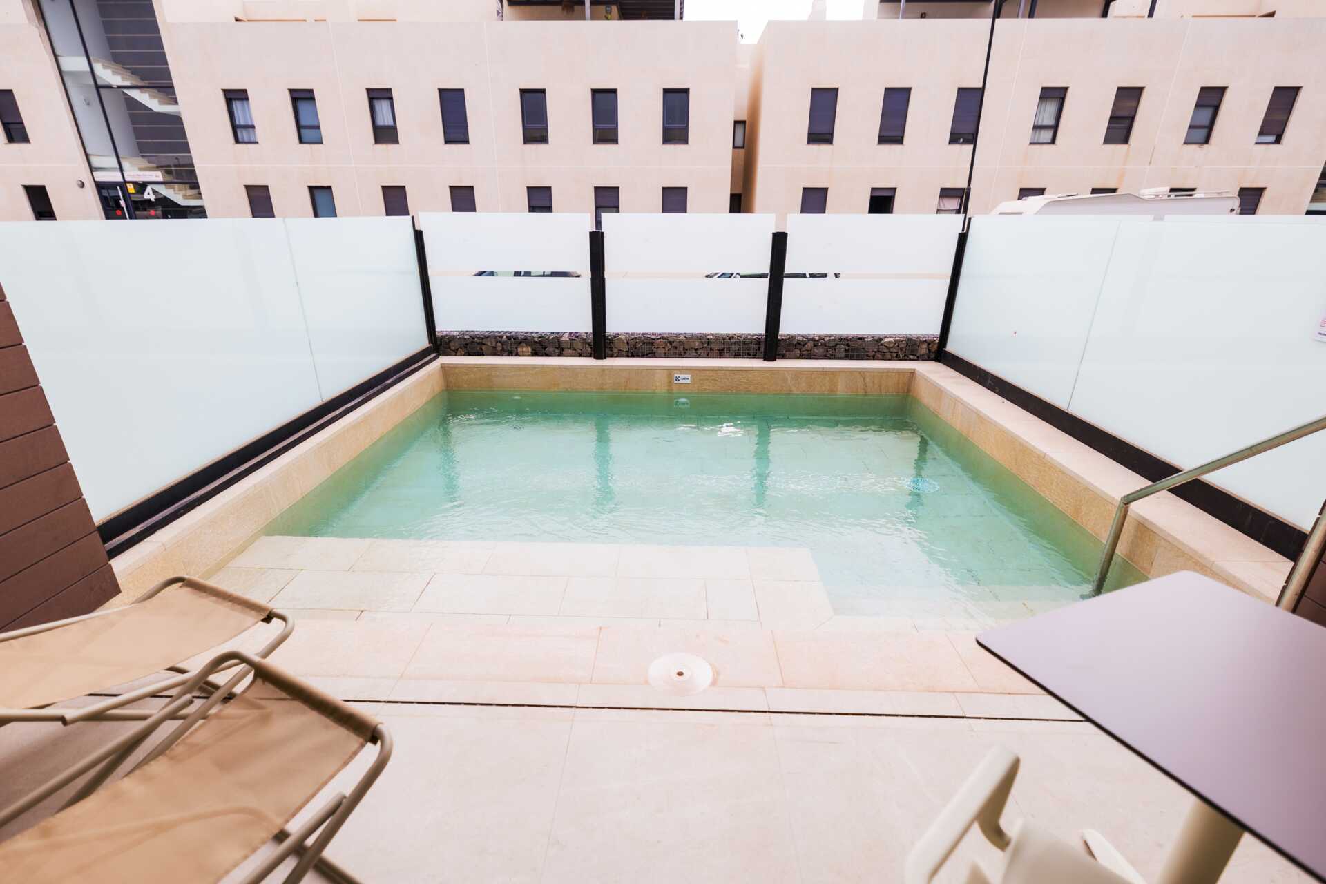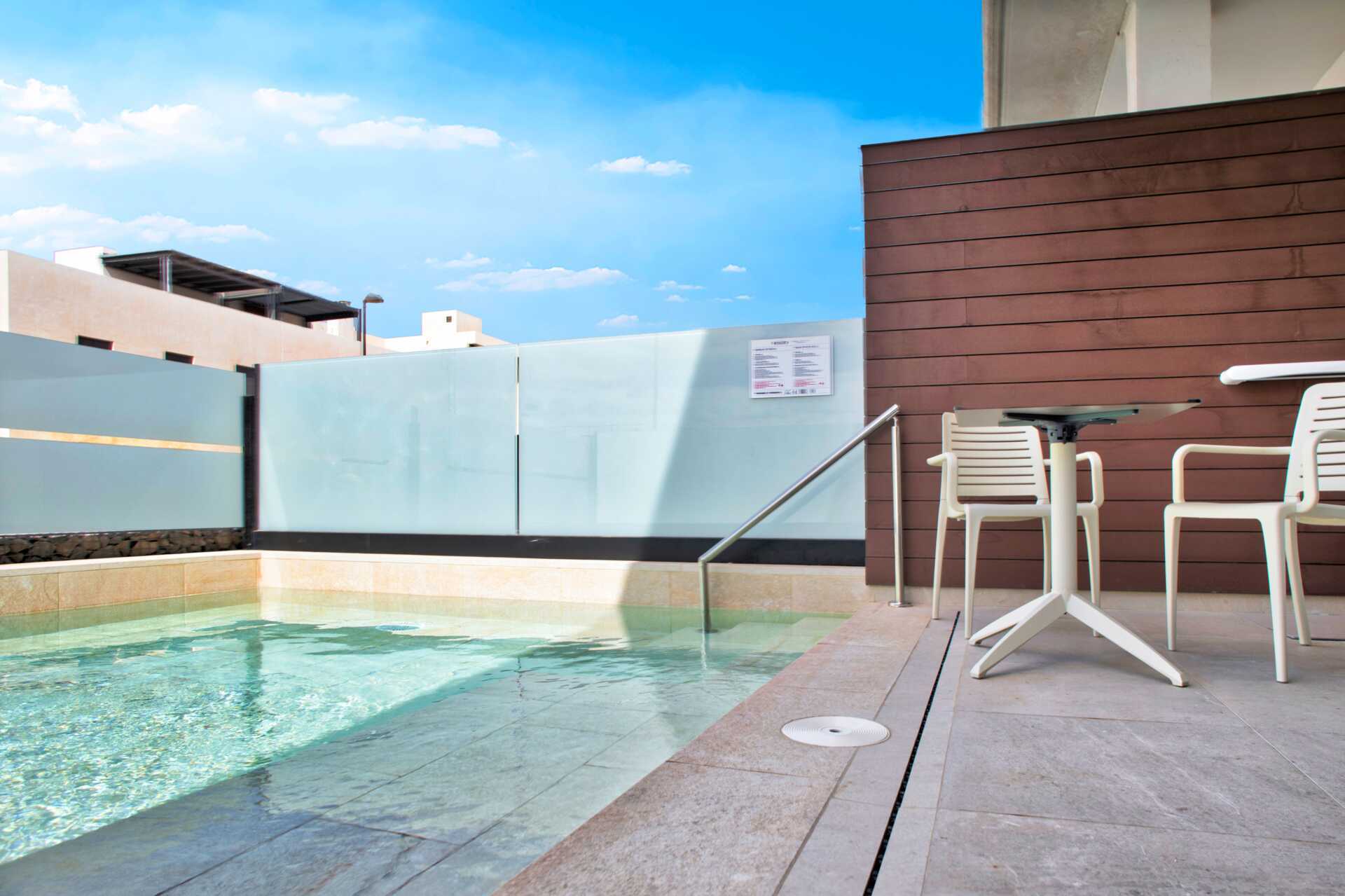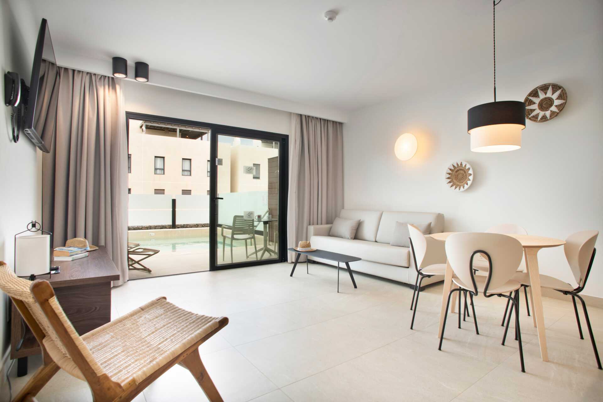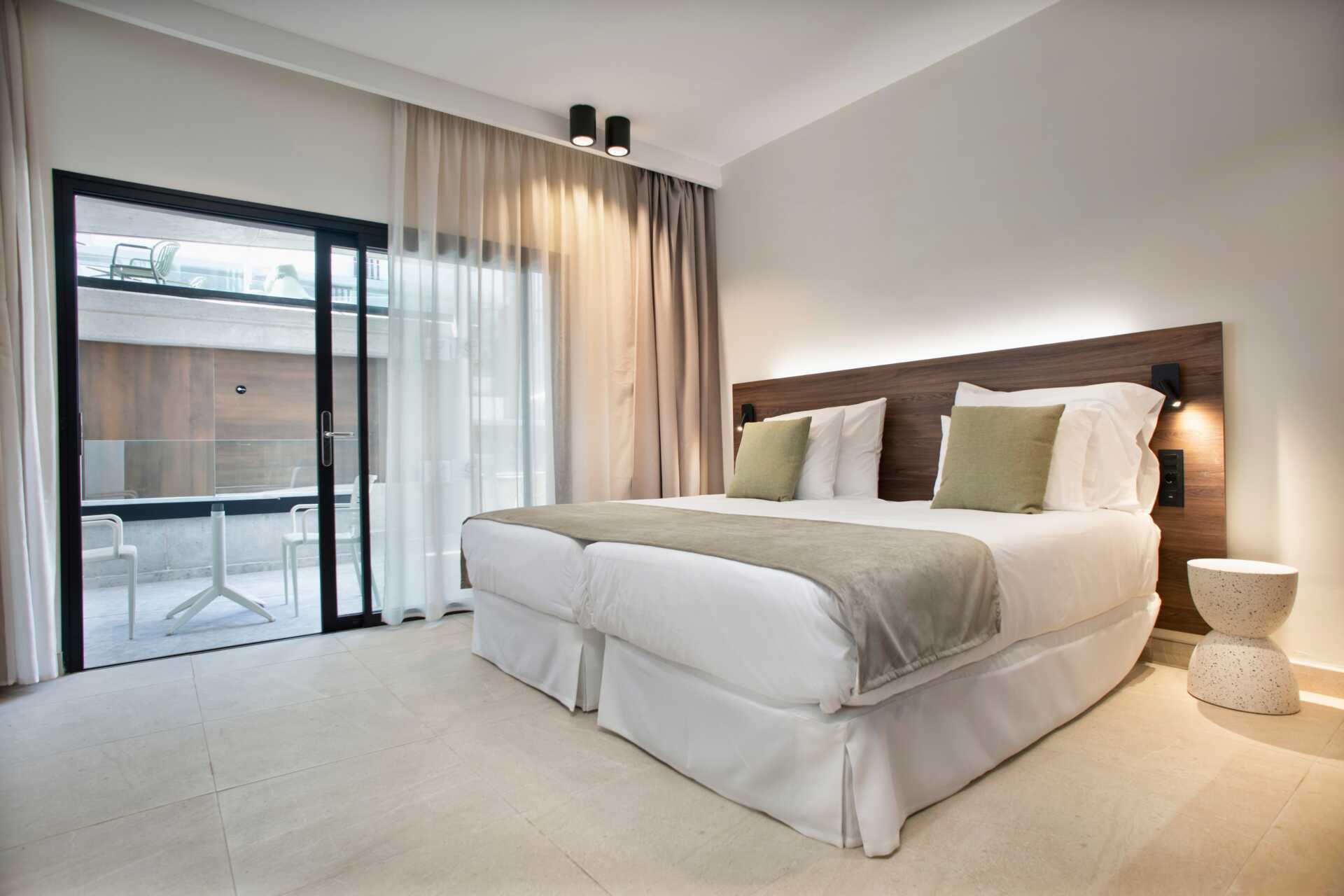 Kolmio parvekkeella tai terassilla. Kaksi makuuhuonetta sekä yhdistetty olohuone/minikeittiö. Minikeittiössä keittolevyt, jääkaappi, kahvinkeitin, vedenkeitin ja yksinkertainen keittiövarustus. Maksuton wifi, ilmastointi ja tallelokero. Tv kansainvälisillä kanavilla. Hiustenkuivain. Suihku ja wc. Siivous 7 krt/viikko.