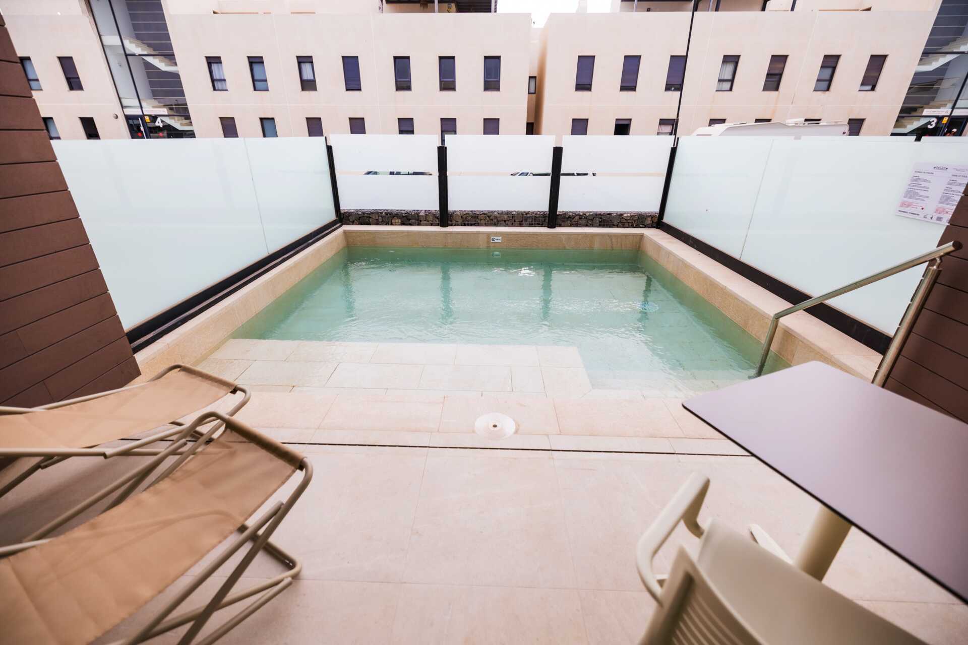 Kaksio parvekkeella ja kattoterassilla. Makuuhuone sekä yhdistetty olohuone ja minikeittiö. Minikeittiössä keittolevyt, jääkaappi, kahvinkeitin, vedenkeitin ja yksinkertainen keittiövarustus. Maksuton wifi, ilmastointi ja tallelokero. Tv kansainvälisillä kanavilla. Hiustenkuivain. Kylpyhuoneessa suihku ja wc. Siivous 7 krt/viikko.