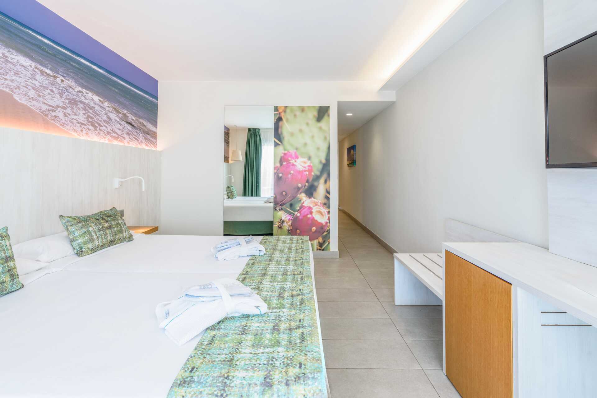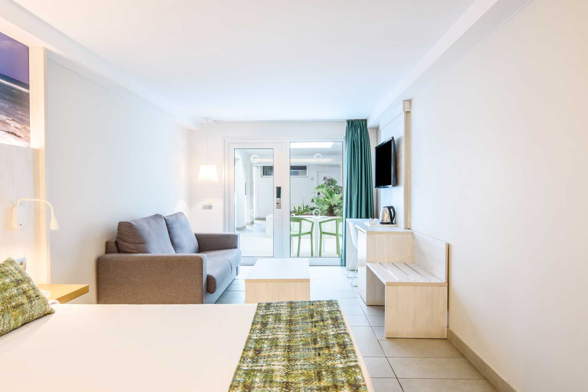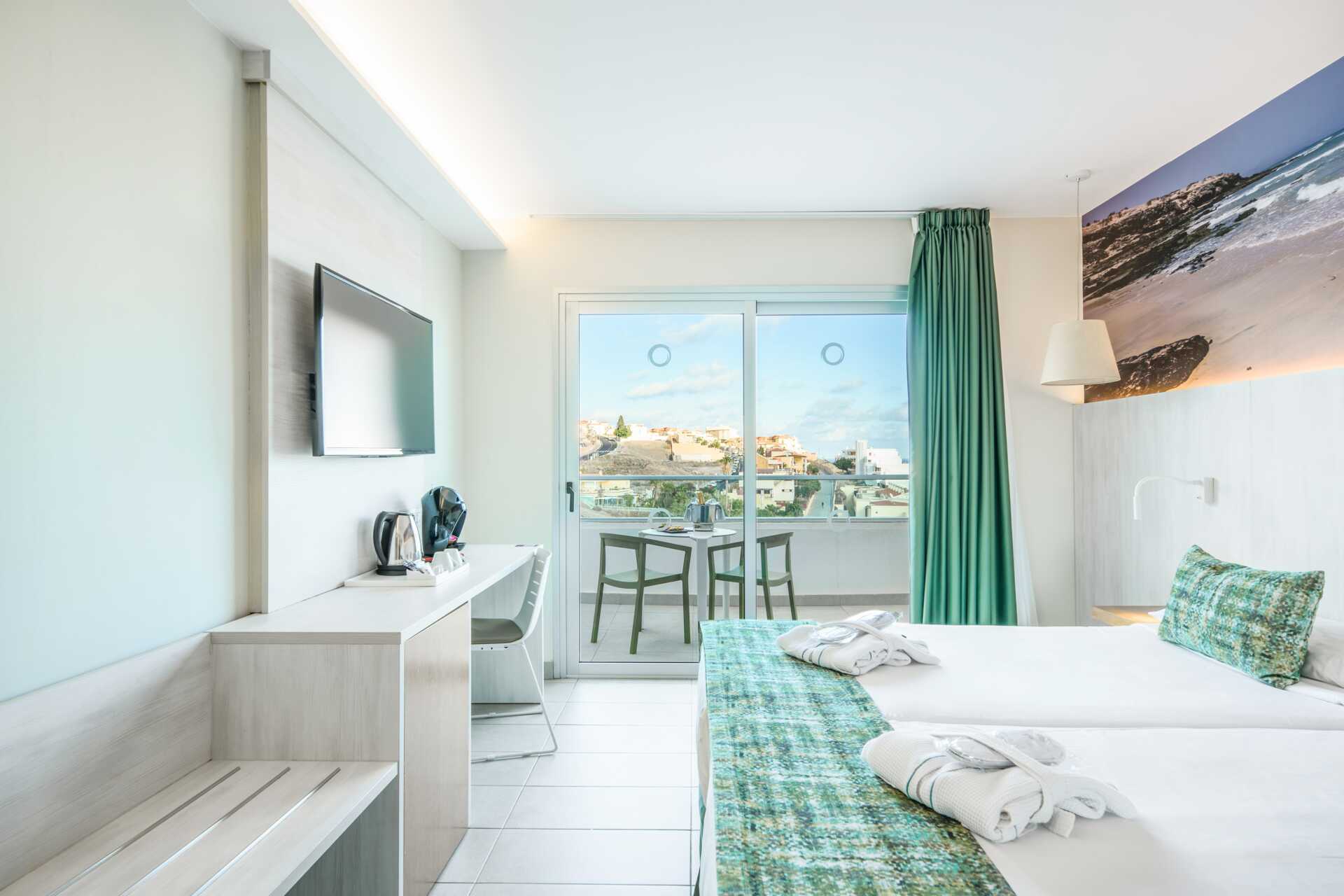Kahden hengen huoneessa parveke, terassi tai ilman ulkotilaa. Kaksi erillistä sänkyä. Lisävuodemahdollisuus vuodesohvaan huoneissa, joissa on parveke tai terassi. Maksuton wifi, ilmastointi ja tallelokero. Vedenkeitin, kahvia ja teetä. Tv kansainvälisillä kanavilla. Hiustenkuivain. Kylpyhuoneessa suihku ja wc. Siivous 7 krt/viikko. Tasoeroja mahdollisesti huoneen porrastuksen myötä.