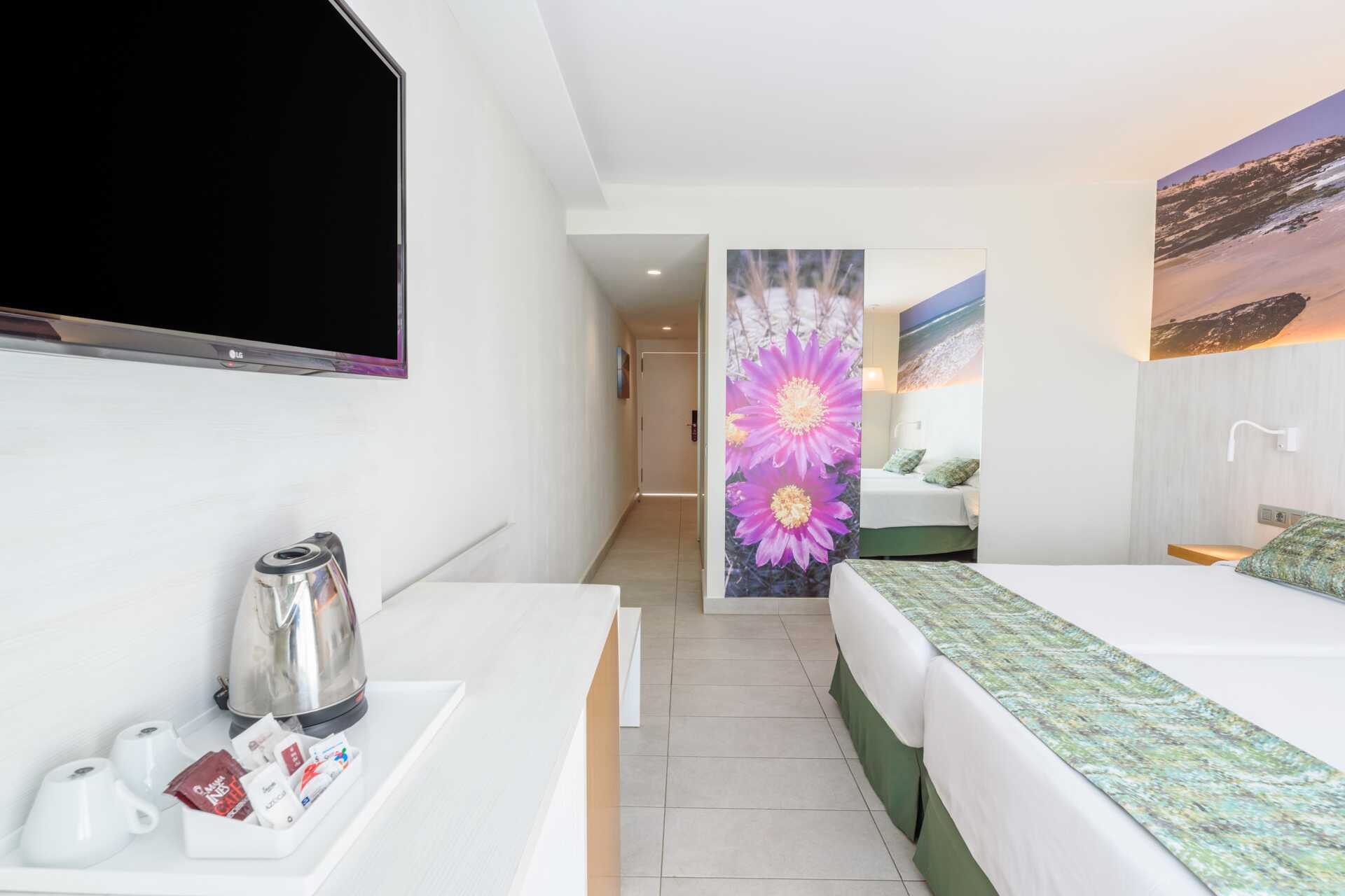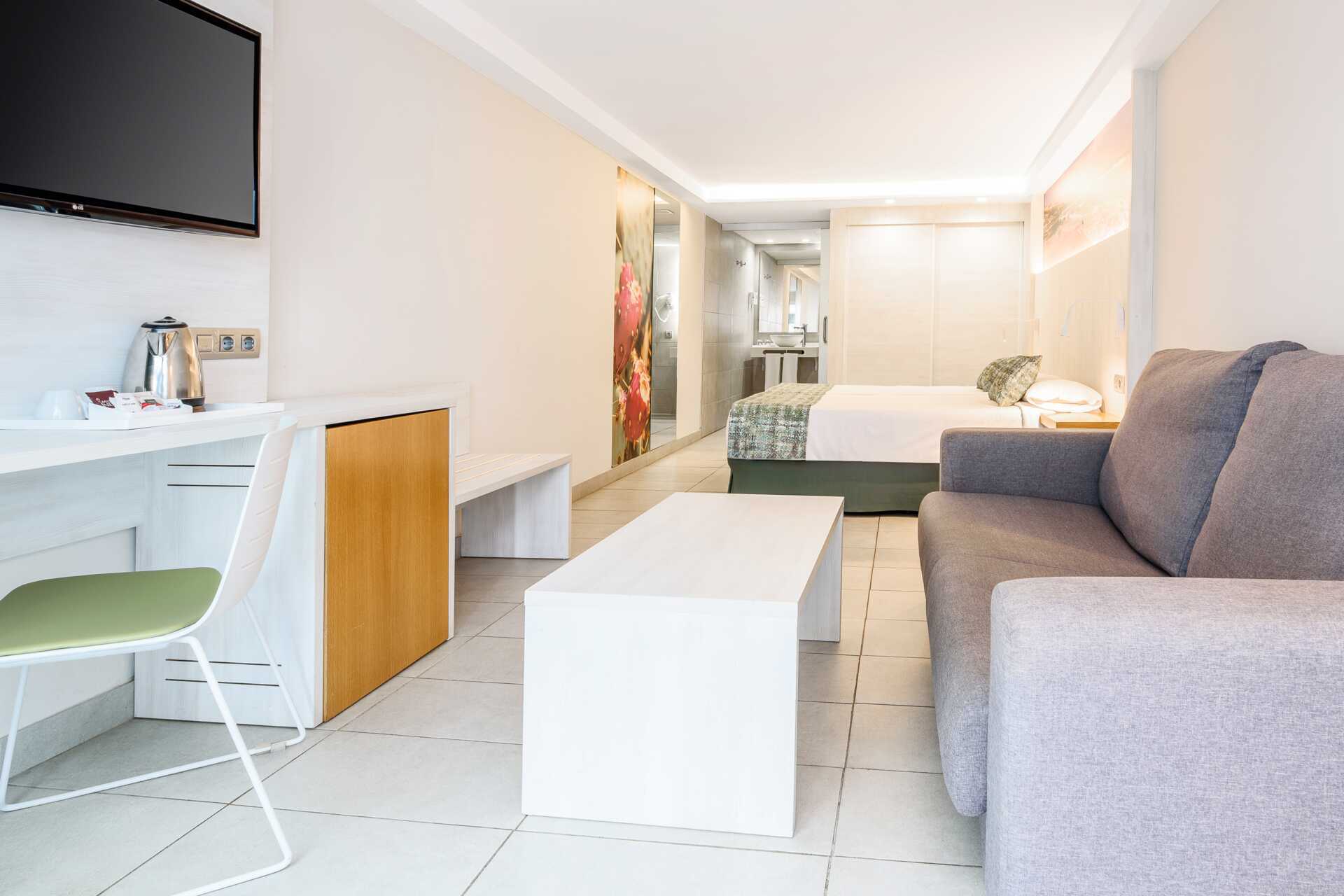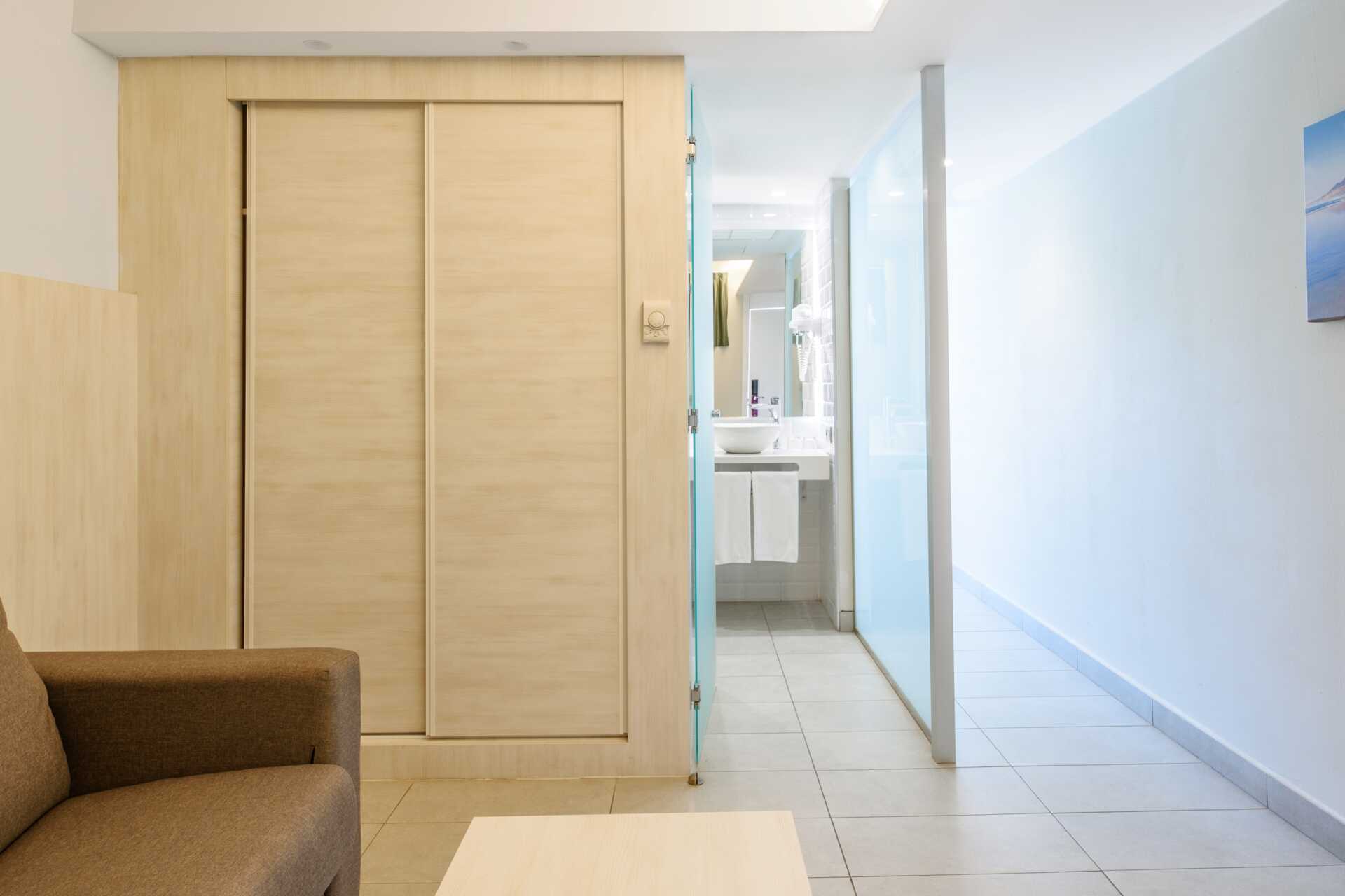 Kahden hengen huoneessa parveke, terassi tai ilman ulkotilaa. Kaksi erillistä sänkyä. Lisävuodemahdollisuus vuodesohvaan huoneissa, joissa on parveke tai terassi. Maksuton wifi, ilmastointi ja tallelokero. Vedenkeitin, kahvia ja teetä. Tv kansainvälisillä kanavilla. Hiustenkuivain. Kylpyhuoneessa suihku ja wc. Siivous 7 krt/viikko. Tasoeroja mahdollisesti huoneen porrastuksen myötä.