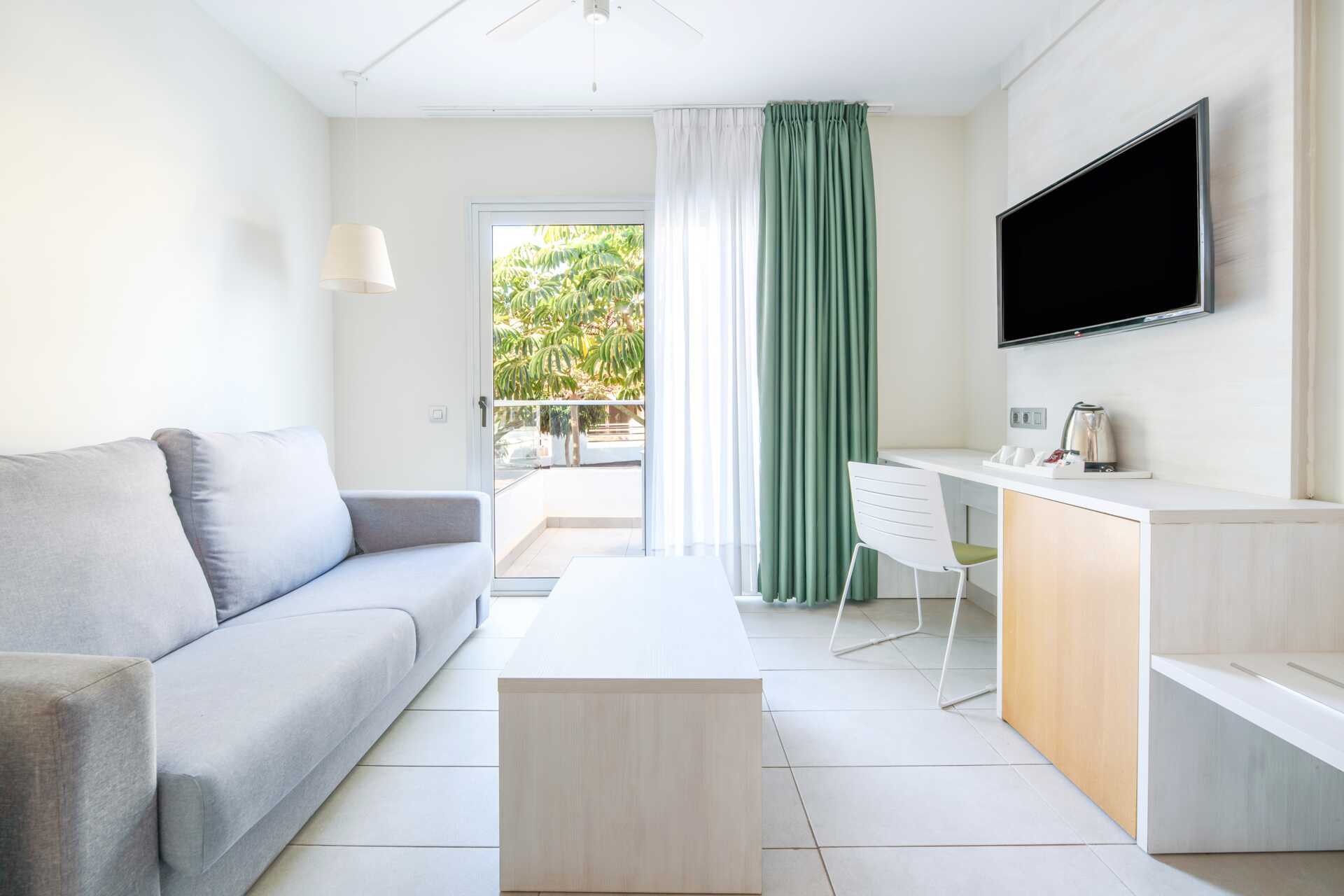 Juniorsviitissä on parveke, osassa rajoitettu merinäköala, osa kahdessa kerroksessa. Tavallinen junior-sviitti koostuu makuuhuoneesta, jossa on kaksi erillistä vuodetta, ja olohuoneesta, jossa on vuodesohva. Kahdessa kerroksessa oleva junior-sviitti koostuu olohuoneesta kahdella yhden hengen vuoteella ja kylpyhuoneesta sisäänkäynti kerroksessa ja yläkerrassa on vuodesohva lisävuoteita varten - ei ovea kerrosten välissä. Maksuton wifi, ilmastointi ja tallelokero. Tv kansainvälisillä kanavilla. Vedenkeitin, kahvia ja teetä. Hiustenkuivain. Kylpyhuoneessa suihku ja wc. Siivous 7 krt/viikko.