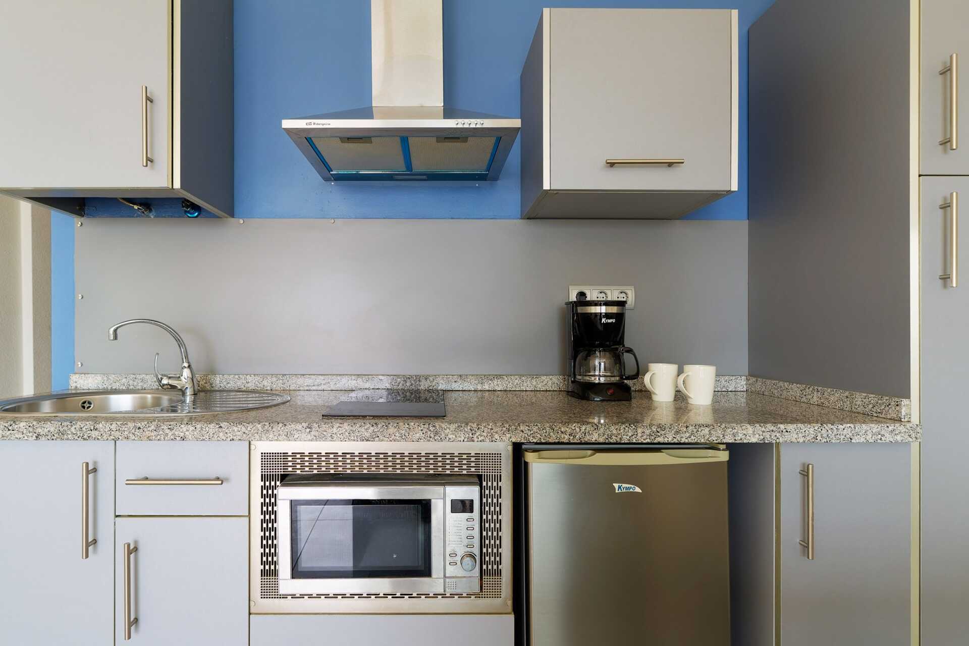 Kaksio parvekkeella ja merinäköalalla. Makuuhuone sekä yhdistetty olohuone ja minikeittiö. Kaksi yhden hengen sänkyä. Lisävuodemahdollisuus vuodesohvasta. Maksuton wifi. Tallelokero lisämaksusta. Minikeittiössä keittolevyt, jääkaappi, vedenkeitin, kahvinkeitin ja yksinkertainen keittiövarustus. Tv kansainvälisillä kanavilla. Suihku ja wc. Siivous 2 krt/viikko.