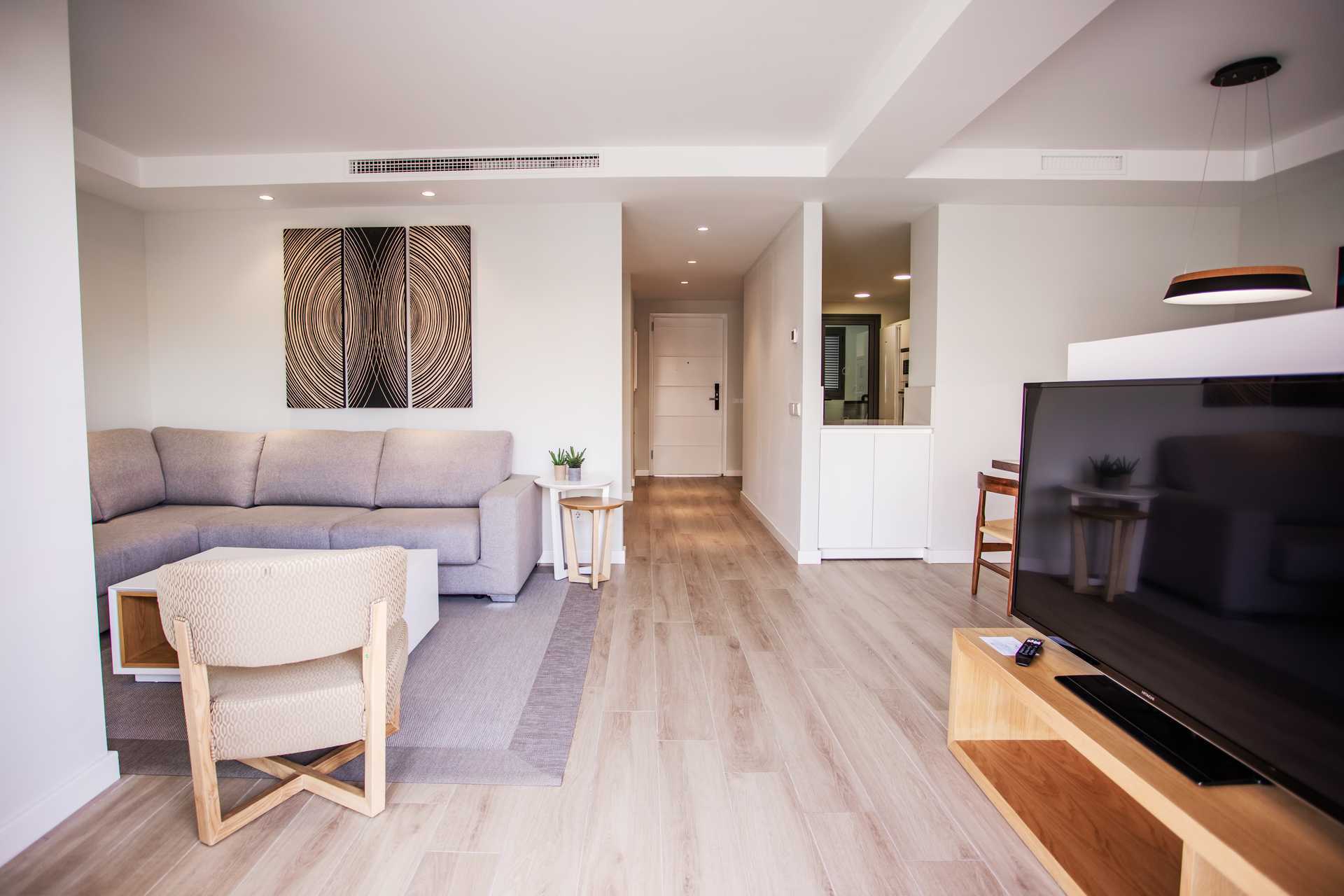 Neljän huoneen huoneisto parvekkeella. Makuuhuone sekä yhdistetty olohuone ja minikeittiö. Kahdessa makuuhuoneessa on kaksi erillistä sänkyä kummassakin huoneessa ja kolmannessa huoneessa on vuodesohva. Minikeittiö, jossa jääkaappi ja pakastin, astianpesukone, kahvinkeitin, vedenkeitin, mikroaaltouuni, leivänpaahdin, uuni ja hyvät keittiövälineet. Maksuton wifi, tallelokero ja ilmastointi. Tv kansainvälisillä kanavilla. Silitysrauta. Pesukone. Hiustenkuivain. Kolme kylpyhuonetta suihkulla ja wc:llä. Siivous 5 krt/viikko.