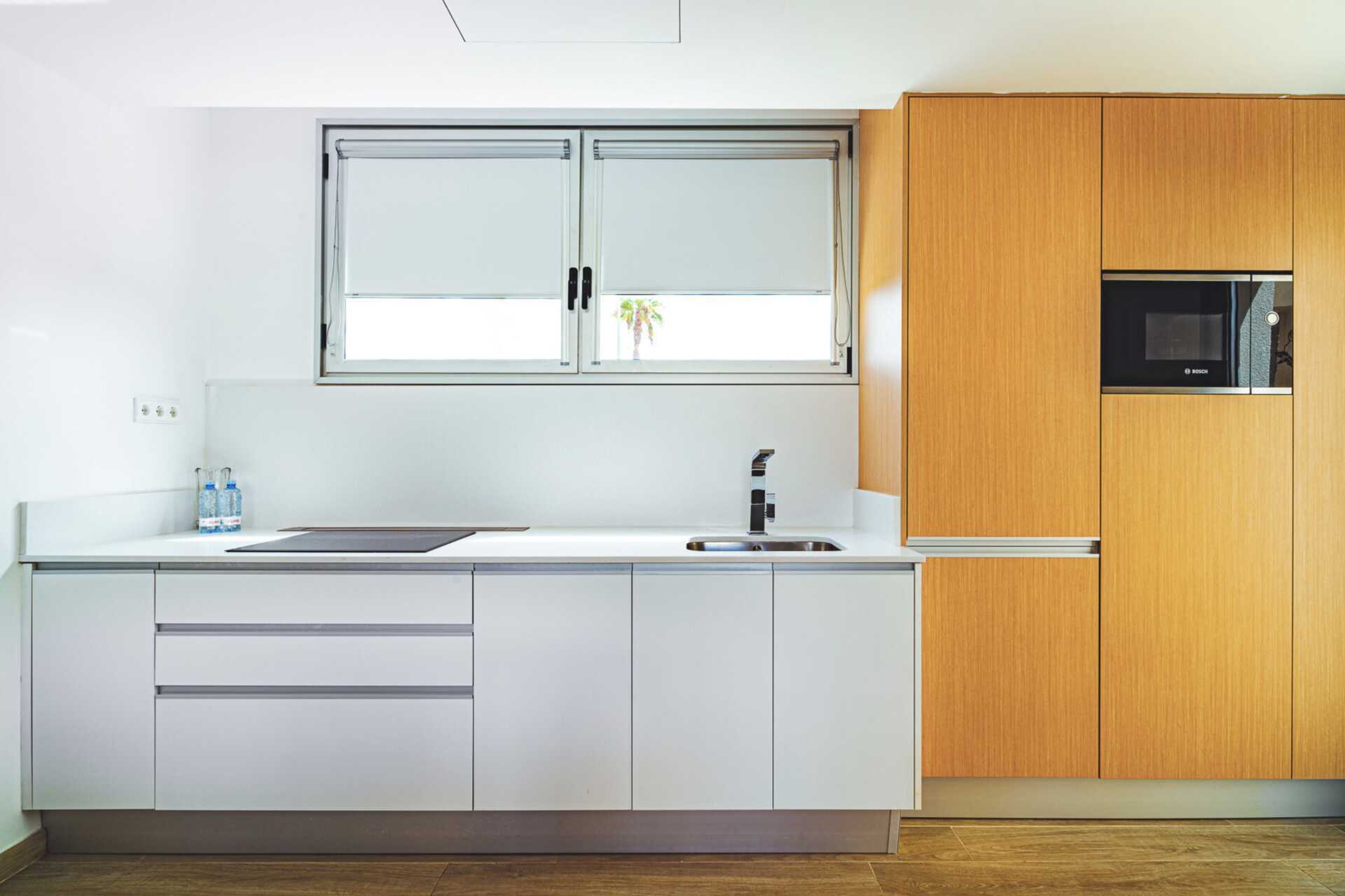 Kolmen huoneen huoneisto ensimmäisessä kerroksessa maaterassilla ja oma uima-allas. Altaat lämmitetään talvella 22 asteeseen. Altaan lämpötila voi kuitenkin laskea muutaman asteen aamuisin, iltaisin ja huonolla säällä. Huoneistot sijaitsevat pienemmissä rakennuksissa, joissa kussakin on kaksi asuntoa. Sisääntulokerroksessa on makuuhuone, jossa on ilmastointi, kaksi erillistä vuodetta ja tv kansainvälisillä kanavilla sekä kylpyhuone hiustenkuivaajalla, suihku ja wc. Terassilla on ruokailutila, aurinkotuoleja ja -varjoja sekä suihku. Yläkerrassa on yhdistetty olohuone keittokomeroineen ja ilmastoinnilla, mahdollisuus lisävuoteille vuodesohvalla, kylpyhuone hiustenkuivaajalla, suihku ja wc sekä makuuhuone, jossa on ilmastointi, kaksi erillistä sänkyä ja tv kansainvälisillä kanavilla. Minikeittiö, jossa jääkaappi, pakastin, mikroaaltouuni, neljä keittolevyä, astianpesukone, leivänpaahdin, kahvinkeitin, vedenkeitin, mehupuristin, kananmunankeitin ja yksinkertaiset keittiövälineet. Maksuton wifi, ilmastointi ja tallelokero. Kylpytakit. Allaspyyhkeet. Pesukone ja kuivausrumpu Siivous 7 krt/viikko.