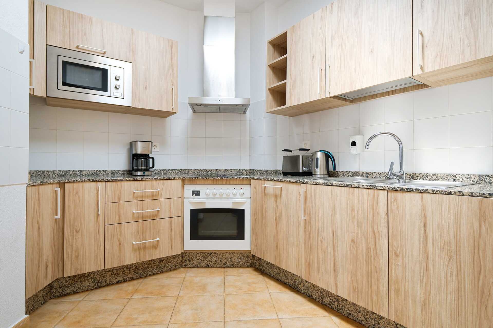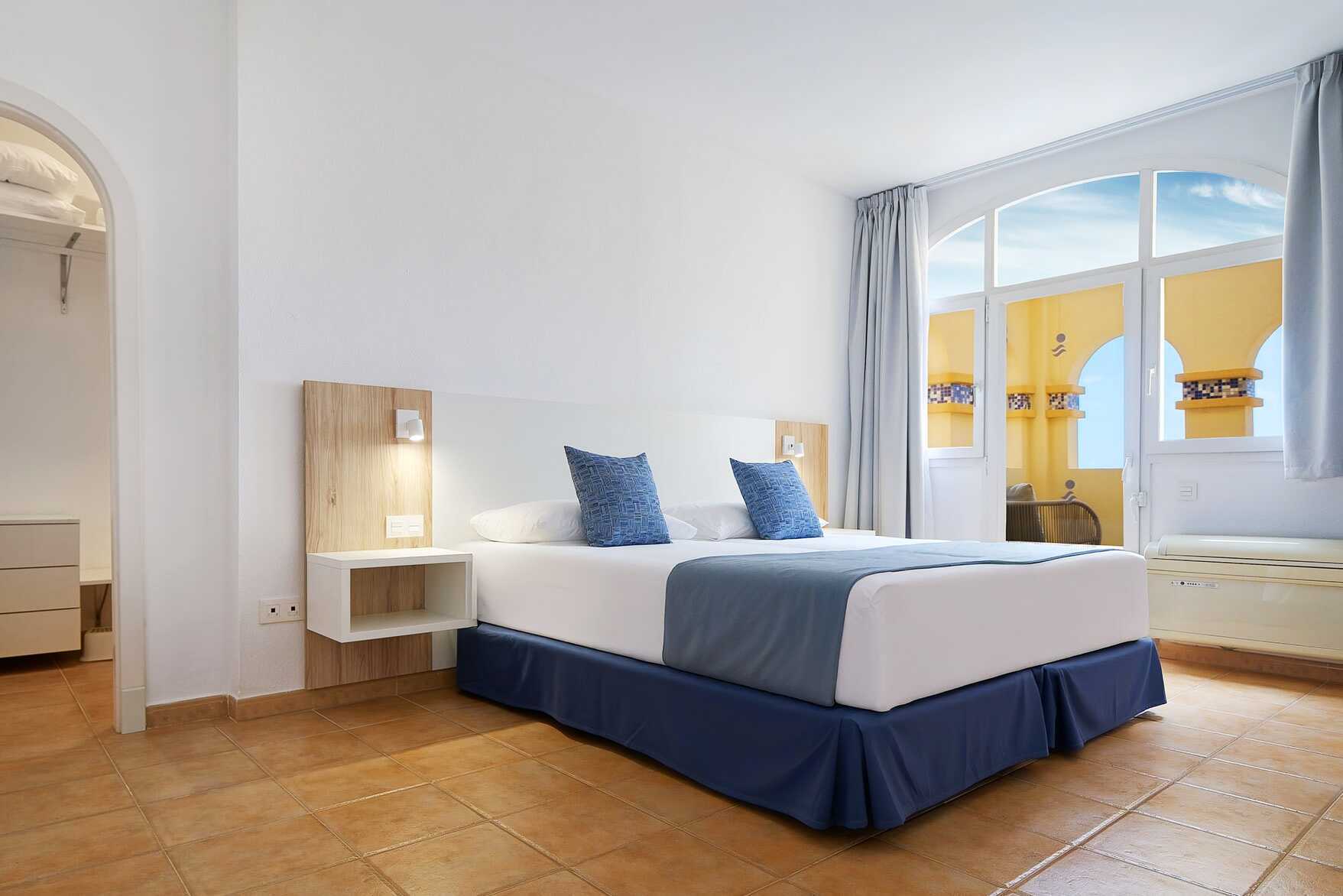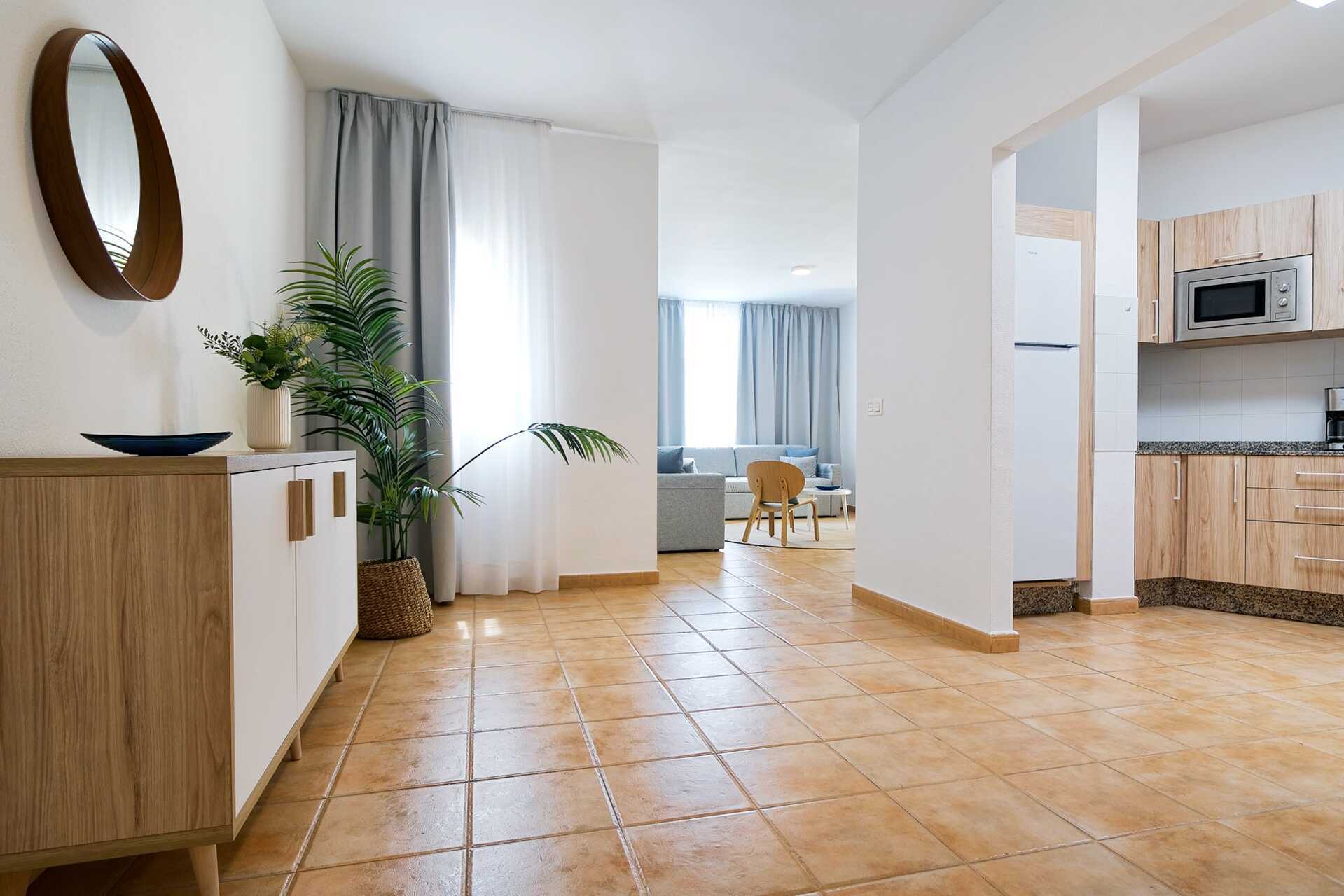 Kolmio, jossa parveke, osassa näkymä uima-altaalle tai vaihtoehtoisesti iso parveke. Kaksi makuuhuonetta ja olohuone minikeittiöllä. Kaksi yhden hengen sänkyä molemmissa makuuhuoneissa. Lisävuodemahdollisuus vuodesohvasta tai kokoontaitettavassa vuoteesta. Minikeittiö, jossa keittolevyt, jääkaappi, kahvinkeitin, leivänpaahdin, mikro ja yksinkertainen keittiövarustus. Maksuton wifi, ilmastointi ja tallelokero. Smart-tv kansainvälisillä kanavilla. Hiustenkuivain. Kylpyhuoneessa suihku ja wc. Siivous 5 krt/viikossa (ei siivousta keskiviikkoisin ja sunnuntaisin).