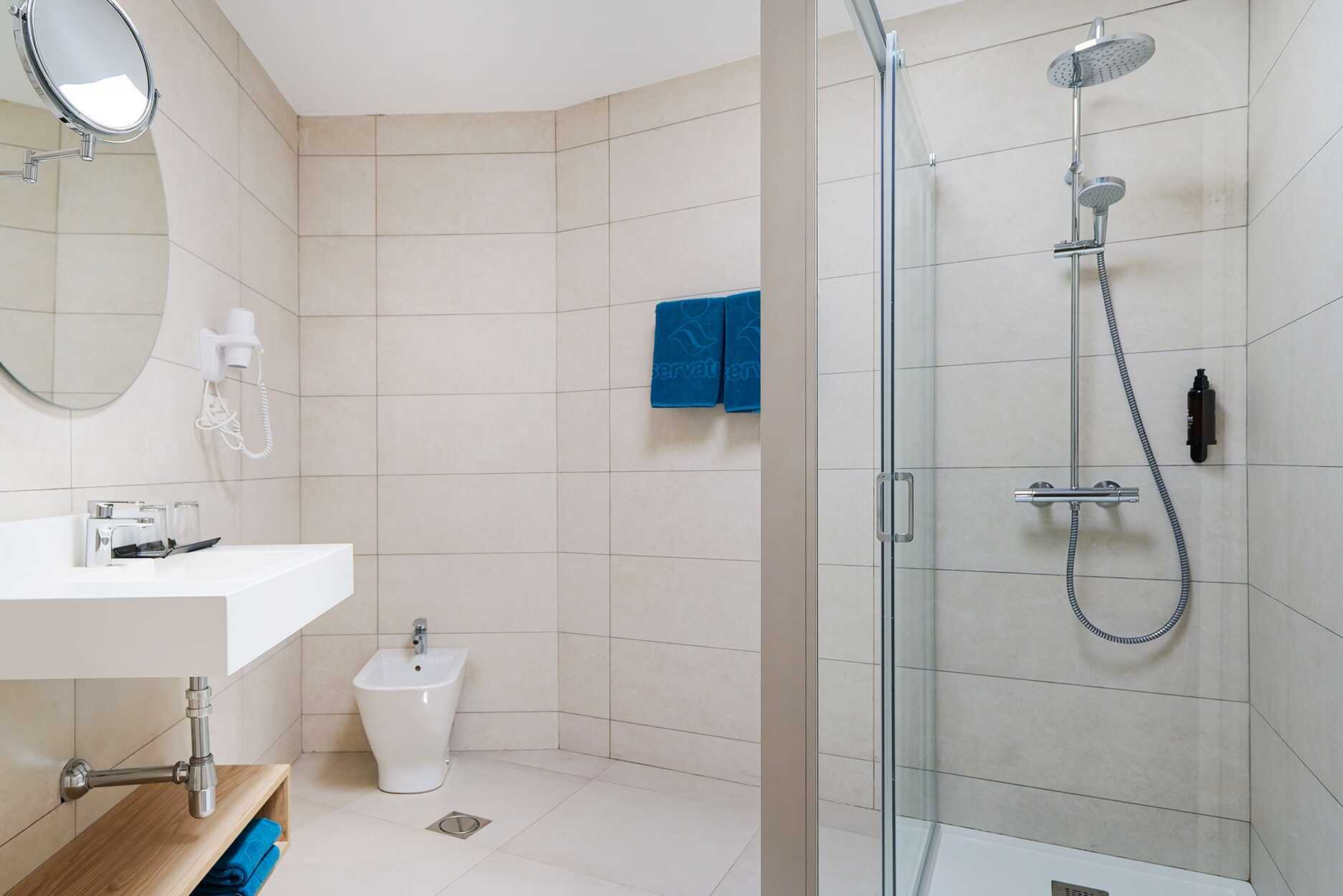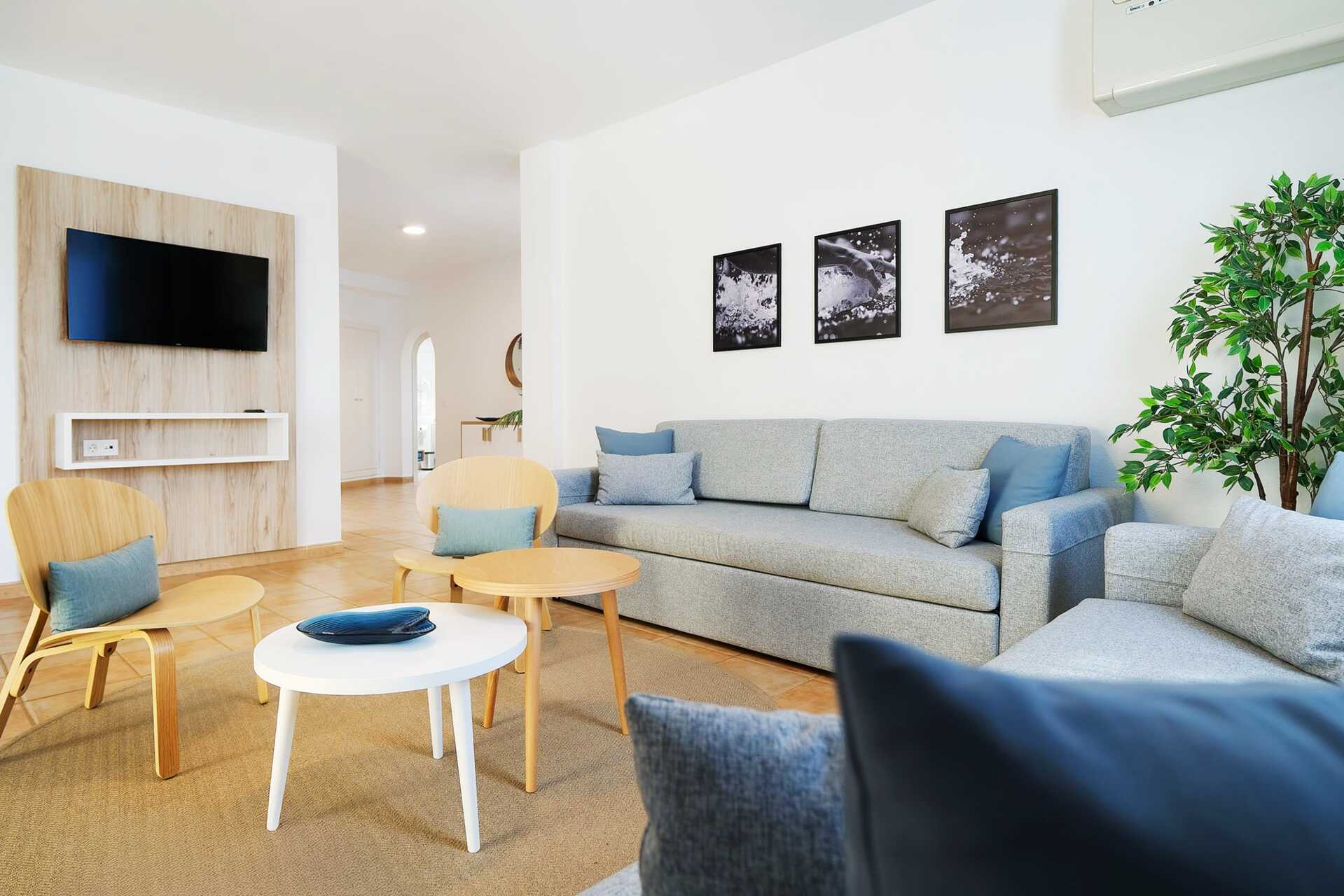 Superior-kolmio, jossa on poreallas parvekkeella. Ulkotilassa on aurinkotuoleja taitettavalla selkänojalla. Kaksi makuuhuonetta ja olohuone yhdistettynä minikeittiöön. Kaksi erillistä sänkyä kaikissa makuuhuoneissa. Lisävuodemahdollisuus vuodesohvasta tai kokoontaitettavassa vuoteesta. Minikeittiö, jossa keittolevyt, jääkaappi, kahvinkeitin, leivänpaahdin, mikro ja yksinkertainen keittiövarustus. Maksuton wifi, ilmastointi ja tallelokero. Smart-tv kansainvälisillä kanavilla. Hiustenkuivain. Remontoitu kylpyhuone suihkulla ja wc:llä. Siivous 5 krt/viikossa (ei siivousta keskiviikkoisin ja sunnuntaisin).