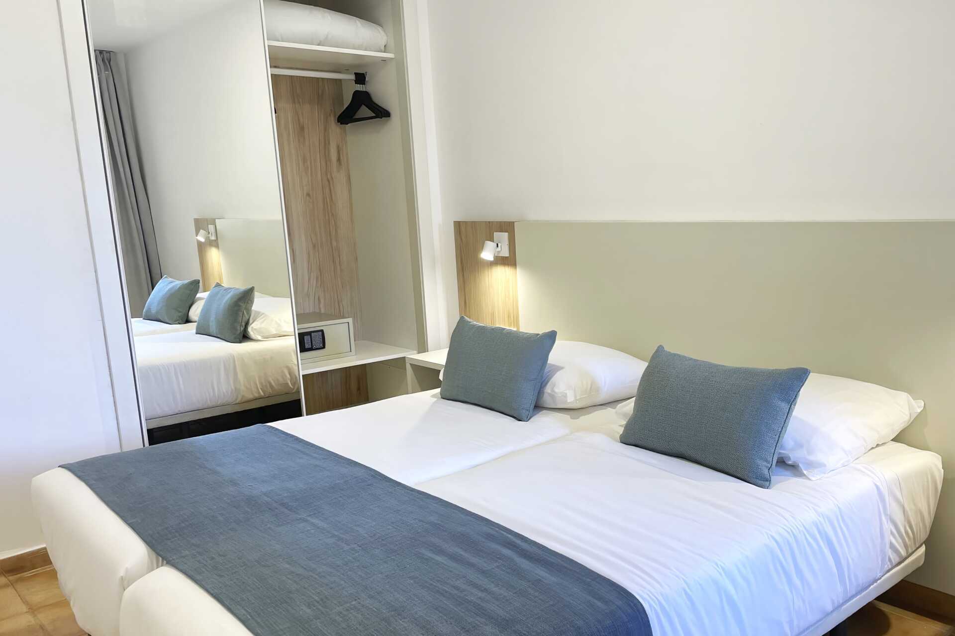 Superior-kolmio, parvekkeella tai terassilla, osasta on näkymät uima-altaalle. Kaksi makuuhuonetta ja yhdistetty olohuone ja minikeittiö. Kaksi yhden hengen sänkyä molemmissa makuuhuoneissa. Lisävuodemahdollisuus vuodesohvasta tai kokoontaitettavassa vuoteesta. Minikeittiö, jossa keittolevyt, jääkaappi, kahvinkeitin, leivänpaahdin, mikro ja yksinkertainen keittiövarustus. Maksuton wifi, ilmastointi ja tallelokero. Smart-tv kansainvälisillä kanavilla. Hiustenkuivain. Remontoitu kylpyhuone suihkulla ja wc:llä. Siivous 5 krt/viikossa (ei siivousta keskiviikkoisin ja sunnuntaisin).