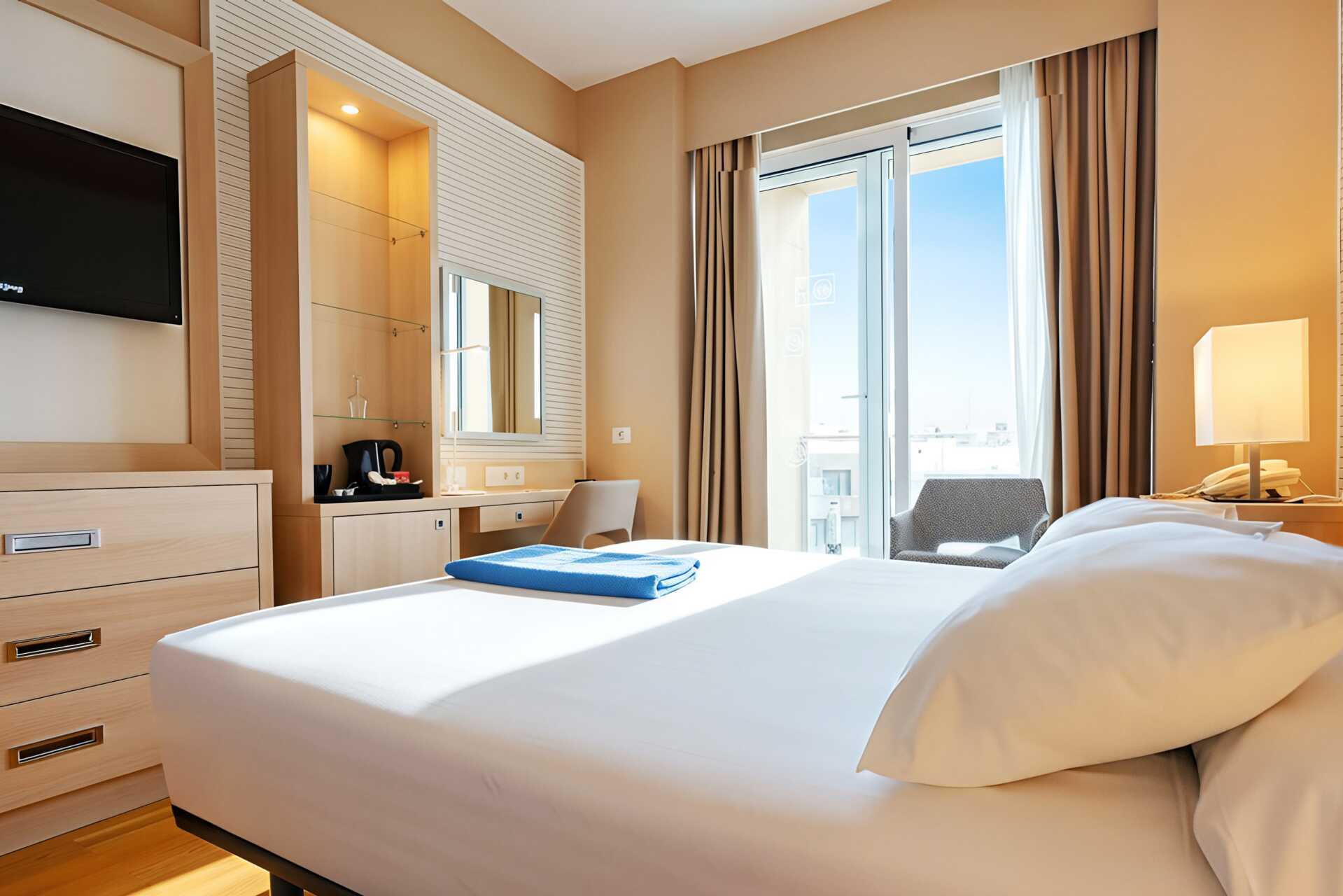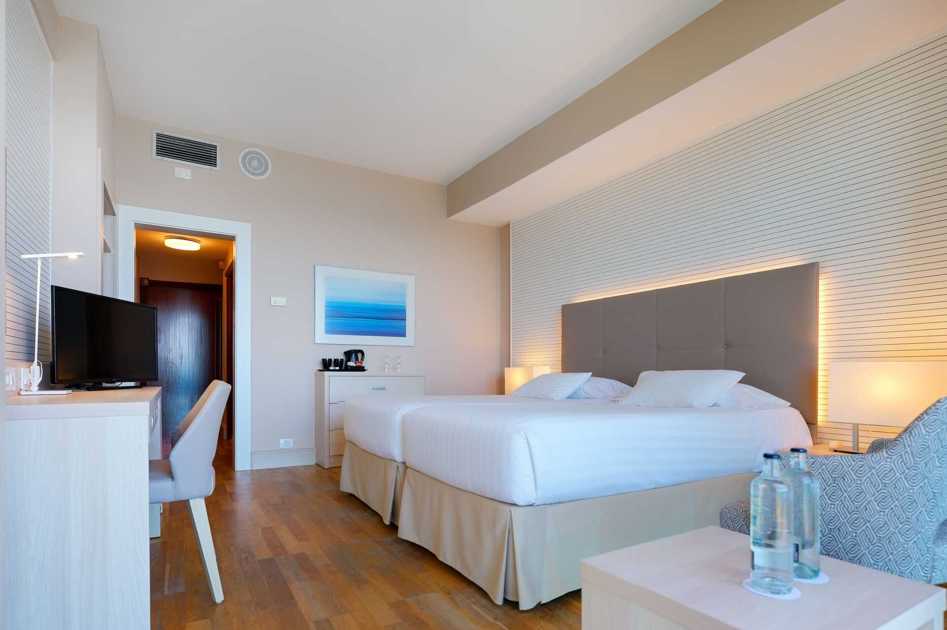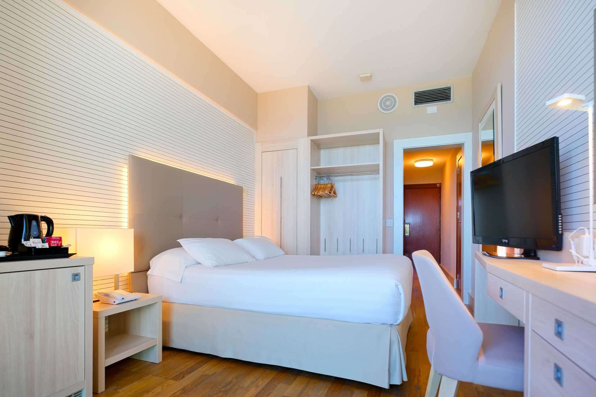 Yhden hengen huone parvekkeella. Maksuton wifi ja ilmastointi. Tallelokero lisämaksusta. Minibaari. Tv kansainvälisillä kanavilla. Hiustenkuivain. Kylpyhuoneessa suihku ja wc. Siivous 7 krt/viikko. Alle 2-vuotiaat lapset lasketaan lisävuoteella majoittuviksi henkilöiksi.