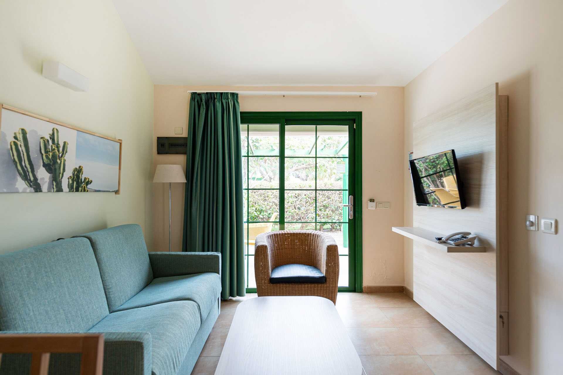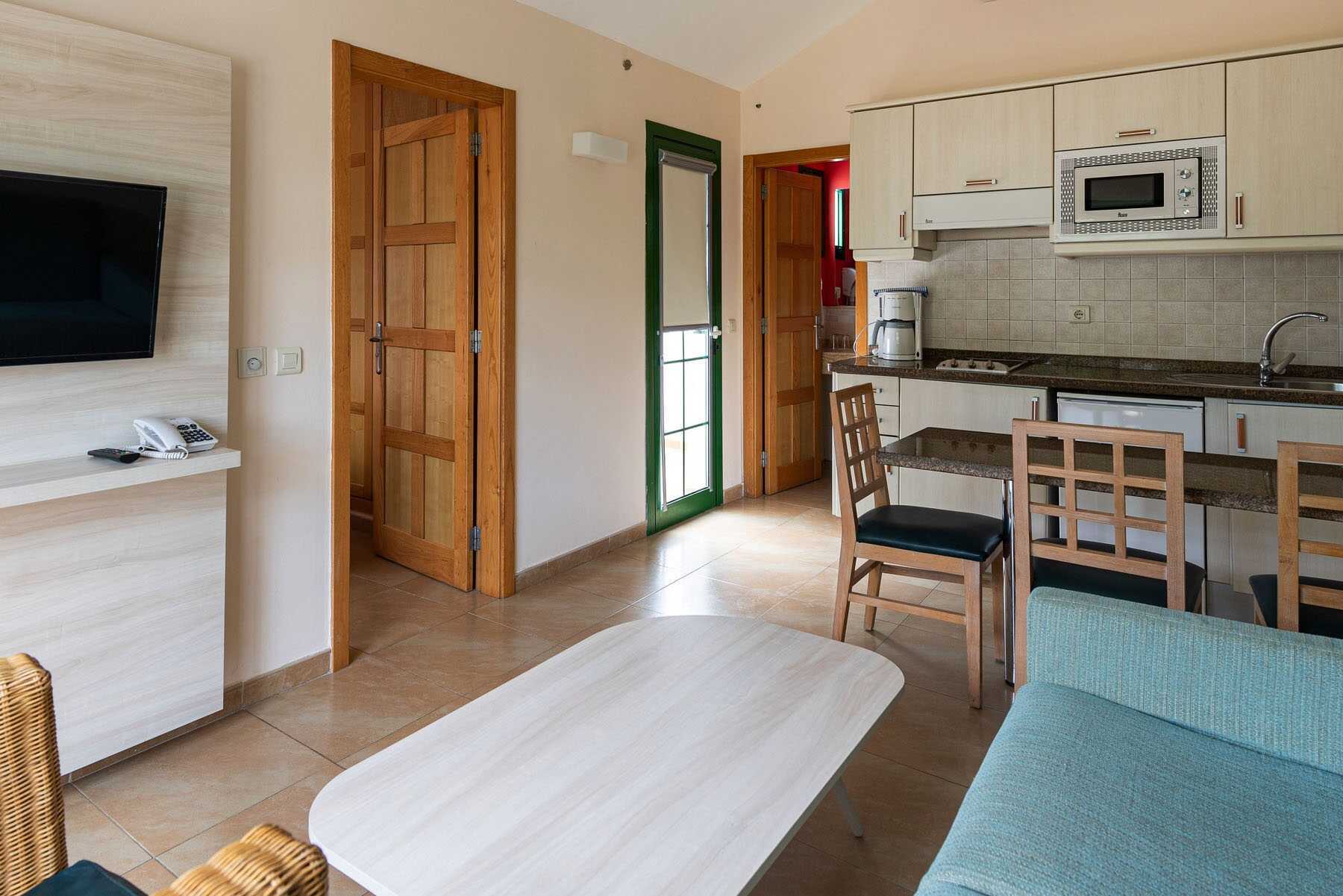 Superior-kaksio, jossa on maaterassi ja aurinkotuolit. Yksi makuuhuone, jossa kaksi erillistä sänkyä, ja yhdistetty olohuone/ minikeittiö, johon on mahdollista saada lisävuode vuodesohvaan. Maksuton wifi, ilmastointi ja tallelokero. Kattotuuletin. Minikeittiö, jossa jääkaappi, keittolevyt, mikro, kahvinkeitin, vedenkeitin, leivänpaahdin ja yksinkertainen keittiövarustus. TV hiustenkuivaajalla. Suihku ja wc. Siivous 5 krt/viikko.