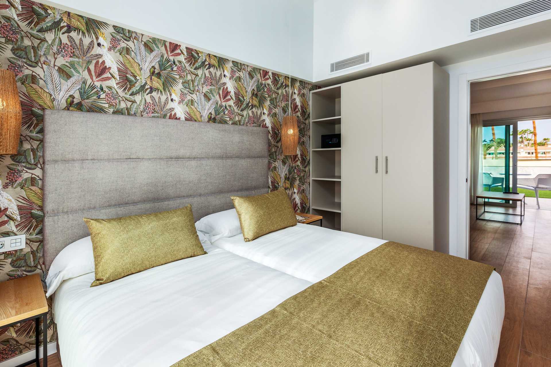 Raikkaita sviittejä, joissa parivuode tai kaksi erillistä vuodetta. Olohuoneessa lisävuodemahdollisuus vuodesohvasta. Tv satelliittikanavilla. Minibaari (lisämaksusta) ja Nespresso-kahvinkeitin. Maksuton ilmastointi ja wifi. Tallelokero lisämaksusta. Hiustenkuivain. Sadevesisuihku ja wc. Tilava maaterassi (14 neliömetriä), jossa tuolit ja pöytä allasnäkymällä. Siivous 7 krt/viikko. Huomioithan, että alle 2-vuotiaat lasketaan lisävuoteella majoittuvaksi henkilöksi.