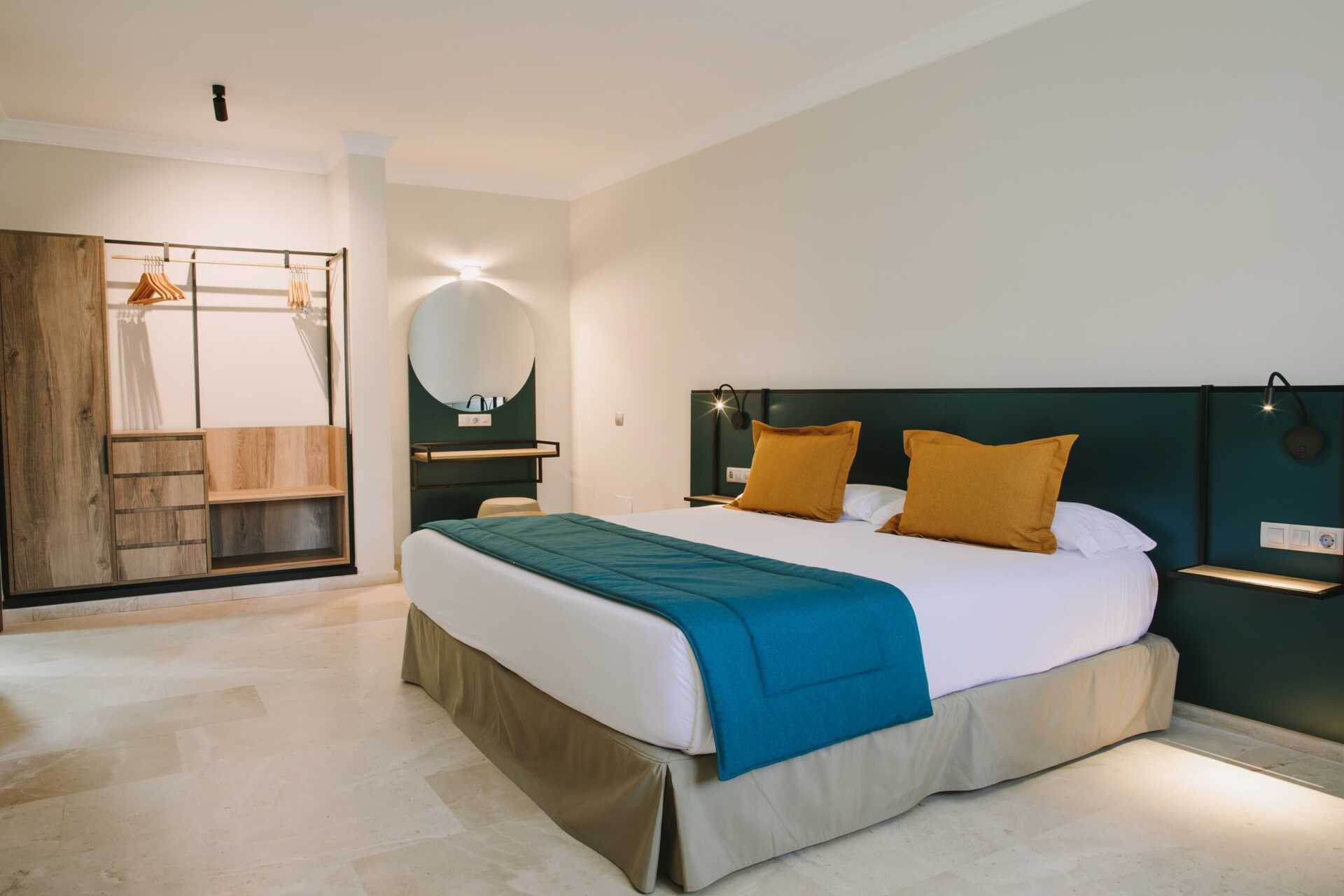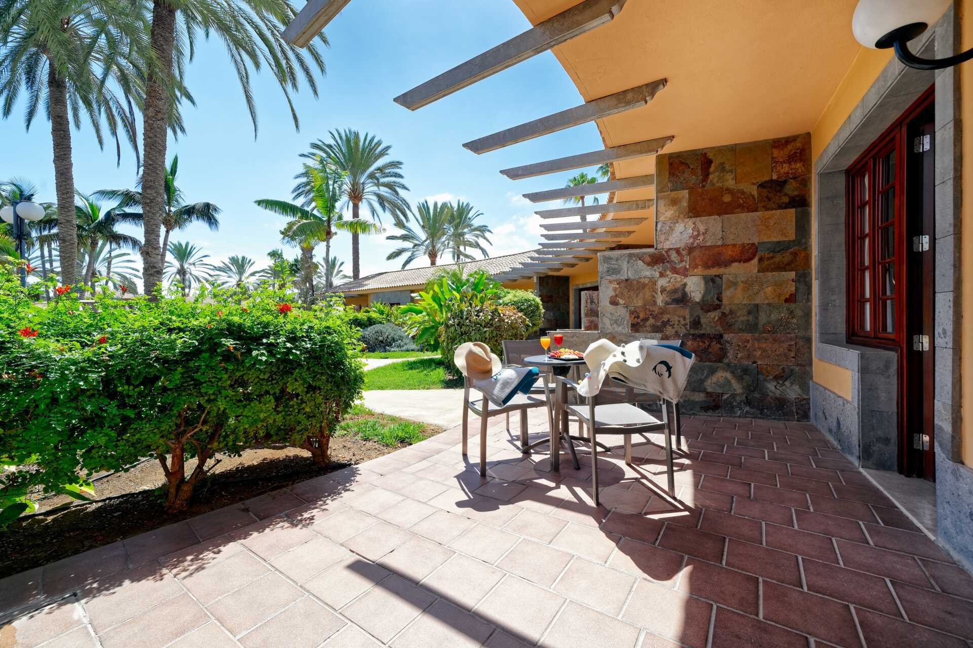 Kahden huoneen sviitti maaterassilla. Sviitissä on kaksi makuuhuonetta ja olohuone. Kaksi erillistä sänkyä molemmissa makuuhuoneissa. Lisävuodemahdollisuus vuodesohvasta. Maksuton wifi ja ilmastointi. Tallelokero lisämaksulla. Minibaari lisämaksulla. Tv kansainvälisillä kanavilla. Hiustenkuivain. Kaksi kylpyhuonetta, joissa kylpyamme ja wc. Siivous 7 krt/viikko.