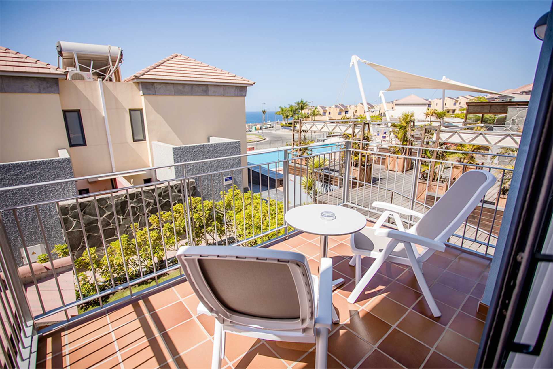 Superior-kalmio, jossa on parveke tai terassi. Kaksikerroksinen asunto ja koostuu alakerrassa sijaitsevasta kaksiosta, jossa on terassi ja yläkerran kahden hengen huoneesta, jossa on parveke. Terassilla on sohva, lepotuoleja sekä pöytä ja tuolit. Sisääntulokerroksessa on makuuhuone, jossa kaksi erillistä sänkyä, kylpyhuone hiustenkuivaajalla, suihku ja wc sekä yhdistetty olohuone, jossa on minikeittiö, jossa on mahdollisuus saada lisävuode vuodesohvaan. Yläkerrassa on makuuhuone, jossa kaksi erillistä vuodetta, kylpyhuone hiustenkuivaajalla, kylpyamme, erillinen suihku ja wc. Asunnossa on tasoeroja kahdella askelmalla ovelle, joka johtaa yläkertaan. Ylimääräiset tyynyt ja allaspyyhkeet sekä kuohuviini ja pähkinät ovat huoneistossa saavuttaessa. Minikeittiö, jossa keittolevyt, vedenkeitin, kahvinkeitin, leivänpaahdin, jääkaappi ja yksinkertainen keittiövarustus. Maksuton wifi. Ilmastointi on makuuhuoneissa ja sisältyy hintaan - kaukosäädin talletusta vastaan. Tallelokero lisämaksusta. TV kansainvälisillä kanavilla - kaukosäädin talletusta vastaan. Siivous 5 krt/viikko.