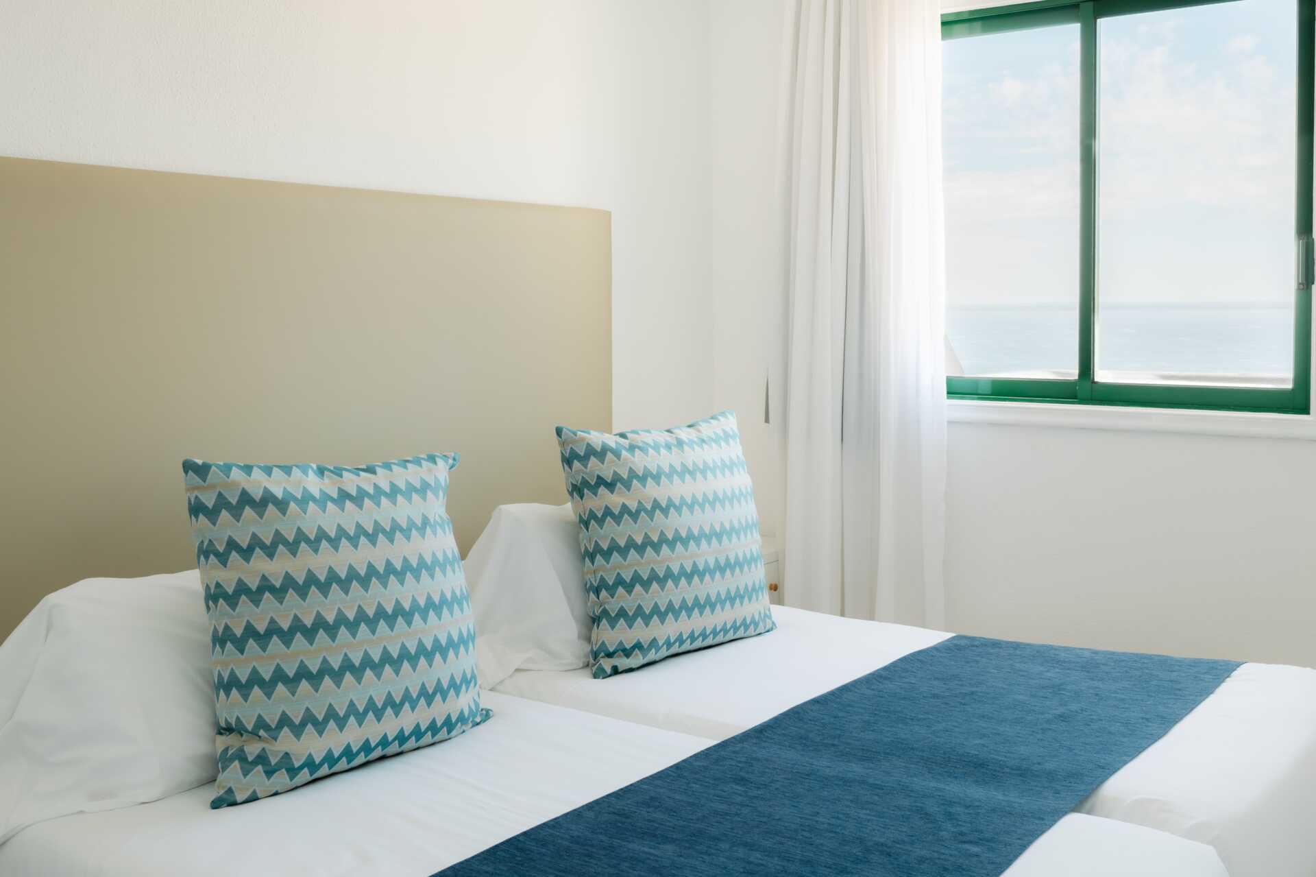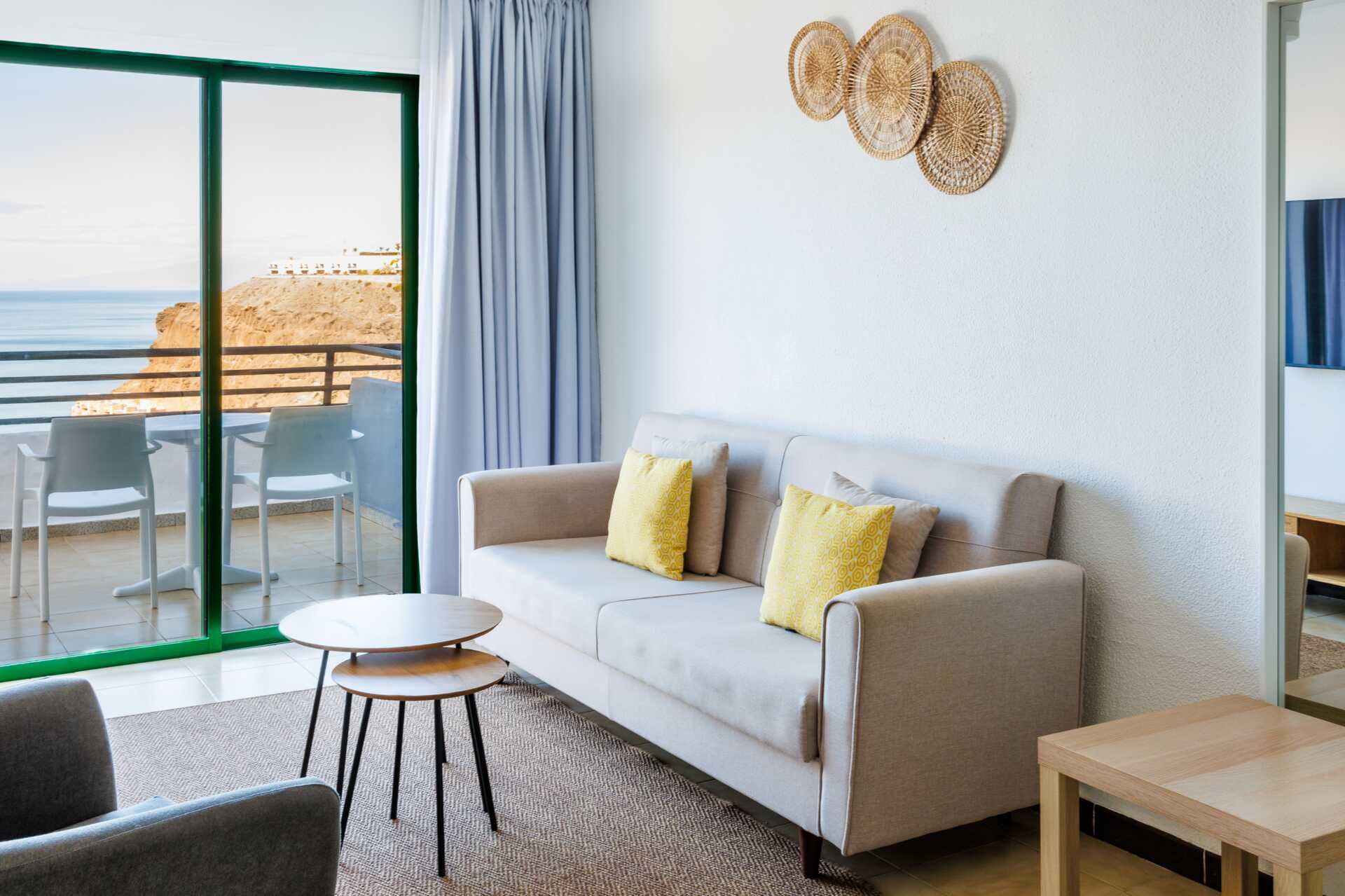 Juniorsviitti parvekkeella ja merinäköalalla. Juniorsviitit koostuvat makuuhuoneesta ja olohuoneesta. Kaksi yhden hengen sänkyä. Lisävuodemahdollisuus vuodesohvasta. Maksuton wifi. Tallelokero lisämaksusta. Kattotuuletin. Jääkaappi. Vedenkeitin, kahvia ja teetä. Tv kansainvälisillä kanavilla. Hiustenkuivain. Kylpyhuoneessa suihku ja wc. Siivous 5 krt/viikko.