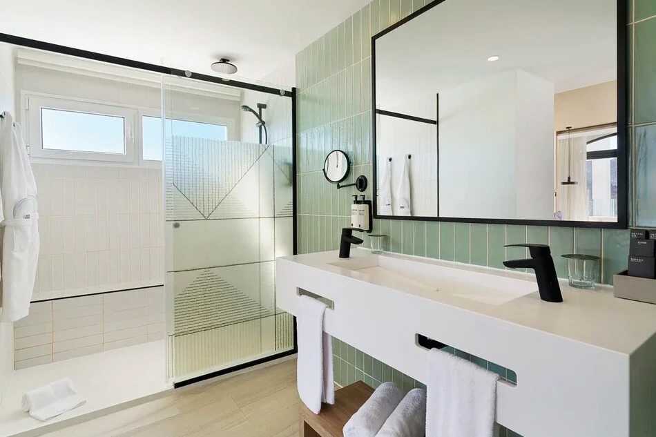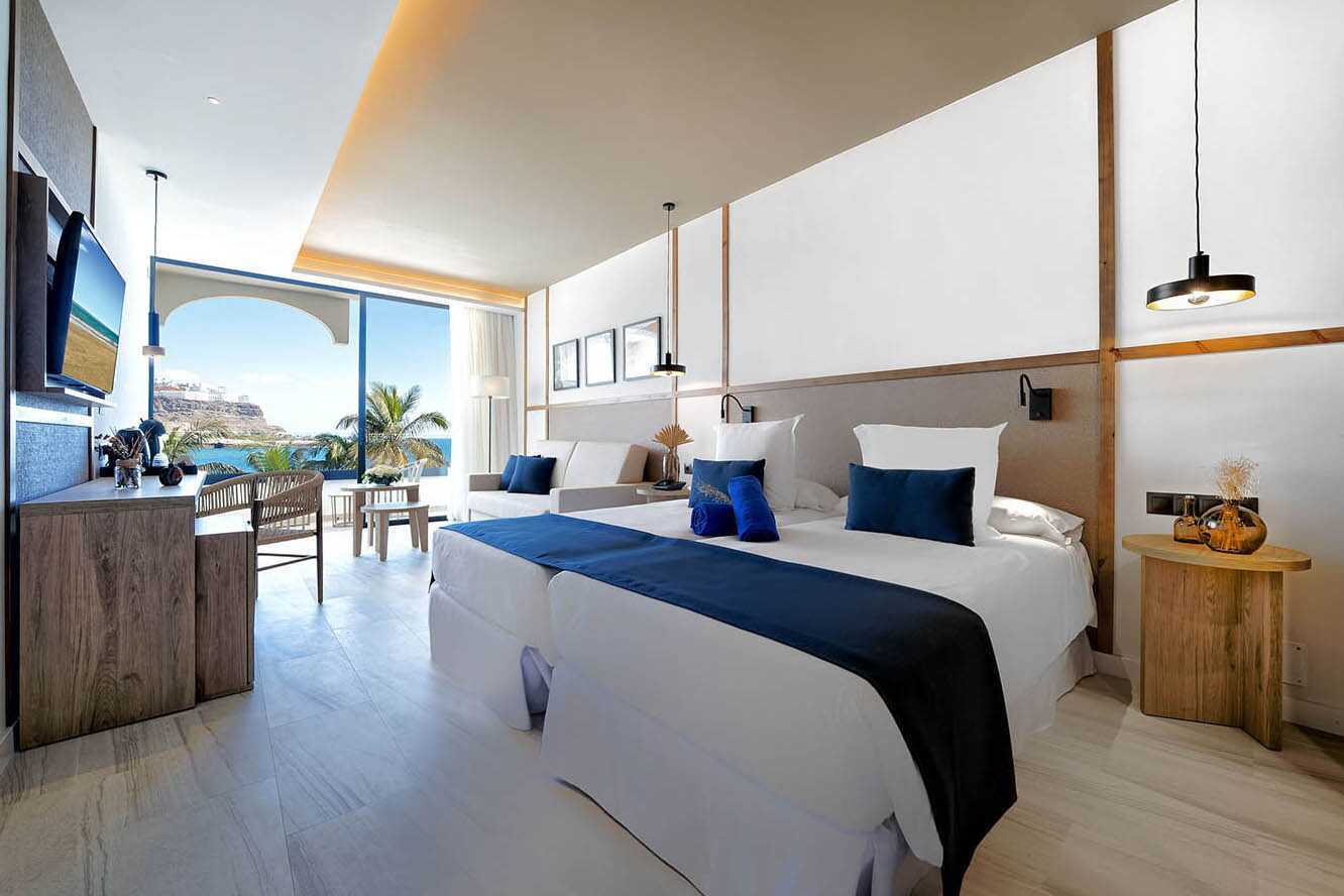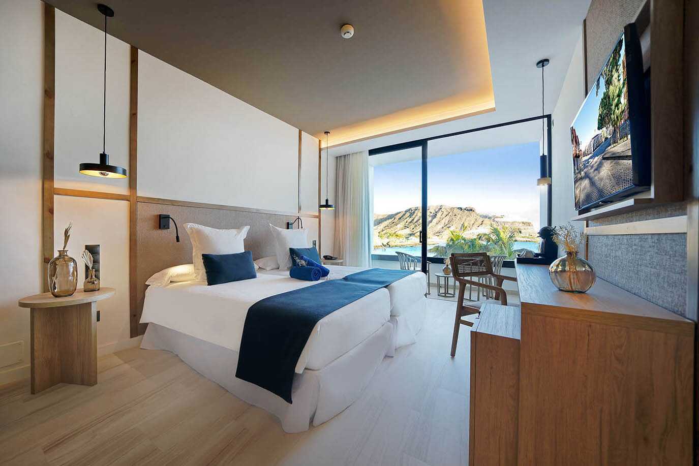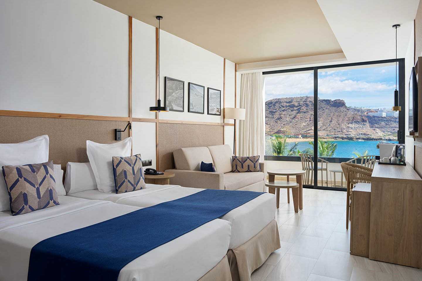 Juniorsviitti Superior tilavalla parvekkeella tai terassilla ja merinäköalalla Juniorsviitti koostuu makuuhuoneesta ja olohuoneesta avoimella pohjaratkaisulla. Kaksi yhden hengen vuodetta. Wifi, ilmastointi ja tallelokero sisältyvät hintaan. Pieni jääkaappi. Nespresso-keitin, kapselit lisämaksusta. Vedenkeitin, kahvia ja teetä. Jokaisessa huoneessa on televisio kansainvälisillä kanavilla. Hiustenkuivain. Suihku ja wc. Siivous 7 krt/viikko.