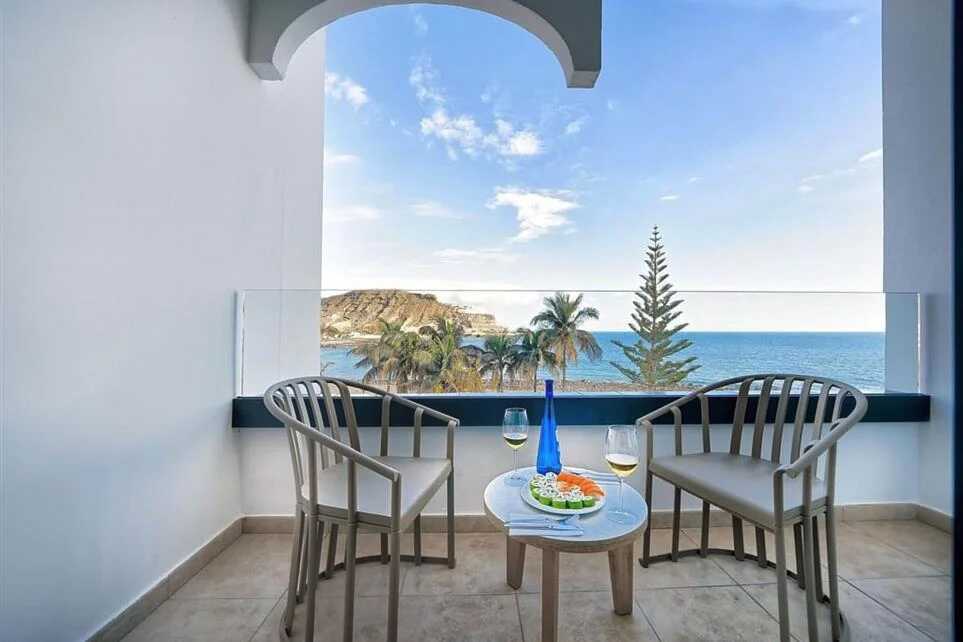 Deluxe-juniorsviitti parvekkeella ja merinäköalalla. Kaksi yhden hengen vuodetta. Lisävuodemahdollisuus vuodesohvasta. Wifi, ilmastointi ja tallelokero sisältyvät hintaan. Pieni jääkaappi. Nespresso-keitin, kapselit lisämaksulla. Vedenkeitin, kahvia ja teetä. Jokaisessa huoneessa on televisio kansainvälisillä kanavilla. Hiustenkuivain. Suihku ja wc. Siivous 7 krt/viikko.
