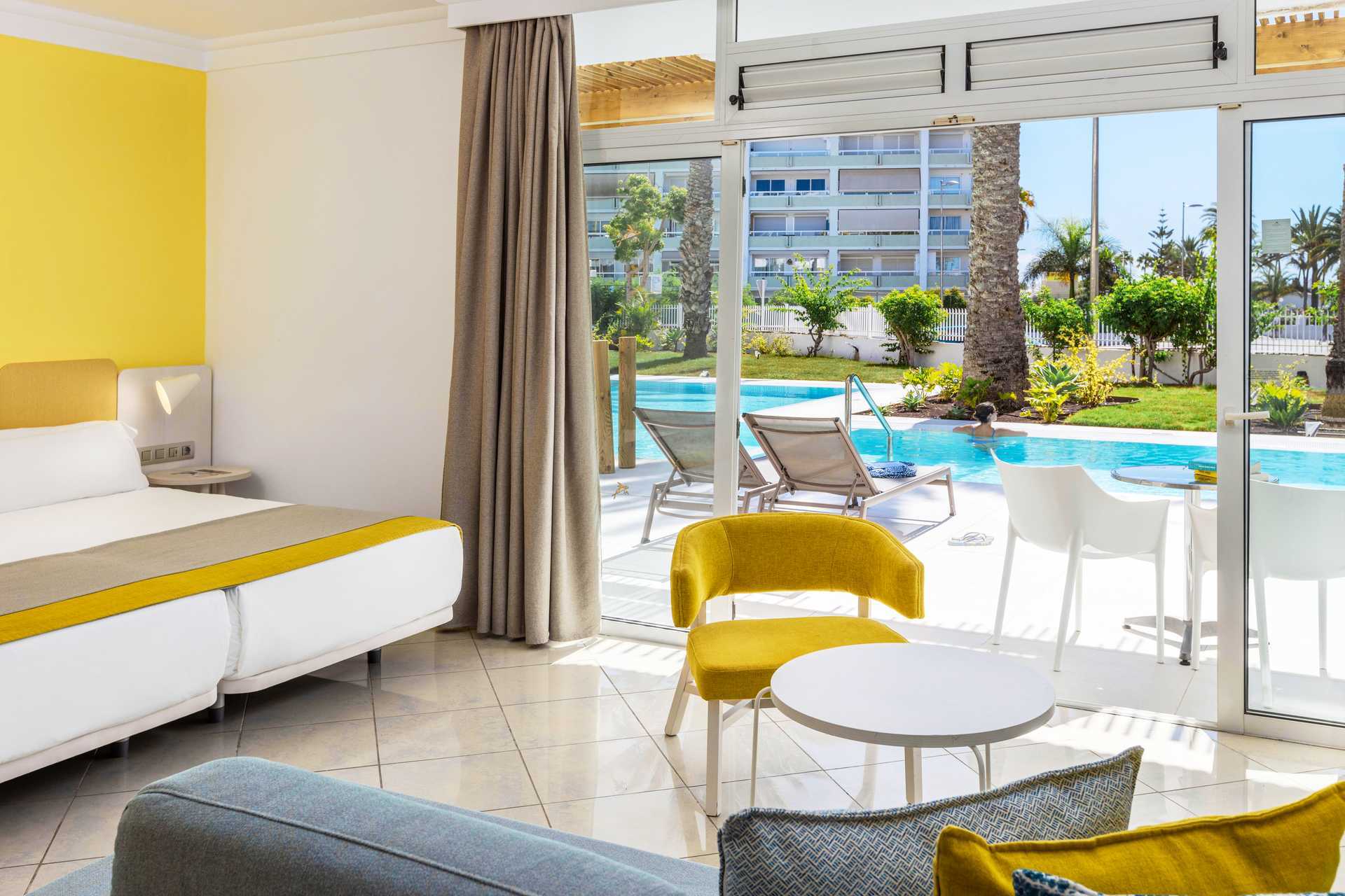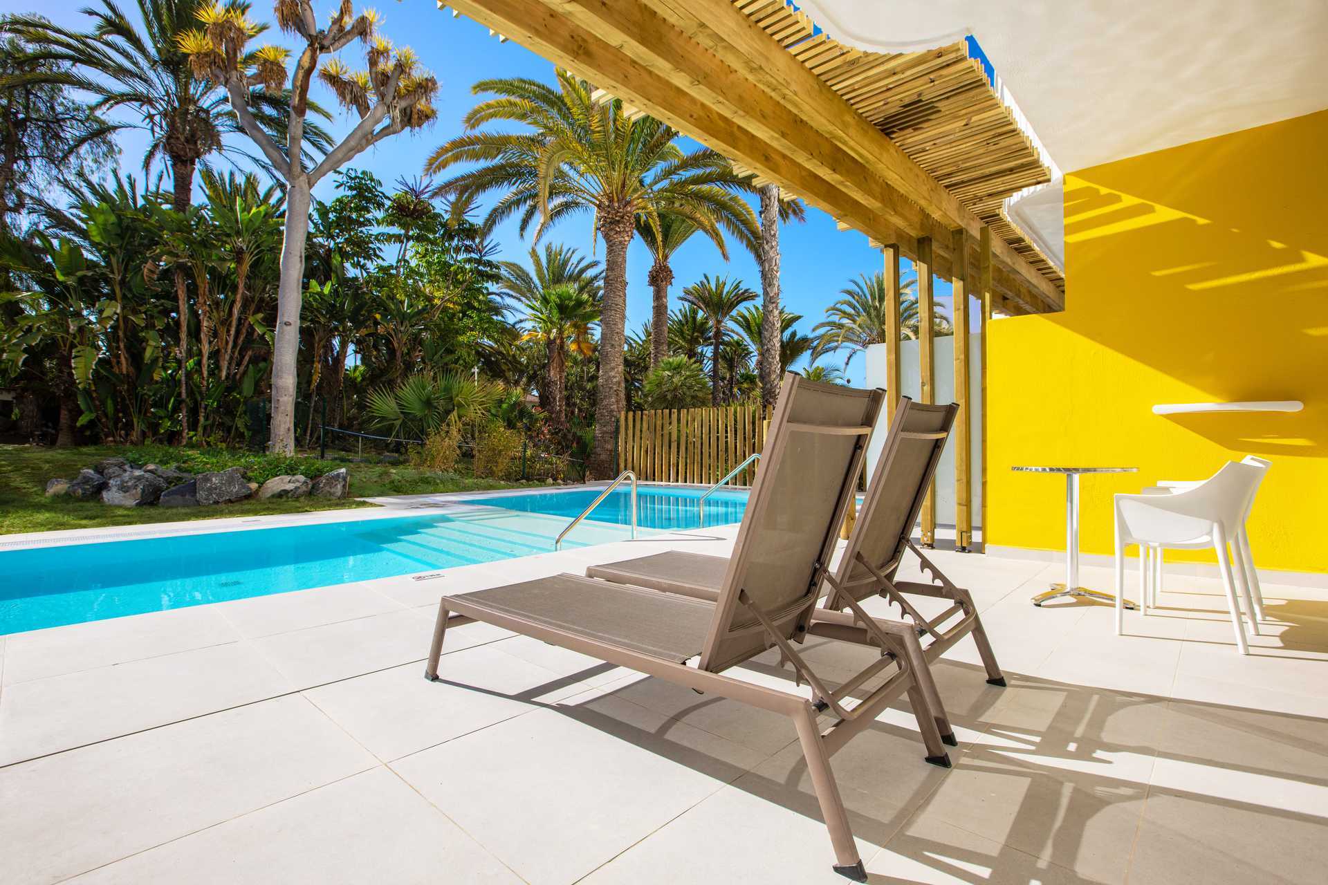 Sviitti maaterassilla ja omalla uima-altaalla. Ikäraja hotellissa yöpymiseen on 18 vuotta. Terassilla on pöytiä ja tuoleja, aurinkotuoleja. Tikkaat tai portaat alas altaaseen. Kaksi yhden hengen sänkyä. Lisävuodemahdollisuus vuodesohvasta. Kesällä ja tarvittaessa talvella myös keskusohjattu ilmastointi. Maksuton wifi. Tallelokero lisämaksusta. Minibaari lisämaksulla. Vedenkeitin, kahvia ja teetä. Tv kansainvälisillä kanavilla. Hiustenkuivain. Kylpyhuoneessa suihku ja wc. Siivous 7 krt/viikko.