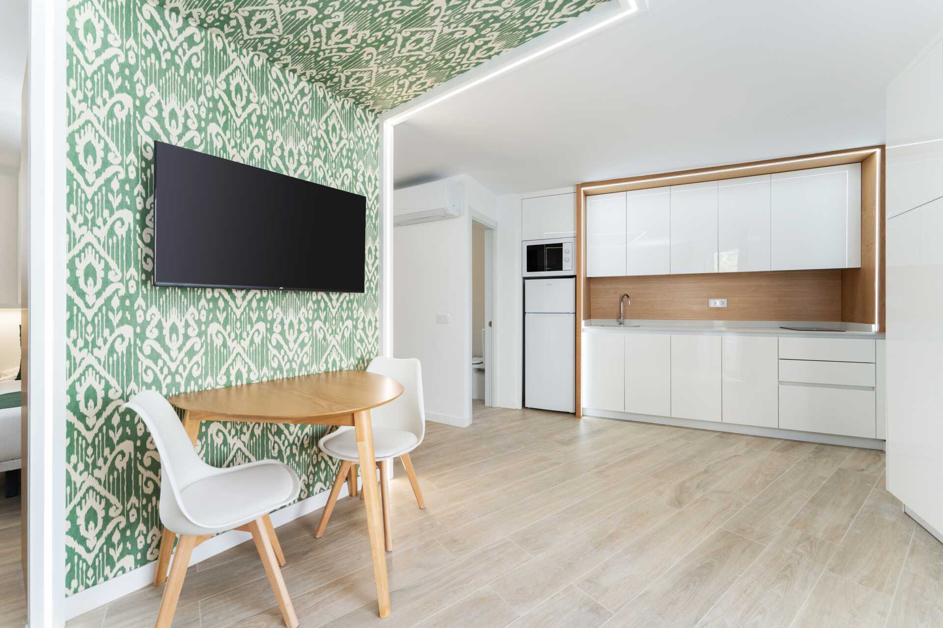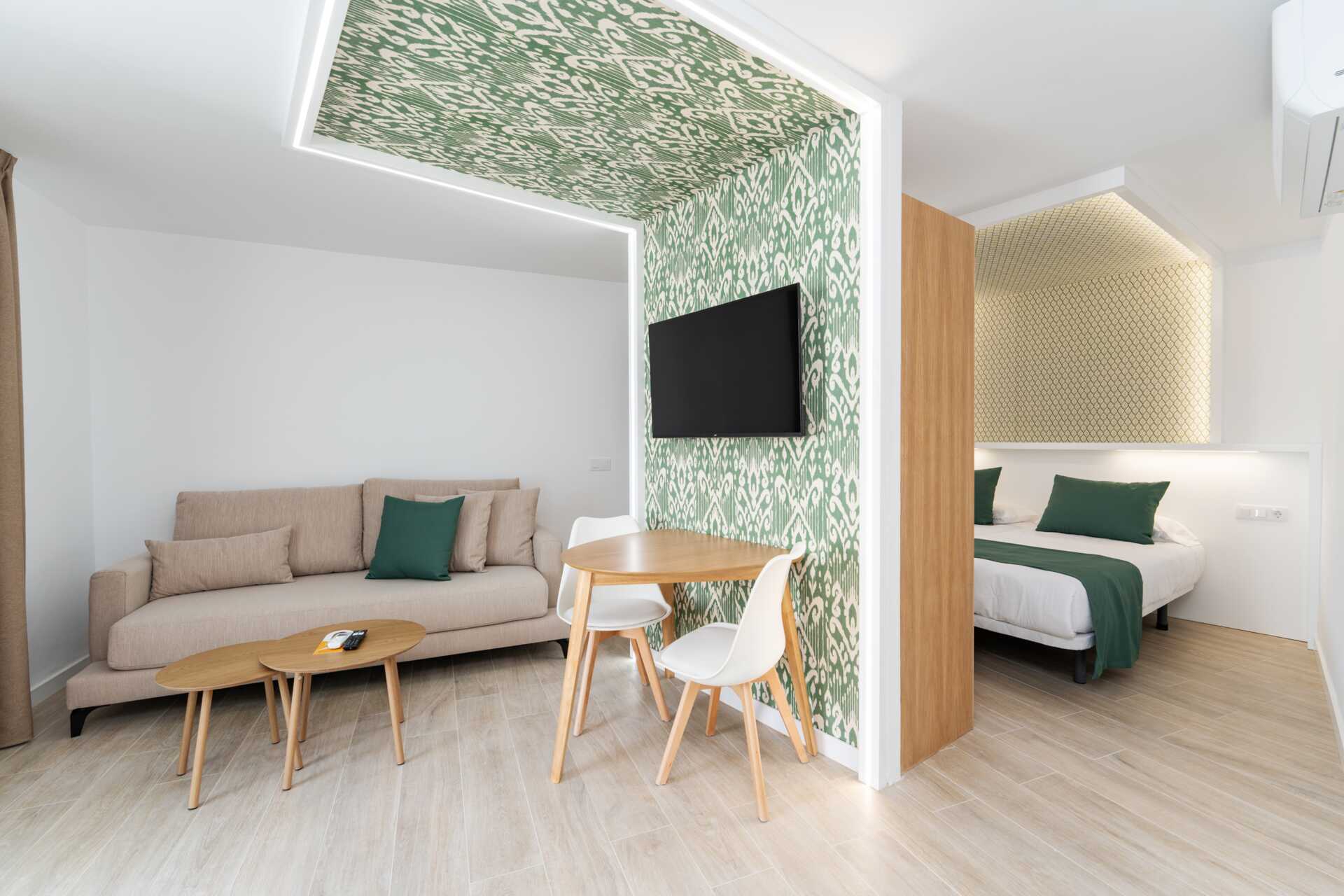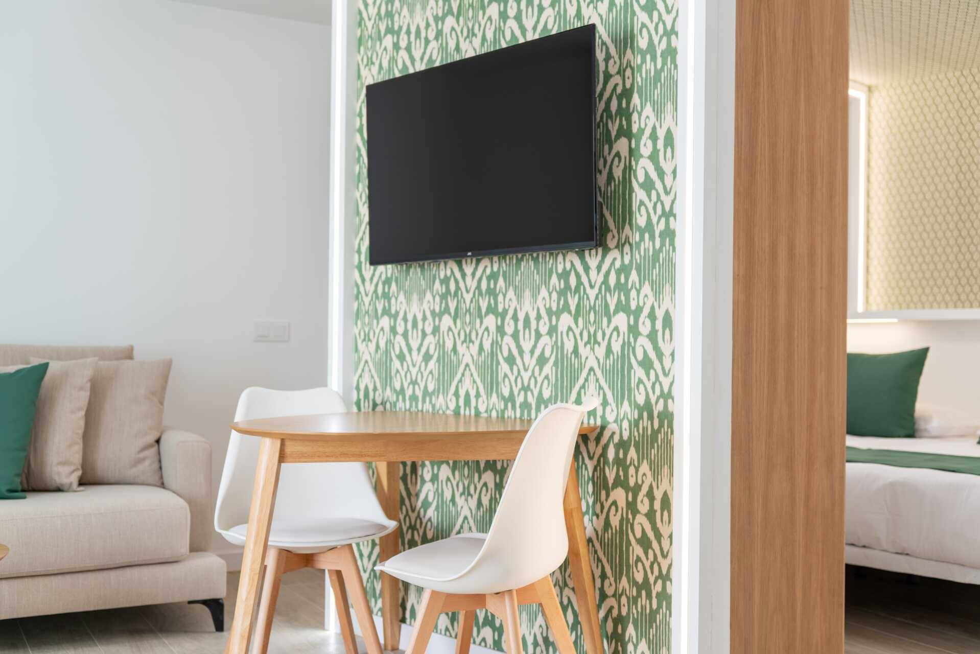 Yksiöitä, joissa on parveke tai terassi, osassa allasnäkymä. Makuuhuone sekä yhdistetty olohuone ja minikeittiö. Kaksi erillistä sänkyä ja sohva. Minikeittiö, jossa keittolevyt, jääkaappi, kahvinkeitin, vedenkeitin, mikroaaltouuni ja peruskeittiövälineet. Maksuton wifi. Tallelokero lisämaksusta. Tv. Hiustenkuivain. Kylpyhuoneessa suihku ja wc. Siivous 4 krt/viikko.