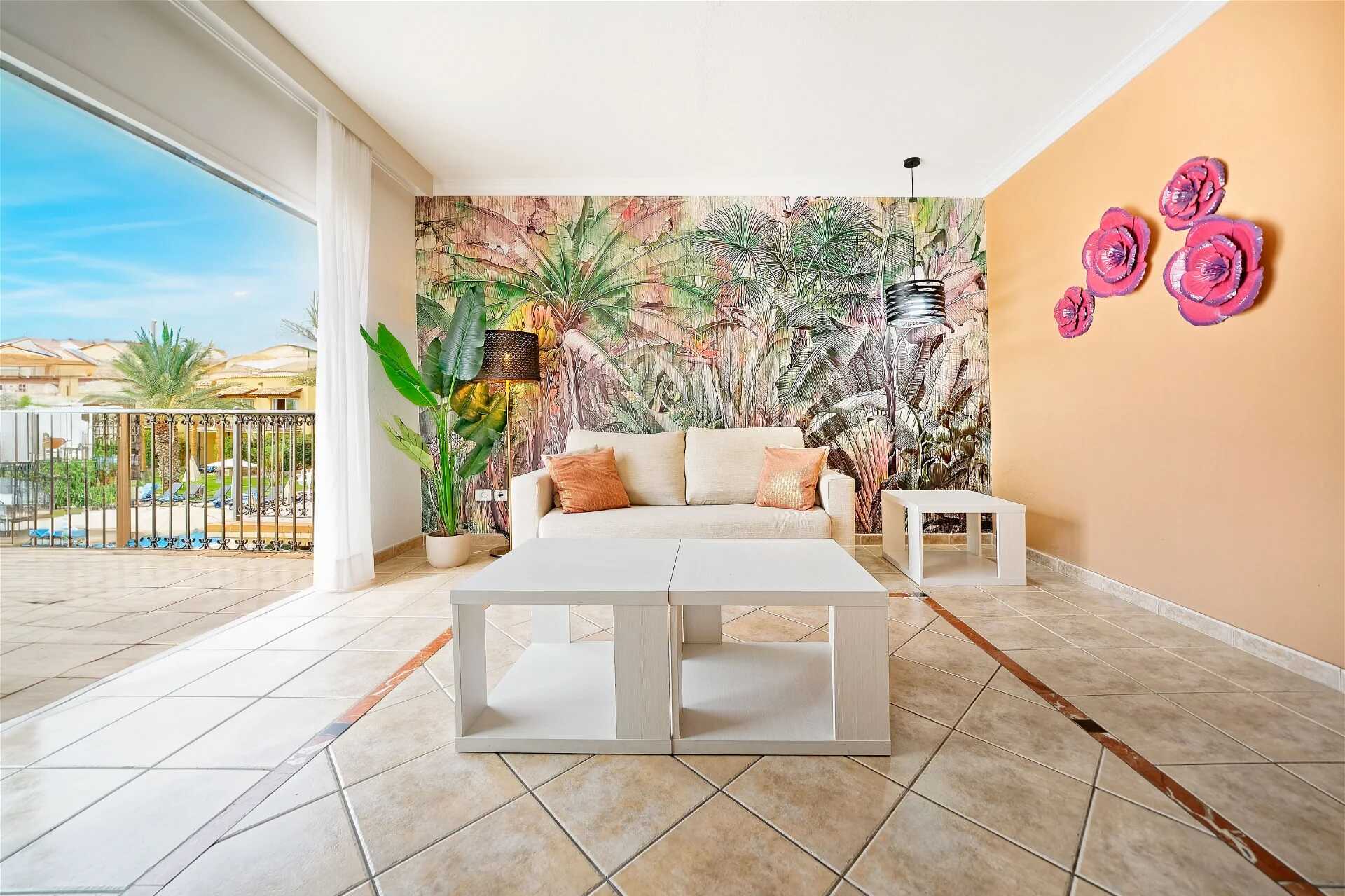 Deluxe-huone maaterasiila ja näkymällä golfkentällä. Deluxe-huoneet remontoitiin marraskuussa 2023. Terassilla on kaksi tuolia ja terassin alapuolella olevalla nurmikolla kaksi aurinkotuolia huonetta kohden. Parivuode. Maksuton wifi ja ilmastointi. Tallelokero lisämaksusta. Jääkaappi. Vedenkeitin ja kahvinkeitin (kaksi kapselia sisältyvät hintaan saavuttaessa). Tv kansainvälisillä kanavilla. Kylpytakit saatavilla panttia vastaan. Hiustenkuivain. Kylpyhuoneessa suihku ja wc. Siivous 5 krt/viikko. Huoneeseen johtaa portaikko tai luiska.