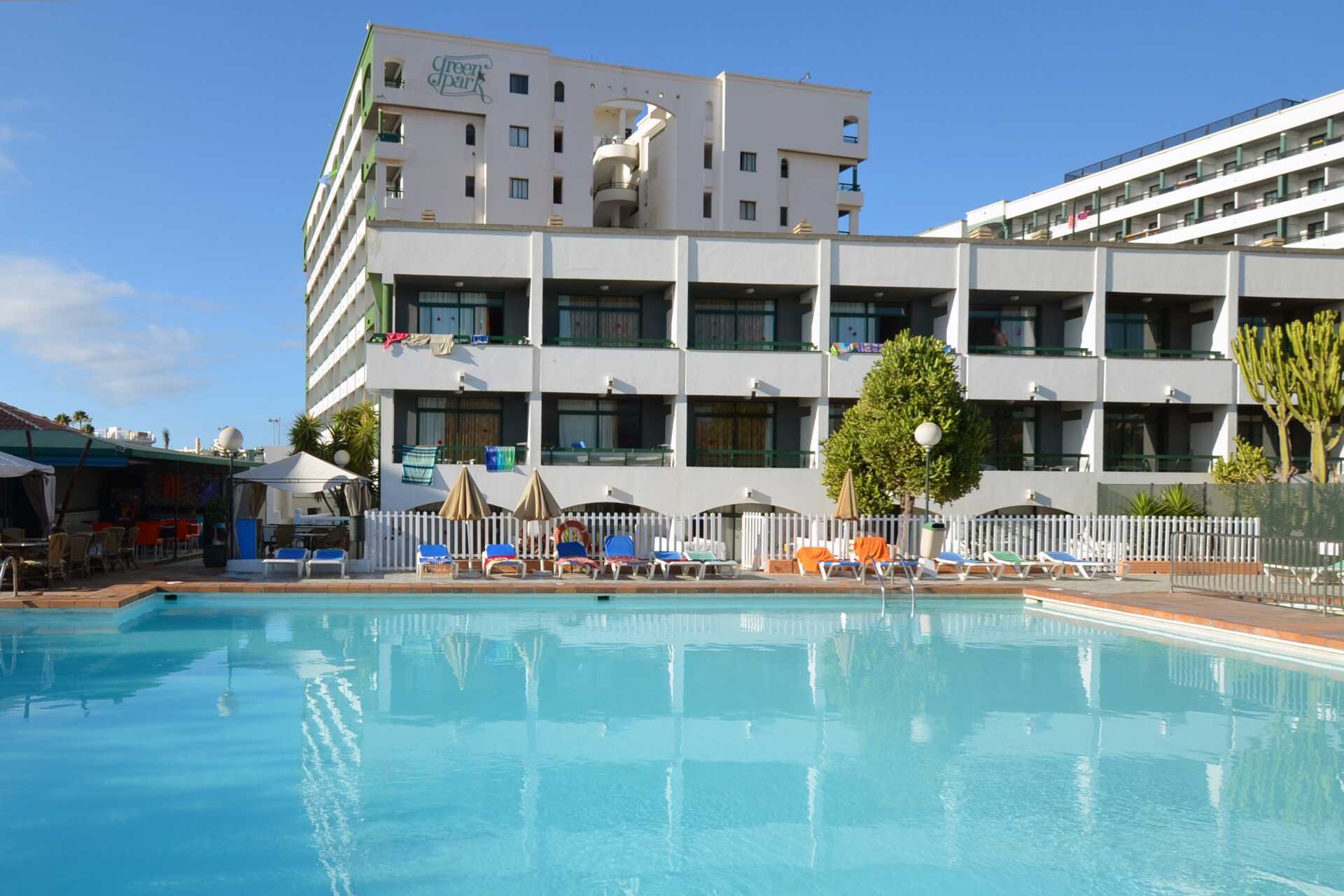 Etsitkö huoneistohotellia tilavilla huoneistoilla ja hyvällä keskeisellä paikalla Playa del Inglesissä? Silloin Green Park voisi olla etsimäsi hotelli! Huoneistossa on mahdollisuus yksinkertaiseen ruoanlaittoon, mutta keskeinen sijainti tarkoittaa, että pienet ravintolat ovat vain nurkan takana, jos haluat lomailla. Voit kävellä rannalle 15-20 minuutissa, kun haluat vaihtelua uima-altaasta.