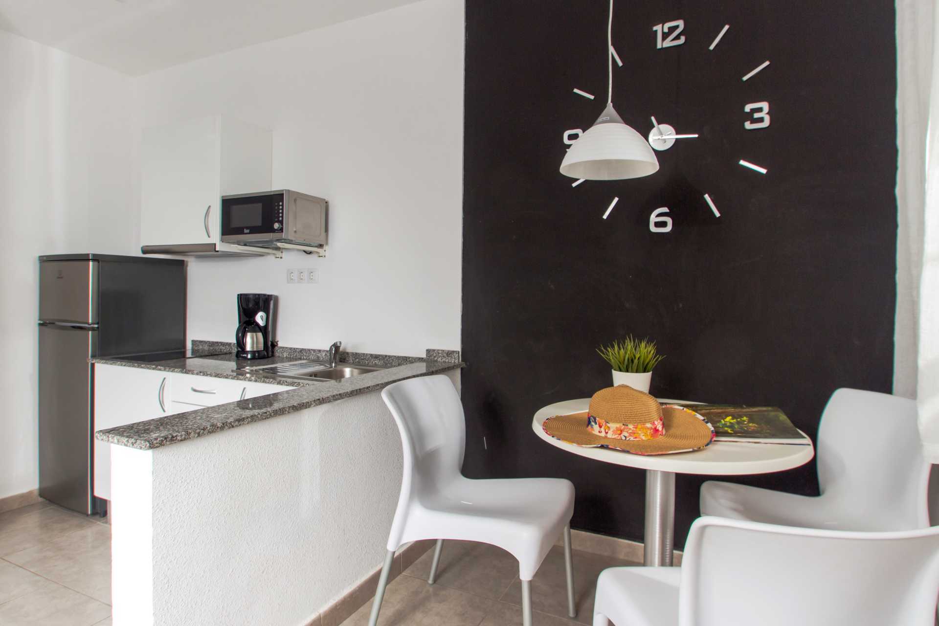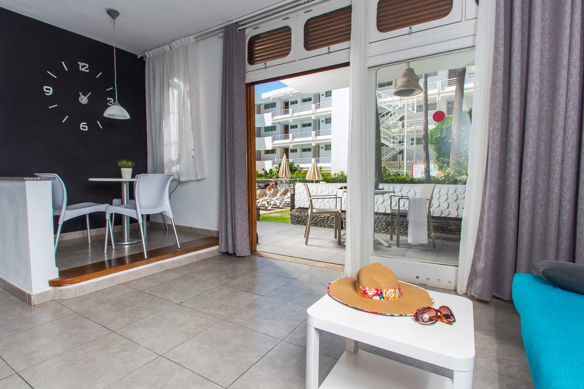 Kaksio jossa parveke tai pohjaterassi. Yksi makuuhuone sekä yhdistetty olohuone ja minikeittiö. Kaksi erillistä sänkyä. Minikeittiössä keittolevyt, jääkaappi, mikro, leivänpaahdin ja yksinkertainen keittiövarustus. Maksuton wifi. Tallelokero lisämaksusta ja panttia vastaan. Tv kansainvälisillä kanavilla. Silitysrauta. Hiustenkuivain. Kylpyhuoneessa suihku ja wc. Siivous 5 krt/viikko.