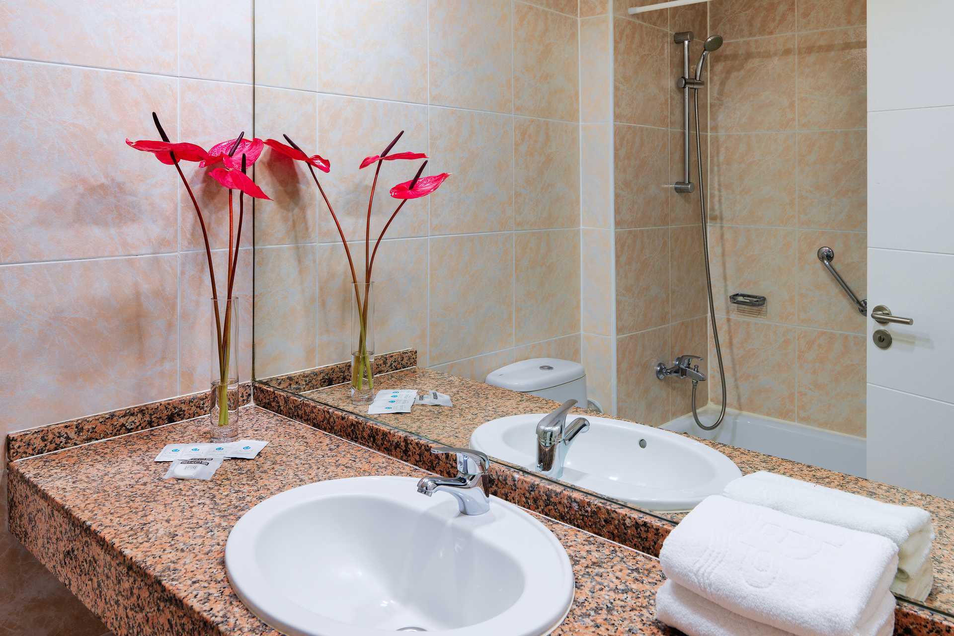 Kahden hengen huoneita parivuoteella tai kahdella erillisellä vuoteella. Parveke tai terassi, osassa merinäköala. Maksuton wifi. Ilmastointi lisämaksusta. Tv kansainvälisillä kanavilla. Hiustenkuivain lainattavissa vastaanotosta panttia vastaan. Kylpyhuone suihkulla ja wc:llä. Siivous 7 krt/viikko.