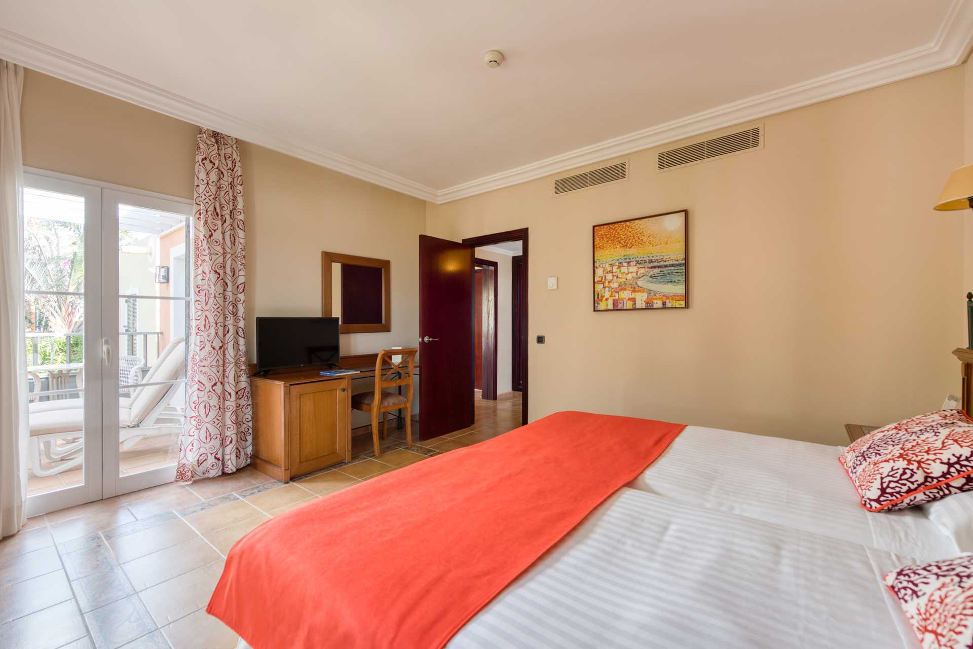 Kahden hengen huoneita, joissa on parveke tai terassi tai parveke ja näkymä altaalle. Kaksi yhden hengen vuodetta. Lisävuodemahdollisuus vuodesohvasta tai kokoontaitettavasta sängystä. Maksuton wifi ja ilmastointi. Tallelokero lisämaksusta. Jääkaappi. Minibaari lisämaksusta. Vedenkeitin, kahvia ja teetä. Tv kansainvälisillä kanavilla. Hiustenkuivain. Kylpyamme ja wc. Siivous 7 krt/viikko.