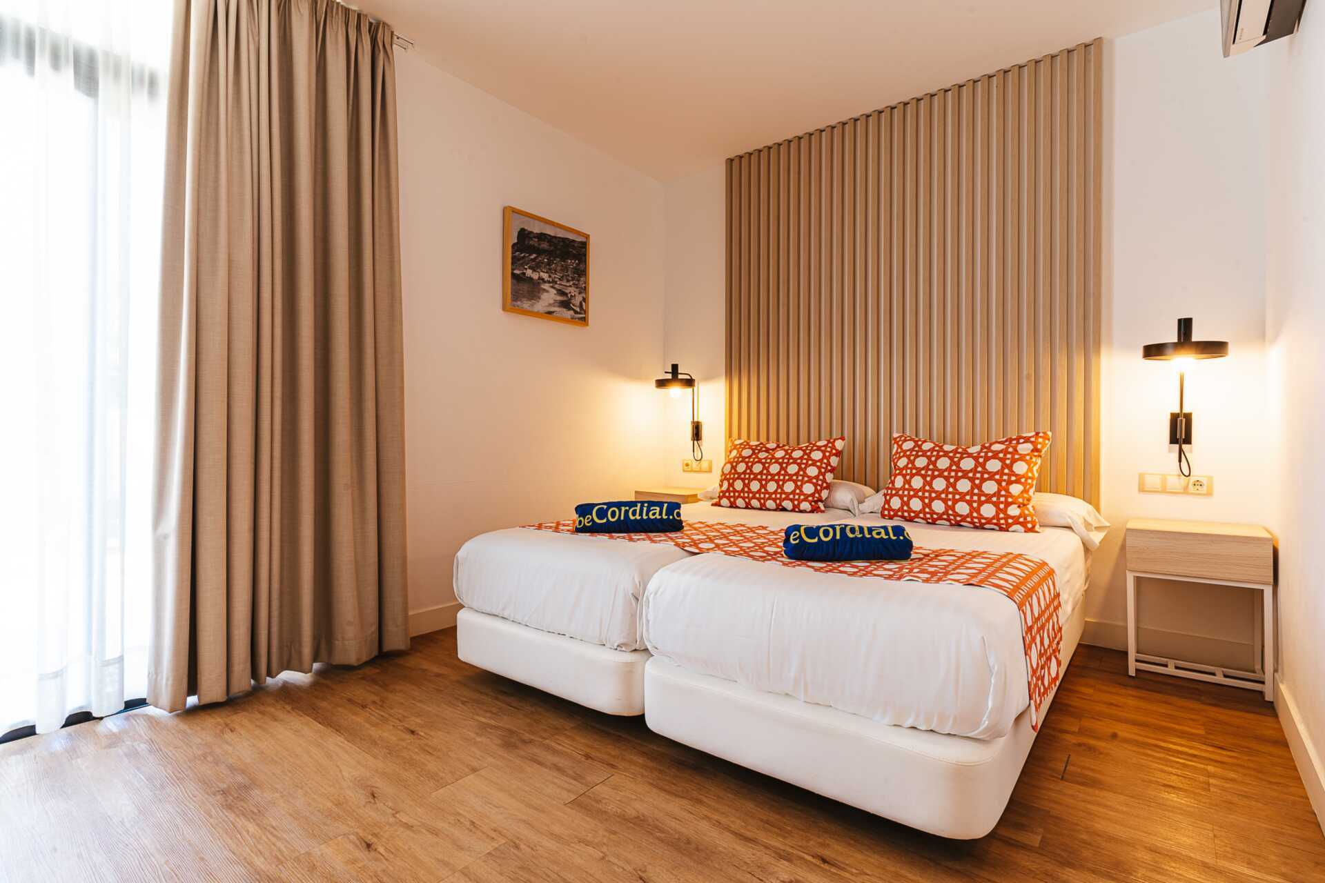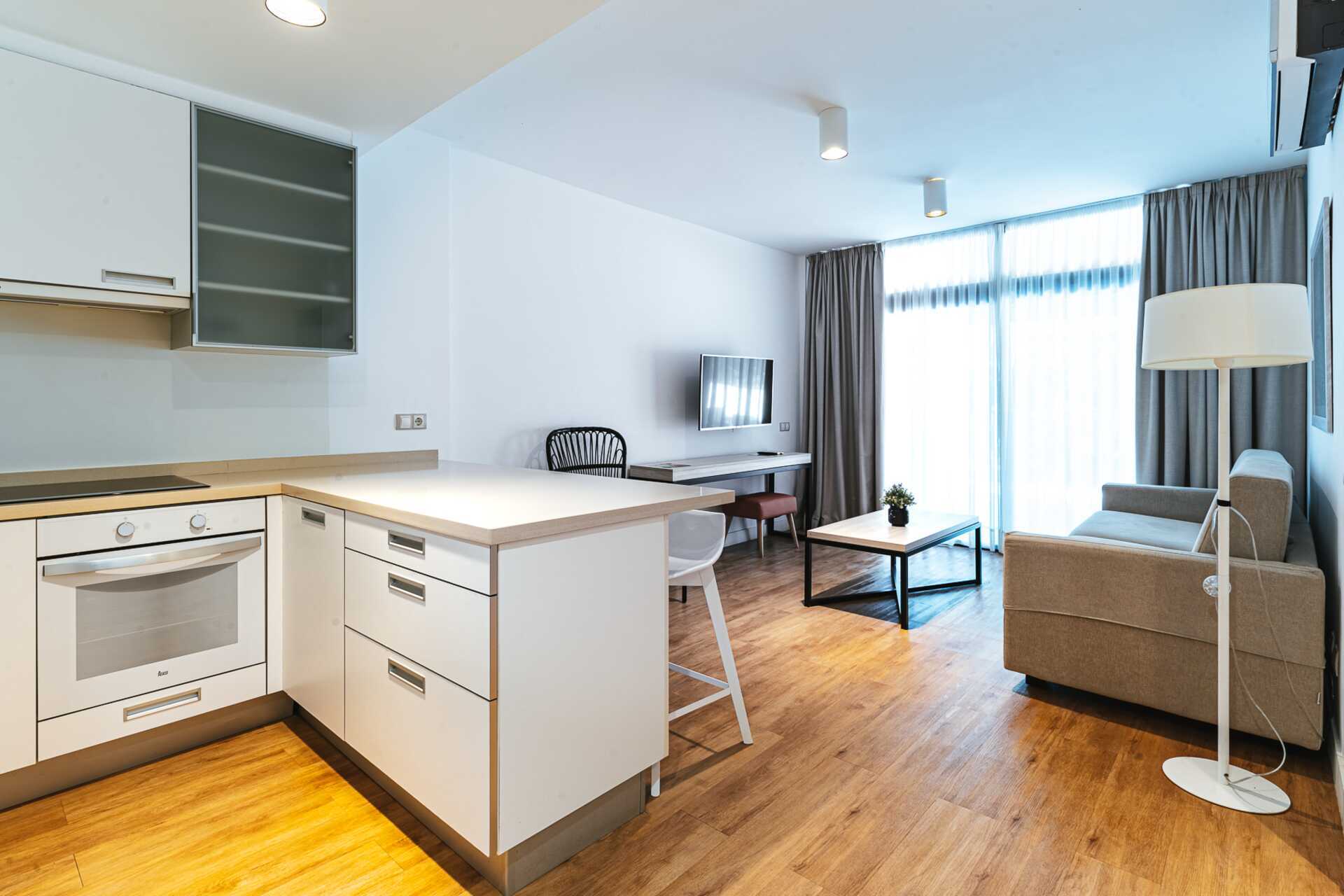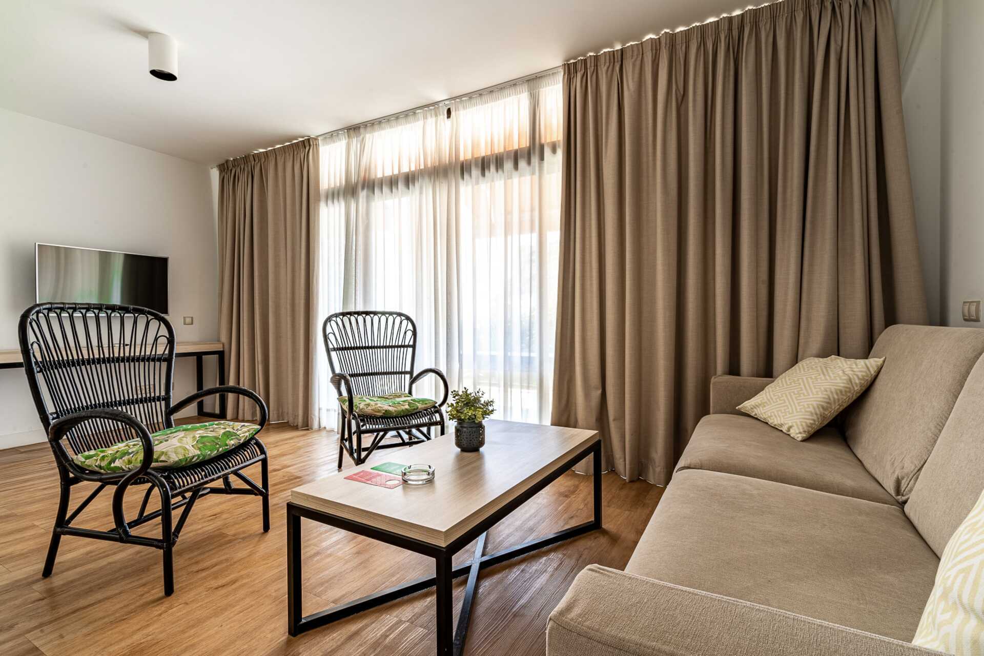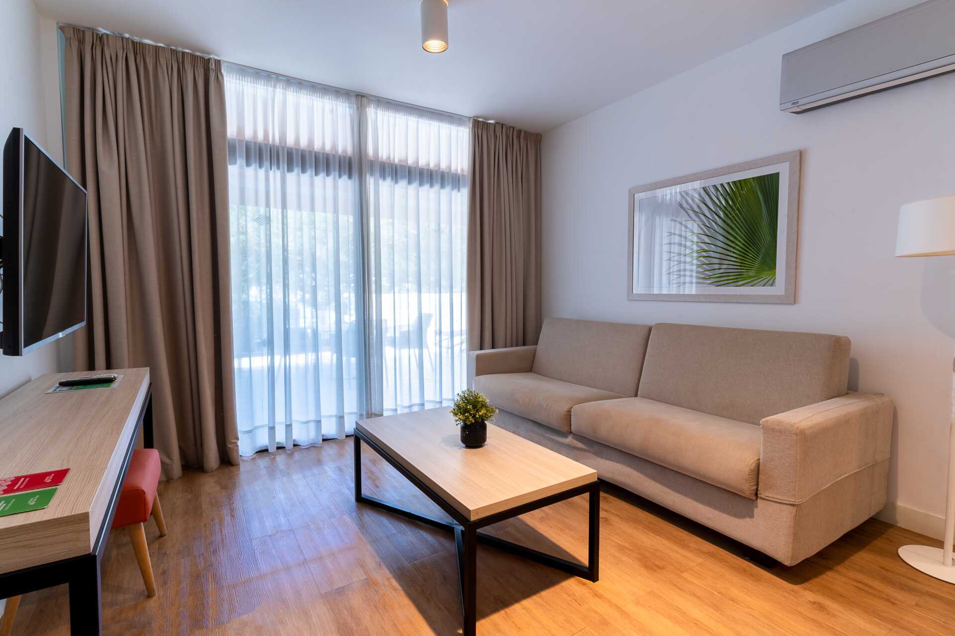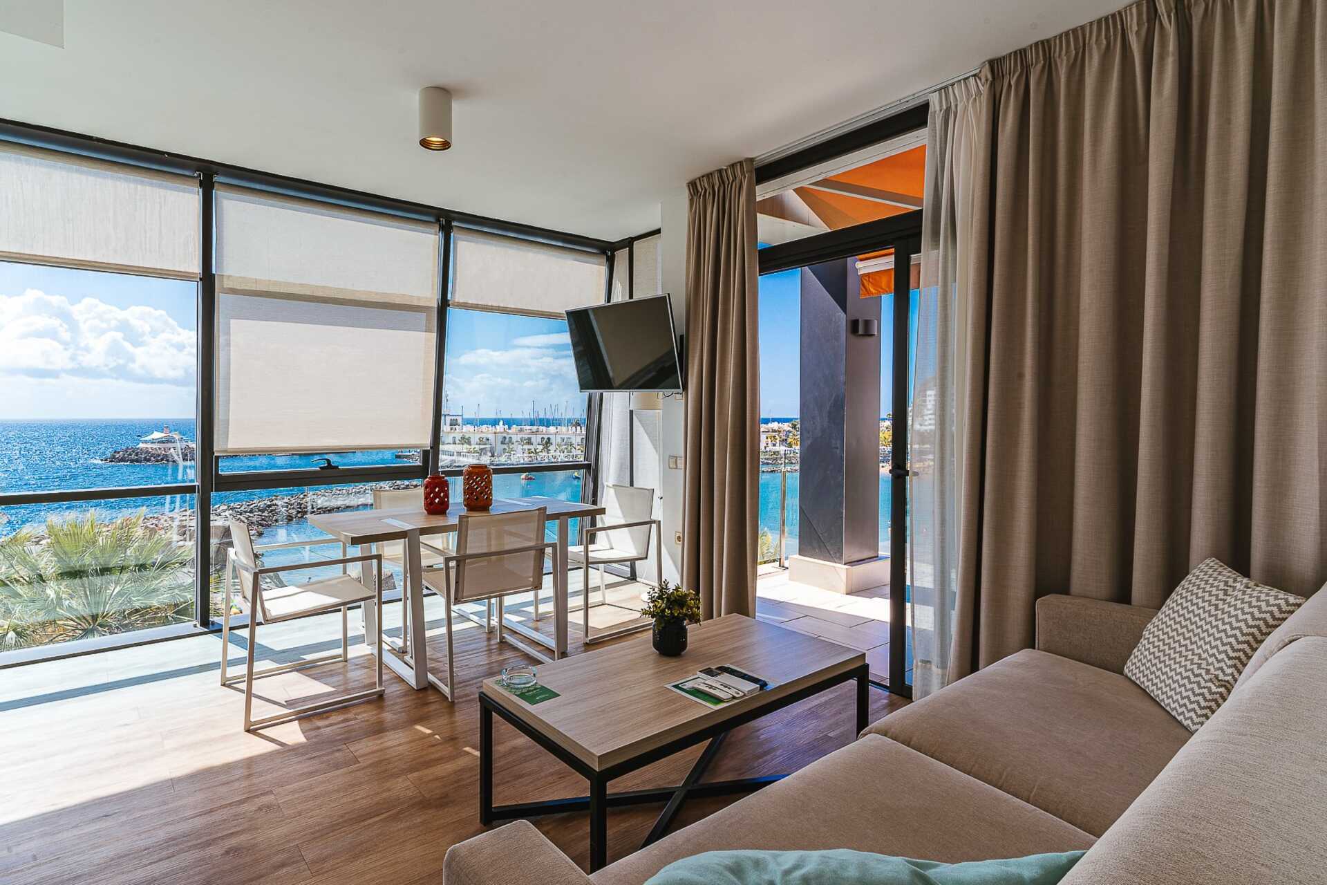 Kaksio parvekkeella. Joistakin parvekkeista on merinäköala tai rajoitettu merinäköala. Asunnoissa on erilaisia pohjaratkaisuja. Makuuhuone sekä yhdistetty olohuone ja minikeittiö. Kaksi yhden hengen sänkyä tai yksi parivuode. Lisävuodemahdollisuus vuodesohvasta. Minikeittiö, jossa jääkaappi, pakastin, liesi, uuni, leivänpaahdin, kahvinkeitin, vedenkeitin, mikroaaltouuni, astianpesukone ja peruskeittiövälineet. Maksuton wifi, tallelokero ja ilmastointi. Jokaisessa huoneessa on televisio kansainvälisillä kanavilla. Joissakin huoneistoissa on keittiöpöytä ja tuolit, toisissa baaritiski ja korkeat tuolit. Pyykinpesukone, kuivausrumpu, silitysrauta ja -lauta. Hiustenkuivain. Kylpyhuoneessa suihku ja wc. Siivous 5 krt/viikko.