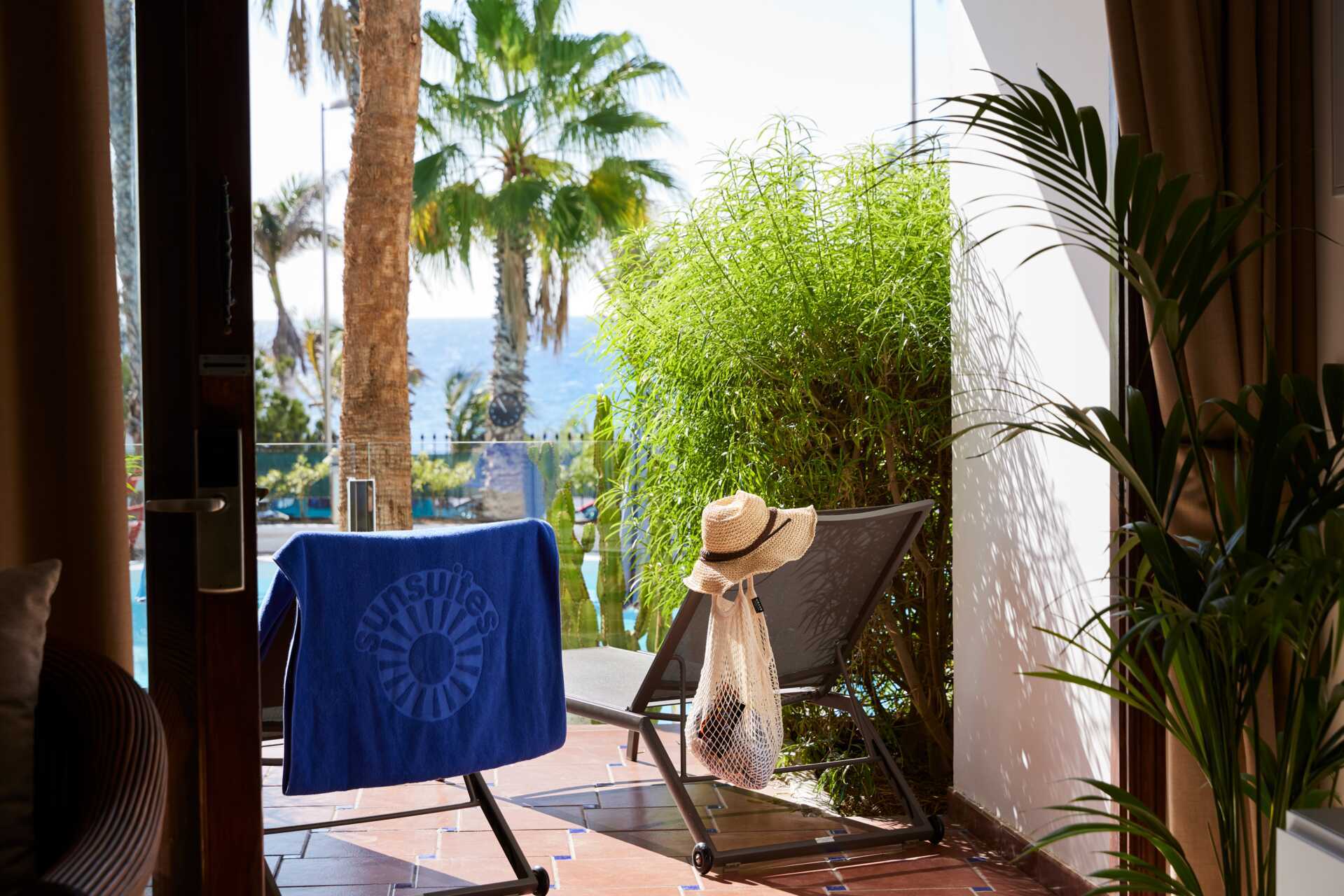 Huoneisto sijaitsi vastaanoton vieressä eikä terassilla ollut auringonpaistetta tai näkymää.