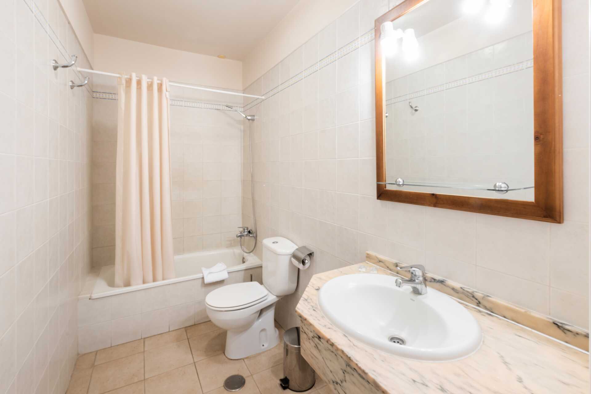 Kolmioita, joissa on ranskalainen parveke. Kaksi makuuhuonetta ja yhdistetty olohuone ja minikeitto sekä erillinen makuuhuone. Kaksi yhden hengen vuodetta kummassakin makuuhuoneessa. Mahdollisuus lisävuoteeseen vuodesohvasta. Keittolevyt, jääkaappi ja yksinkertainen keittiövarustus. Maksuton tallelokero ja wifi. Tv kansainvälisillä kanavilla. Kylpyamme/suihku ja wc. Siivous 5 krt/vk.