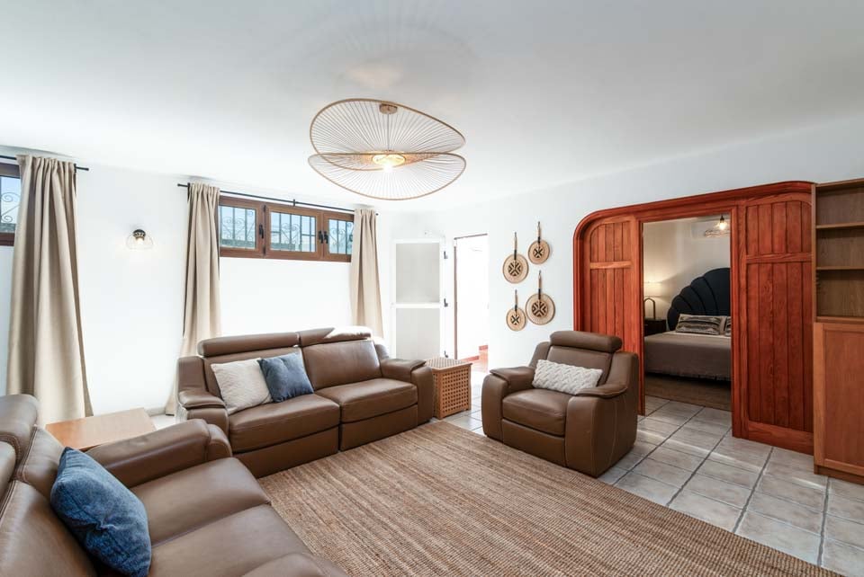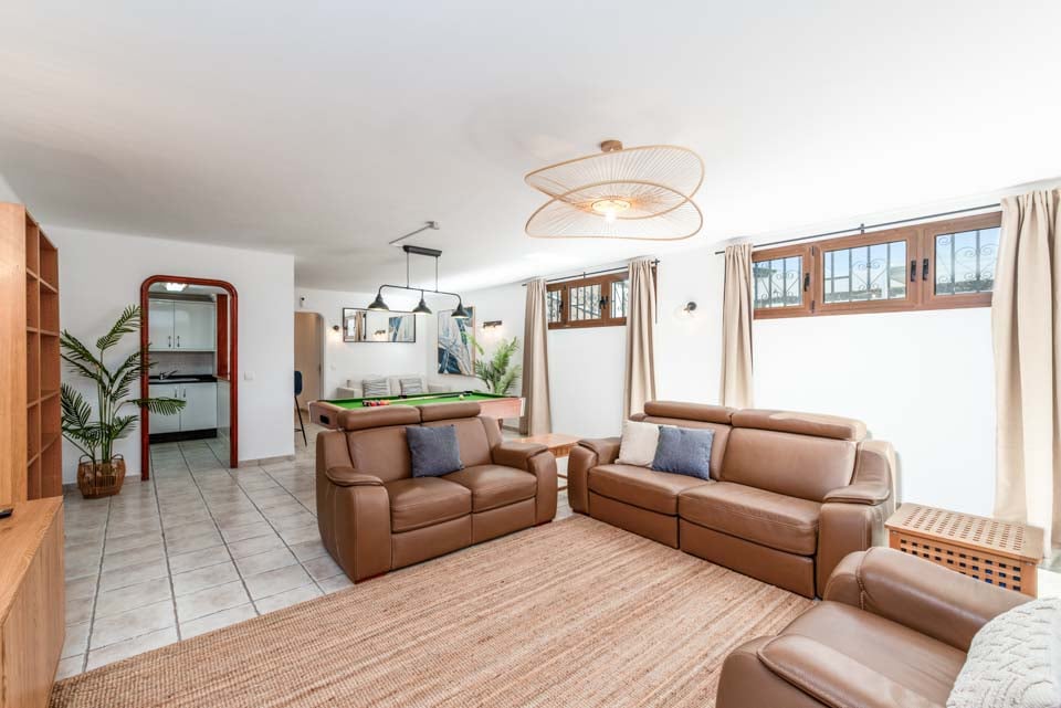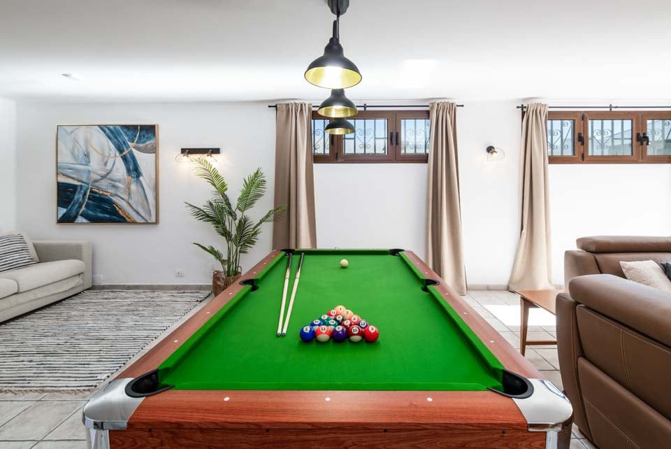 Astu sisään tähän kauniiseen huvilaan ja ihastu tähän Lanzaroten helmeen, jota voit kutsua kodiksi poissa kotoa. Hyödynnä täysin varusteltua keittiötä tai ehkä jopa tiilestä rakennettua grilliä, kun haluat kokeilla aitoa Kanariansaarten kulttuuria, ennen kuin teet vaikean päätöksen siitä, ruokailetko sisällä vai ulkona. Älä missaa ystävällistä kilpailua läheistesi kanssa pelaamalla peliä tai kahta biljardipöydällä – se on ihanteellinen paikka lyödä muutama lyönti ja napata lomasi toinen voitto, jonka ensimmäinen on se, että varasit tämän huvilan! Mukavat sohvat sopivat erinomaisesti, kun haluat viettää rauhallisemman illan perheen kanssa television ääressä. Ne ovat ihanteellisia unohtumattomien muistojen luomiseen yhdessä ennen kuin heittäydyt nukkumaan jollekin mukavista sängyistä.