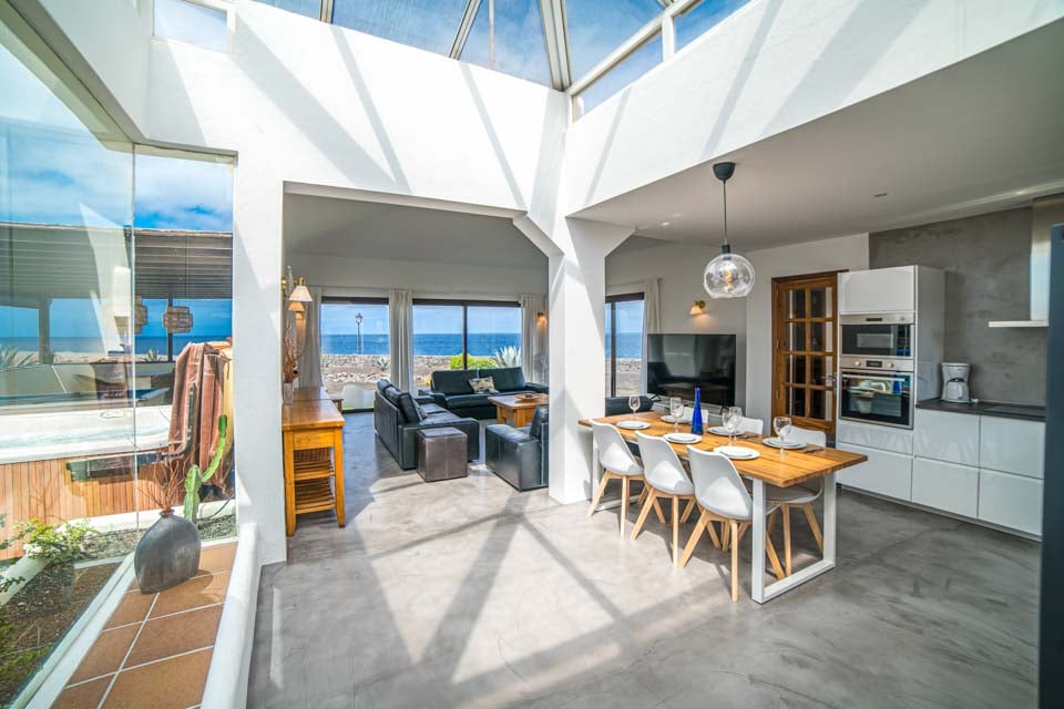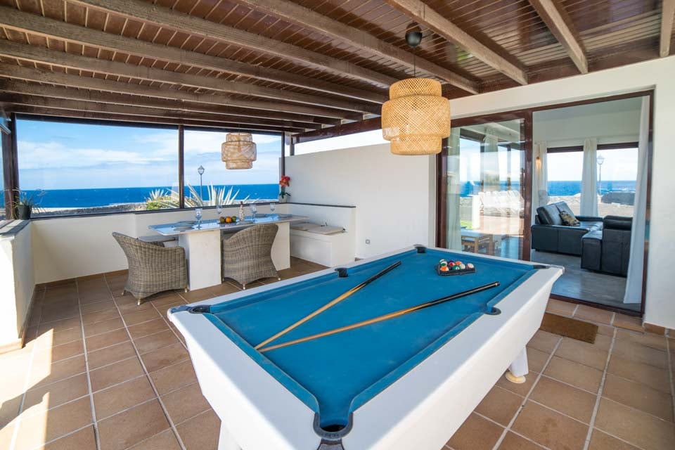 Kanariansaarten upea ilmasto mielessä suunniteltu ulkoterassi, jota reunustaa azuurinsininen merimaisema, ei koskaan kyllästy. Houkutteleva uima-allas on autuaallinen helpotus kuumuudesta ja täydellinen virkistävään iltapäivän uimiseen. Uima-altaan reunalla on aurinkotuoleja, joilla voit ottaa rusketusta ja ihailla kimaltelevia maisemia. Casa Playan illalliset ovat jotain erityistä, sillä ulkona sijaitsevassa ruokailutilassa voi nauttia ilta-aterioita auringonlaskun aikaan. Tarjolla on jopa grilli, jos haluat grillata maukkaita paikallisia herkkuja. Juuri kun luulit, ettei ulkotila voisi enää parantua, tarjolla on biljardipöytä ja kupliva poreallas.