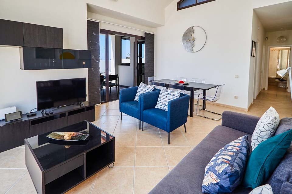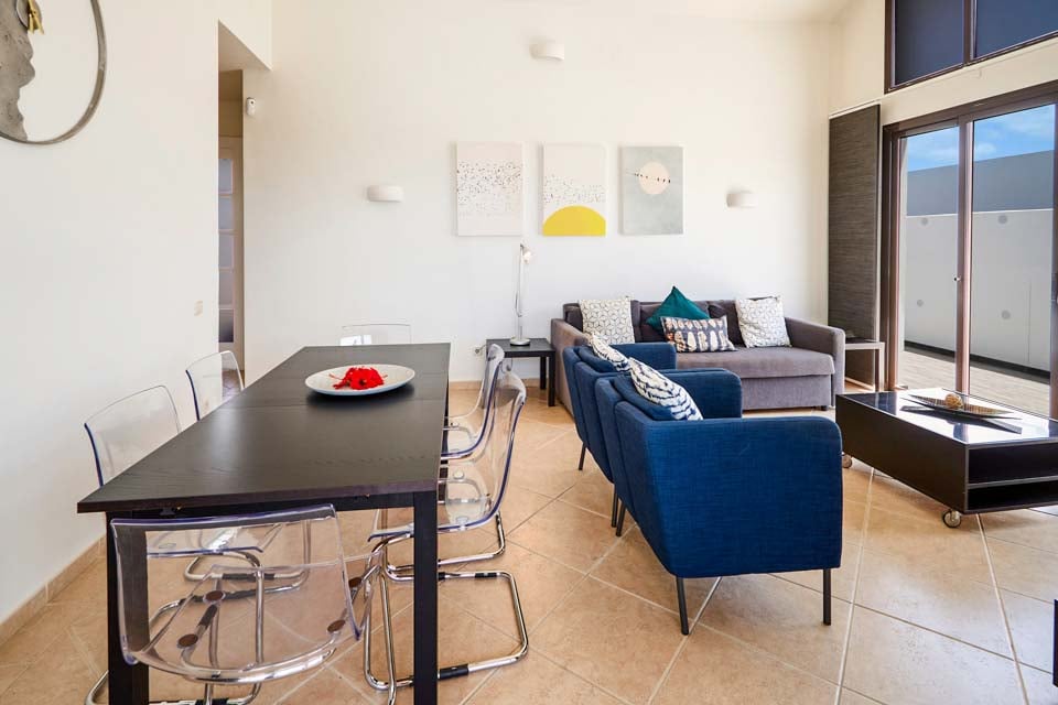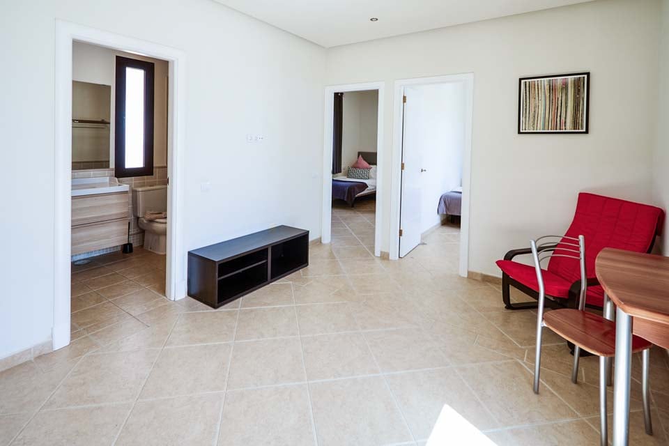 Casa Santuarioon astuessasi tulet tilavalle käytävälle, josta pääset olohuoneeseen, keittiöön ja kaikkiin makuuhuoneisiin ja kylpyhuoneisiin. Lounge todella kiinnitti huomiomme! Korkean katon ja terassille johtavien lasiovien ansiosta tämä on todella upea tila. Mukavien istuinten ja useita kanavia tarjoavan taulutelevision ansiosta voit rentoutua lomallasi sekä sisällä että ulkona. Käytävältä löytyy myös täysin varusteltu keittiö, josta löytyy suuri jääkaappipakastin, pesukone ja astianpesukone.