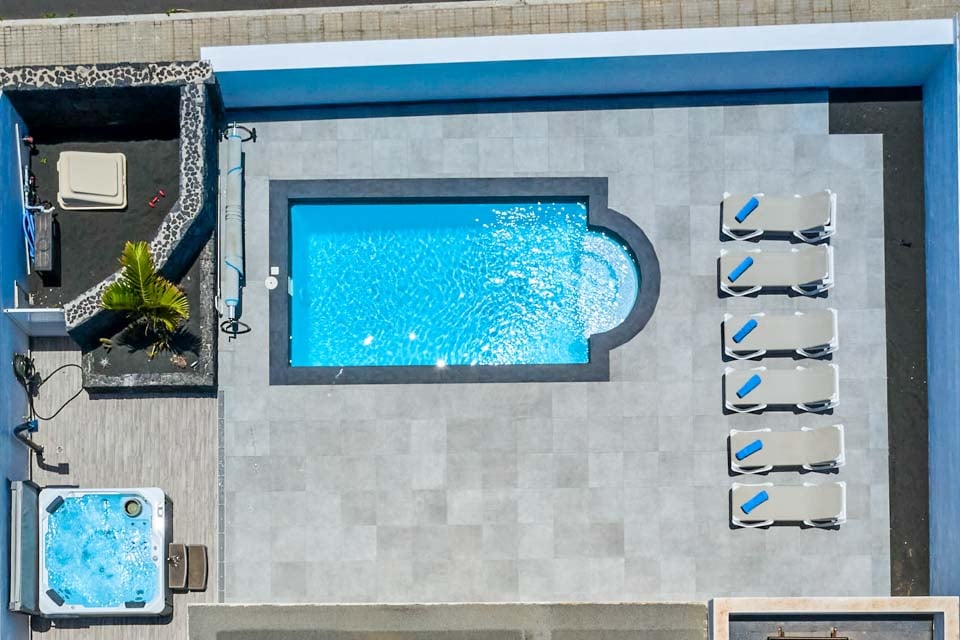 Altaan koko: 6,5 m x 3,5 m, lämmitetty, suihku altaan reunalla, roomalaiset portaat