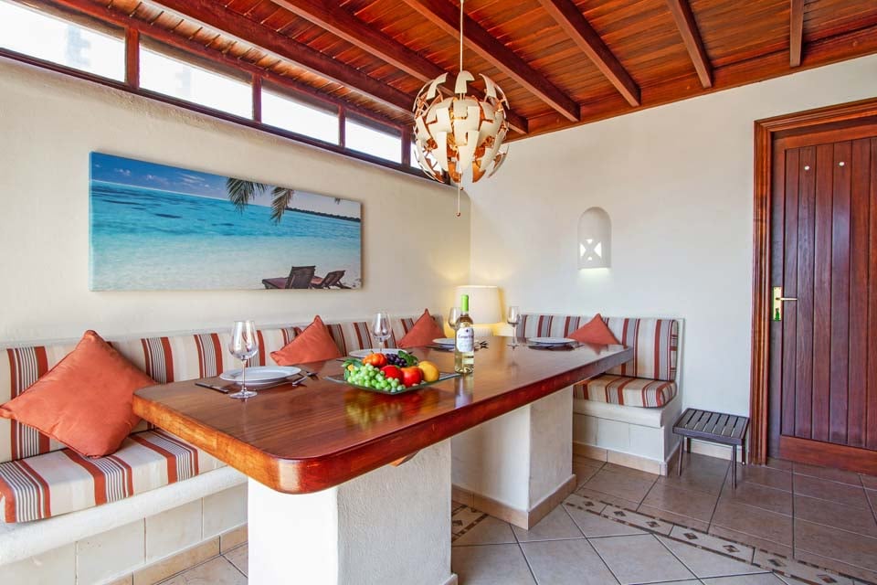 Aurinkoterassi on juuri sitä, mitä kuvittelemme idyllisen lepopaikan tyyssijana, jota reunustavat aurinkotuolit ja vulkaanisen mustan hiekan peittämä alue. Varjoa etsivät löytävät lohtua verannan alta, jossa on mukavat tuolit, jotka sopivat täydellisesti rentoutumiseen hyvän kirjan parissa. Jos haluat nauttia illallisesta samalla kun nautit lämpimästä meri-ilmasta, ulkoilmaruokapöytä ja ulkogrilli luovat täydelliset puitteet iltaan. Ulkotila pitää kaikki viihtyneinä, ja munuaisenmuotoiseen ulkouima-altaaseen kannattaa ehdottomasti pulahtaa. Lisäbonuksena virkistävä uima-allas lämmitetään ilmaiseksi ympäri vuoden. Lisäbonuksena tämä huvila tarjoaa ilmaisen teen, kahvin ja keksin tervetuliaispaketin saapuessasi.