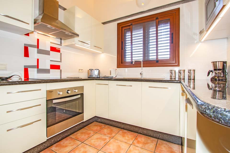 Gardone on perinteinen aarreaitta, jossa on valkoiseksi kalkitut stukkoseinät ja kirkkaat puuikkunat, jotka ovat täynnä aitoja espanjalaisia merkkejä. Sisätilat ovat viileät ja kutsuvat, persikanväriset laattalattiat ja beigenväriset seinät luovat eleganttia viehätysvoimaa. Sisustus heijastaa modernia hehkua koko huvilassa, ja neutraali valkoinen ja beige värimaailma sopivat siihen. Avoimessa oleskelutilassa on kodikas olohuone, jossa on ylelliset sohvat ja koristetyynyt vanhanaikaisen takan ympärillä. Viehättävässä sisäruokailutilassa on pehmustettu kulmapenkki ja kiiltävä puupöytä. Vieressä on huippuluokan keittiö, jossa on tyylikkäät valkoiset kaapistot ja uusimmat kodinkoneet helpoimpaan ruoanlaittokokemukseen.