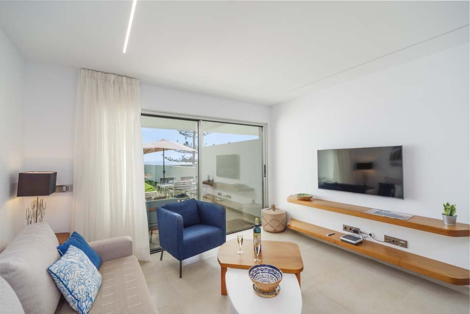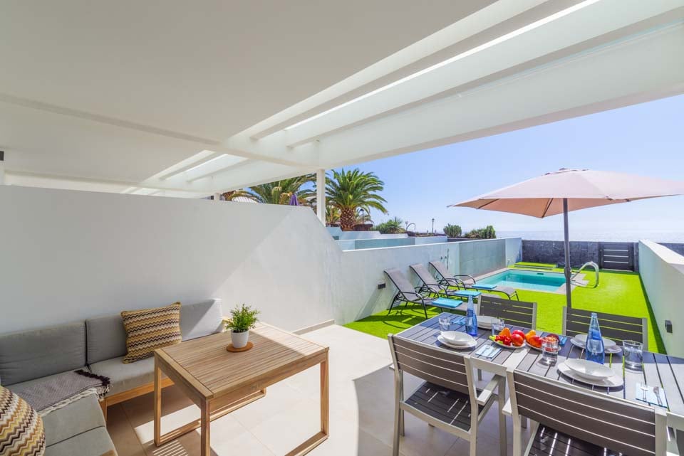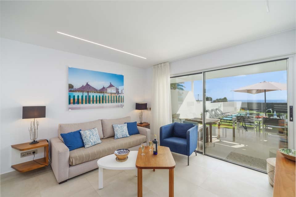 Sano Hola Marina Suite Villa Azulille, ainutlaatuiselle rivitalolle Playa Blancan rantakadulla. Upeiden Atlantin yli avautuvien näkymien ja mustahiekkaisen rannan ollessa aivan oven takana, et ehkä halua mennä minnekään muualle. Ihanteellinen ympärivuotiseen lomailuun, tämä huvila sisältää uima-altaan lämmityksen*, viileän ilmastoinnin ja ilmaiset allaspyyhkeet.